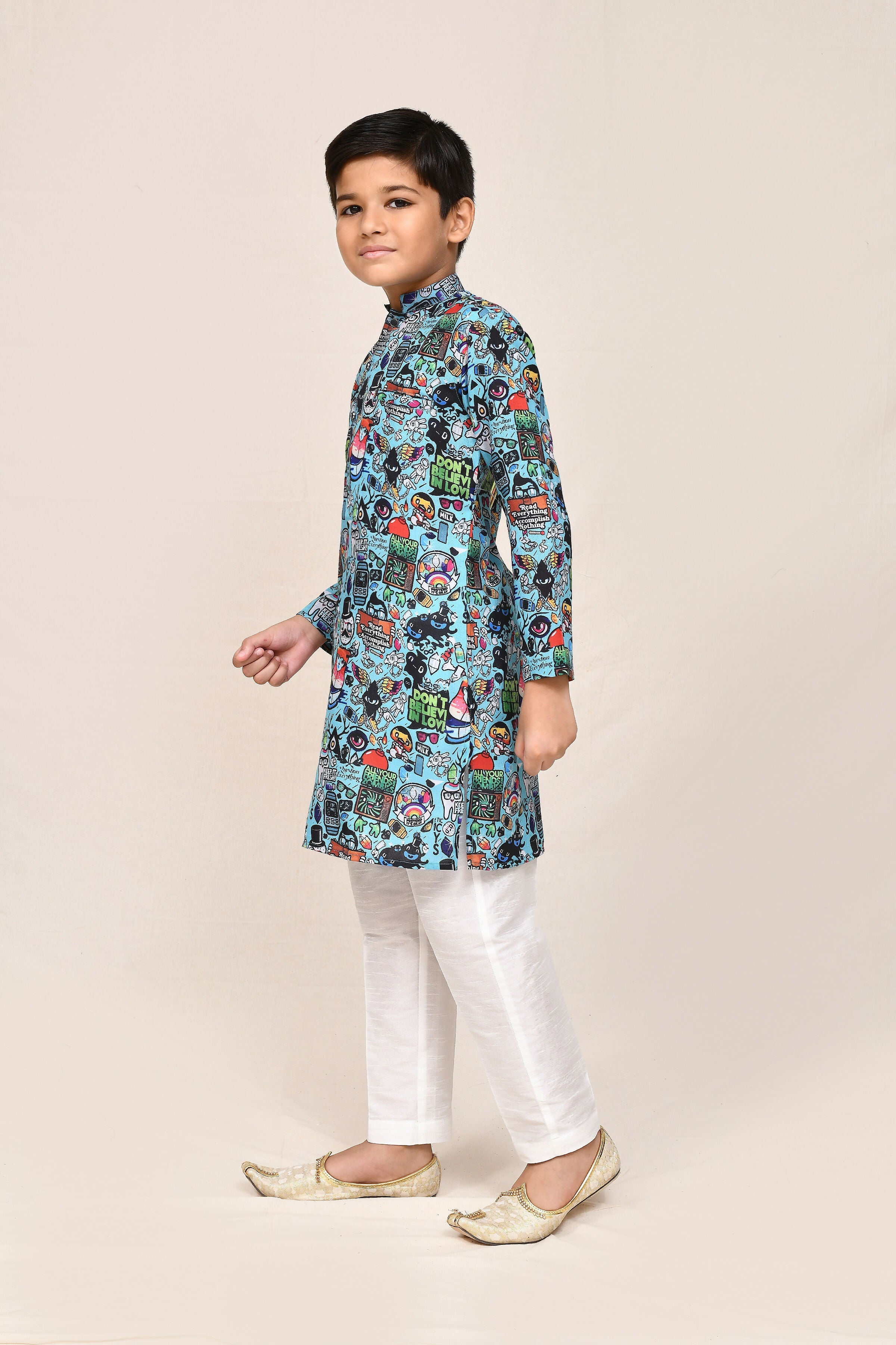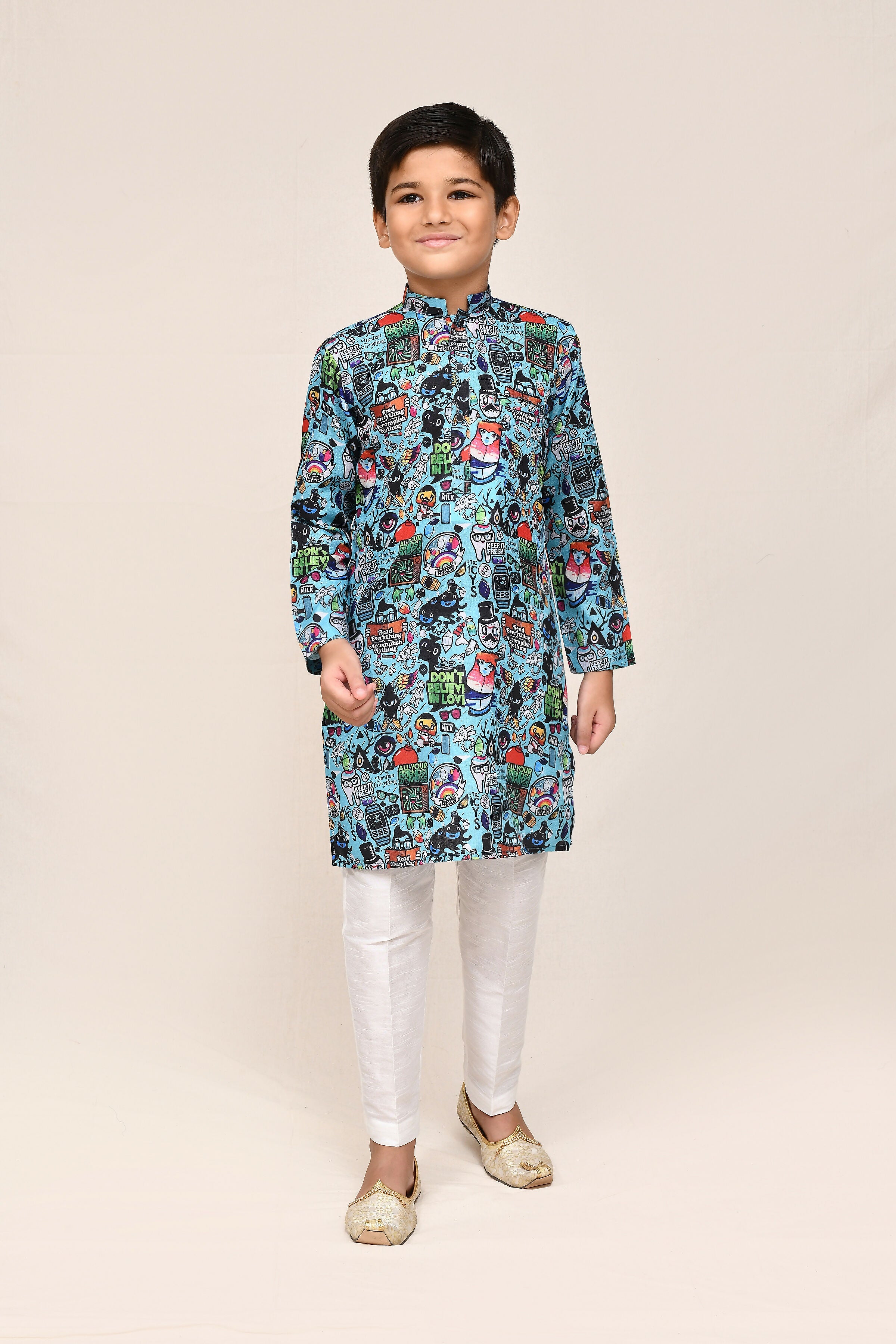 Joban Fashion Cotton Linen Blue Kurta With Straight Fit Pant