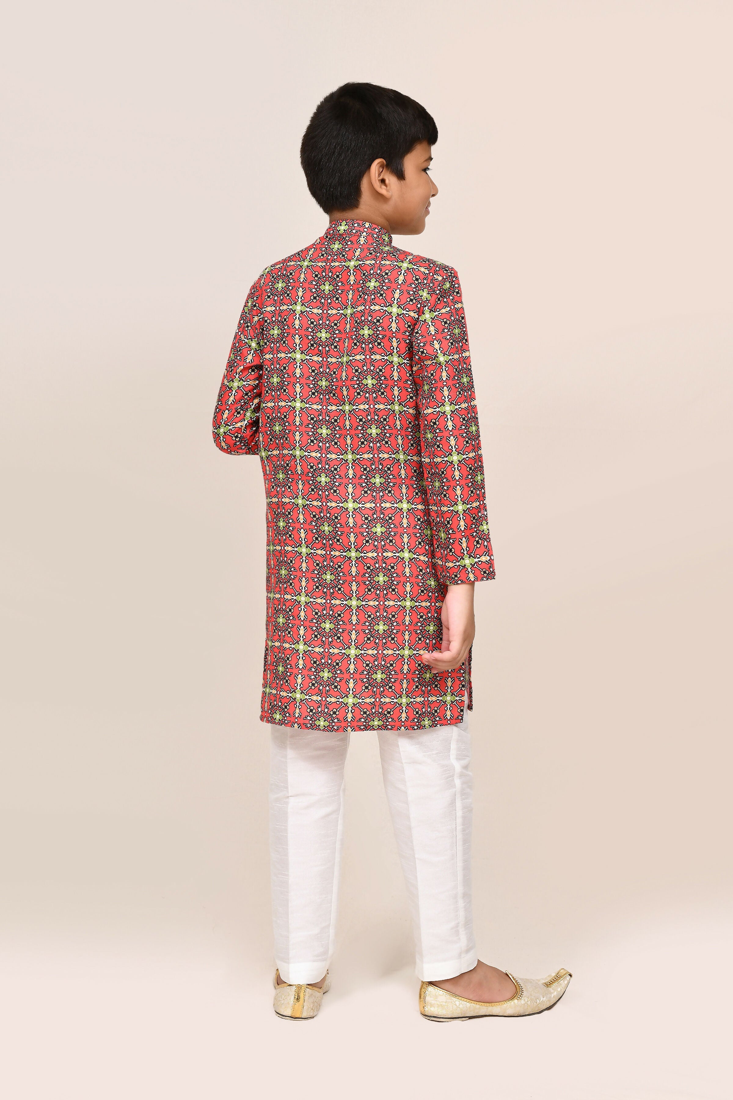 Joban Fashion Cotton Red Kurta With Straight Fit Pant