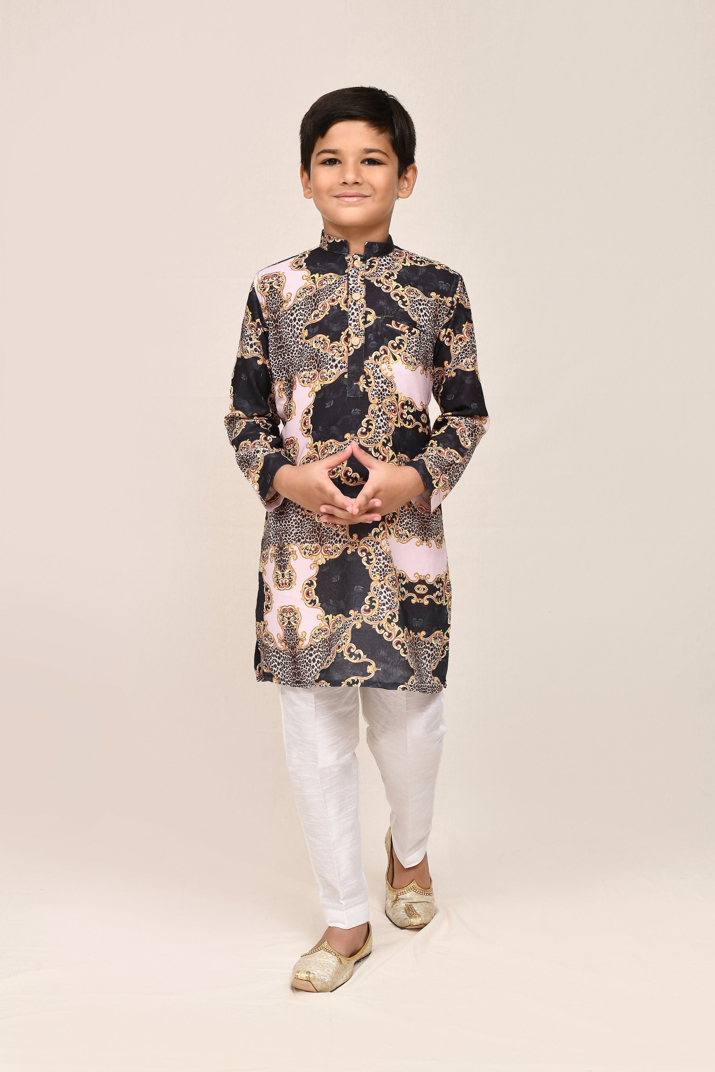 Joban Fashion Cotton Silk Black Kurta With Straight Fit Pant