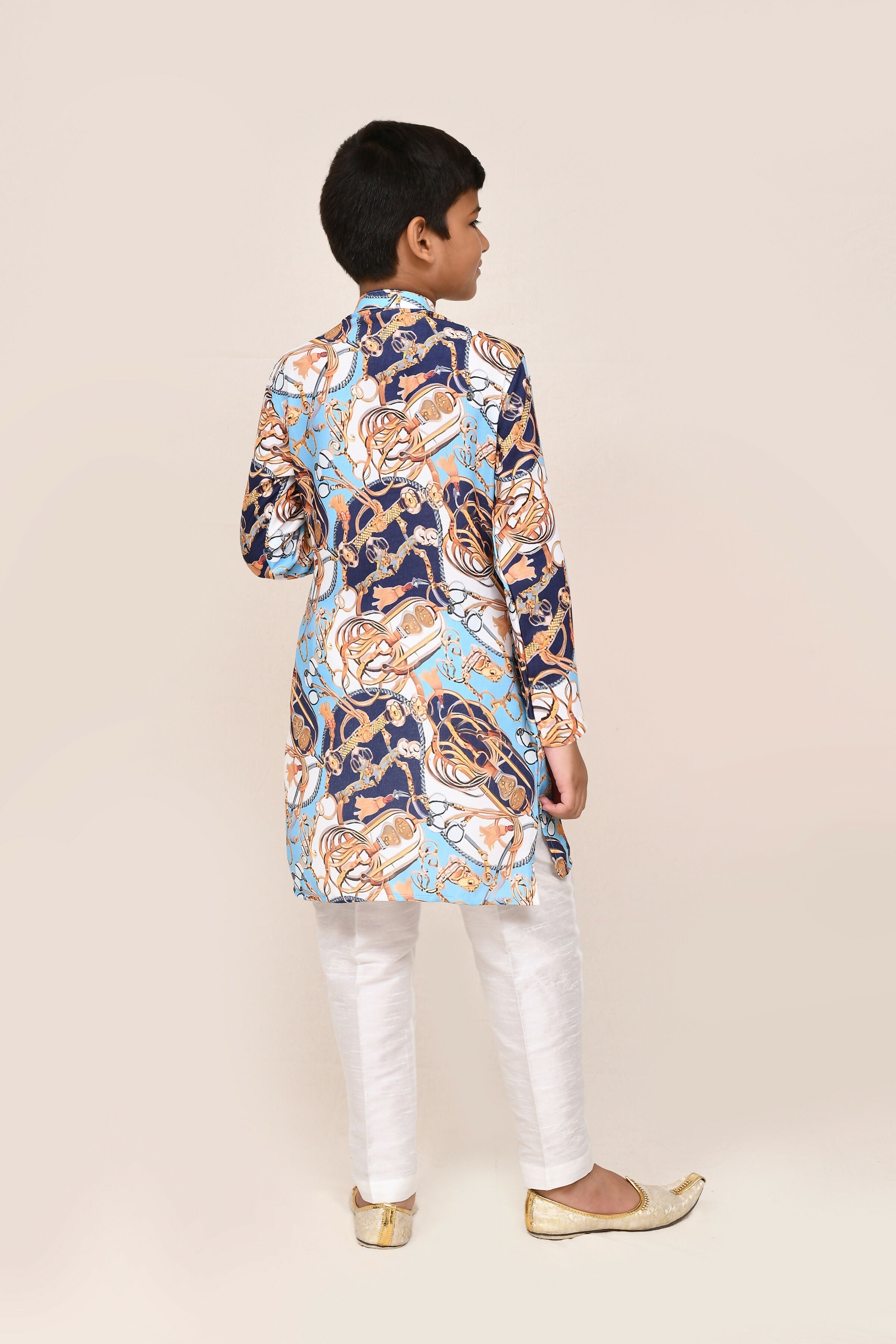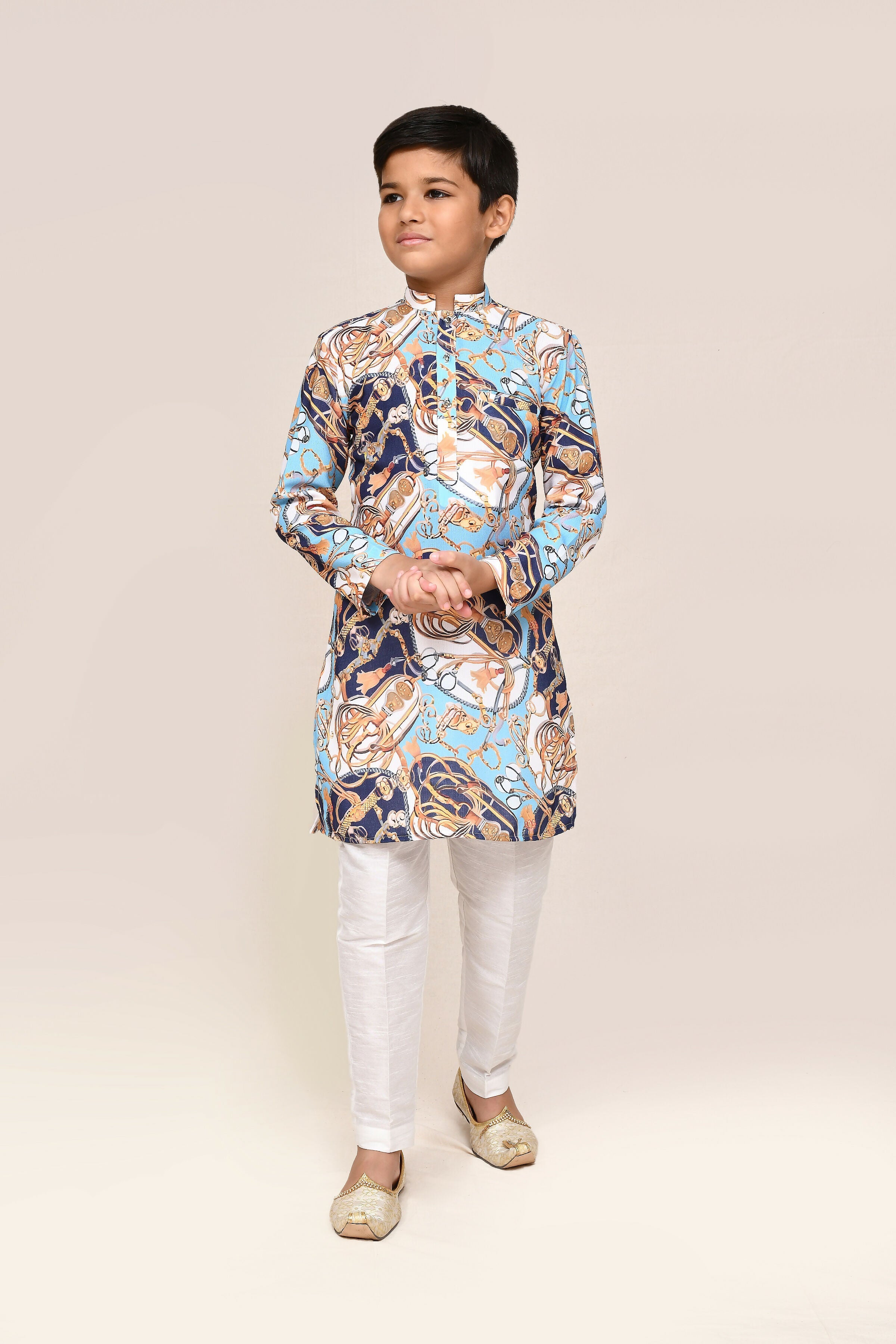 Joban Fashion Cotton Silk Blue Kurta With Straight Fit Pant