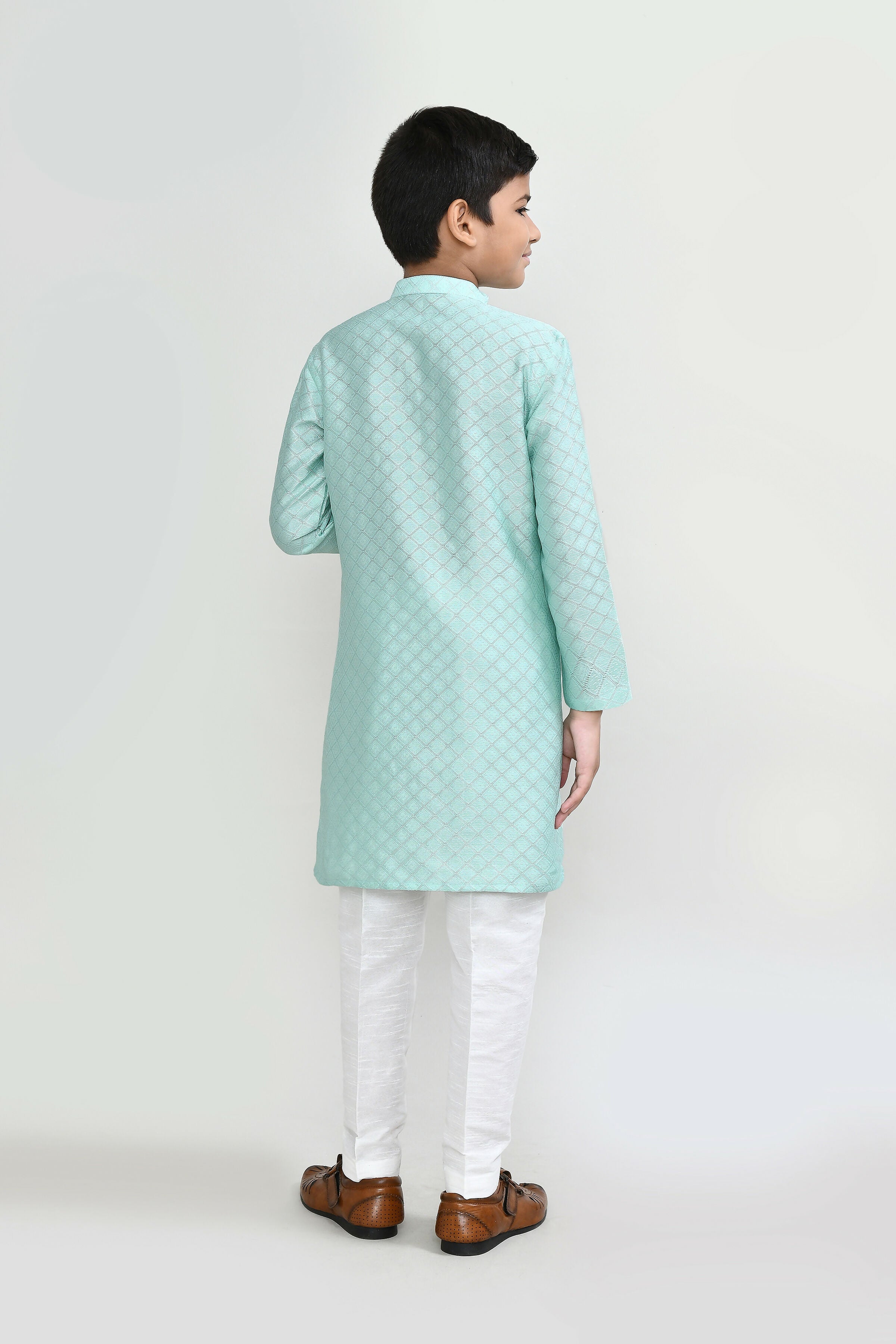 Joban Fashion Cotton Silk Pastel Green Kurta With Straight Fit Pant