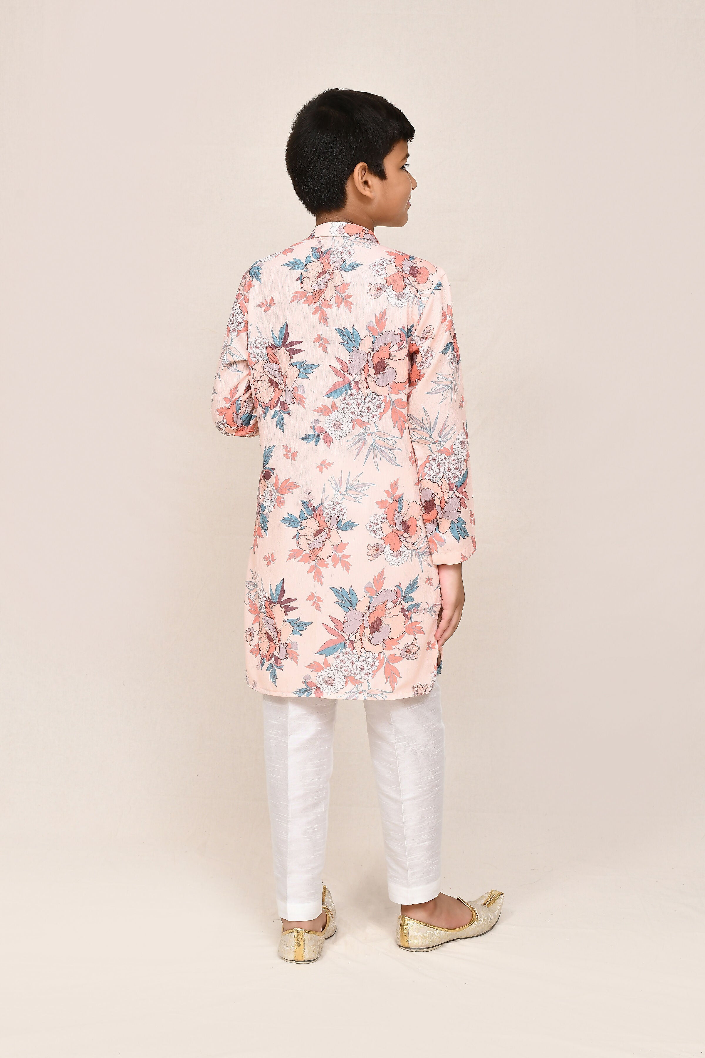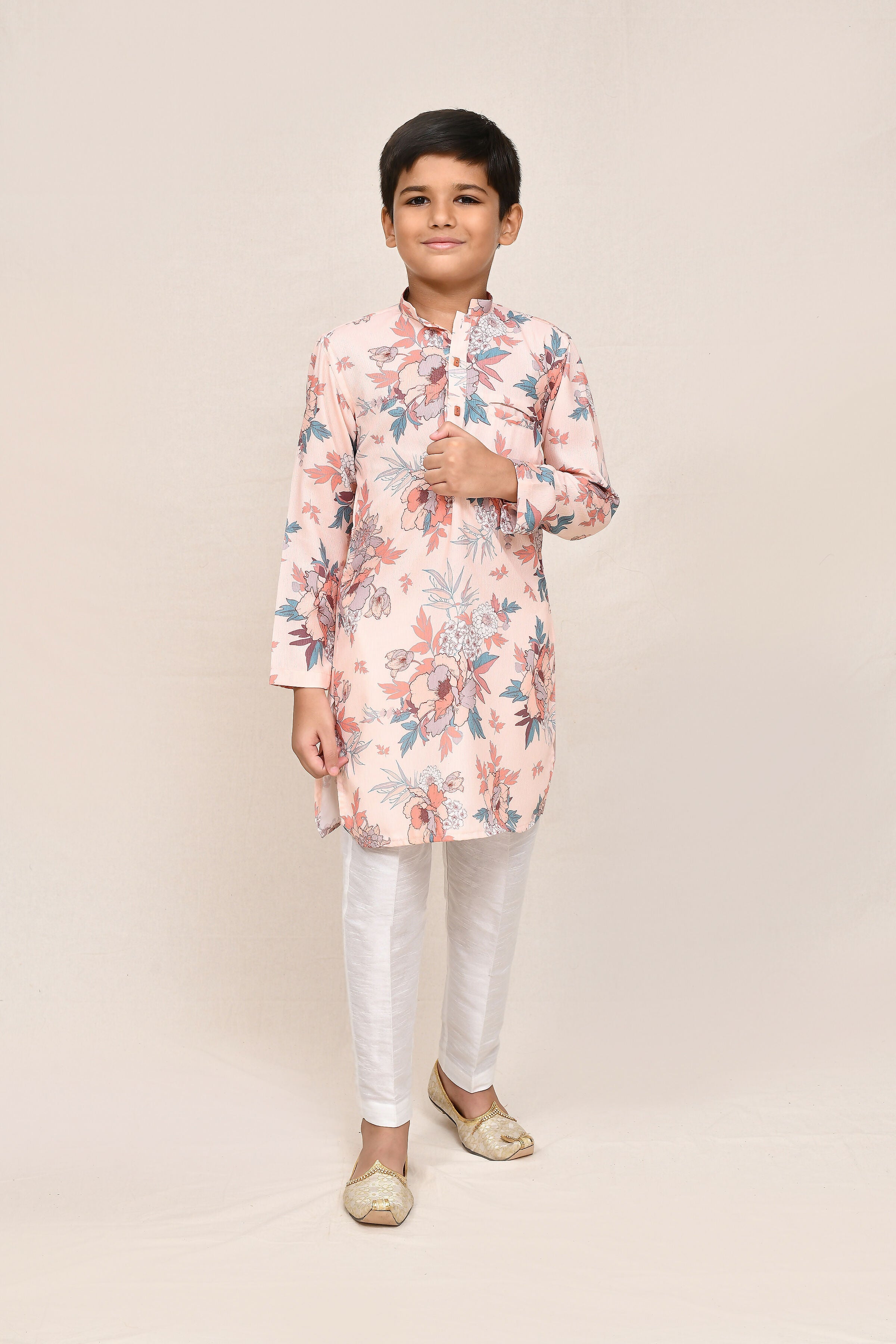 Joban Fashion Cotton Silk Peach Kurta With Straight Fit Pant