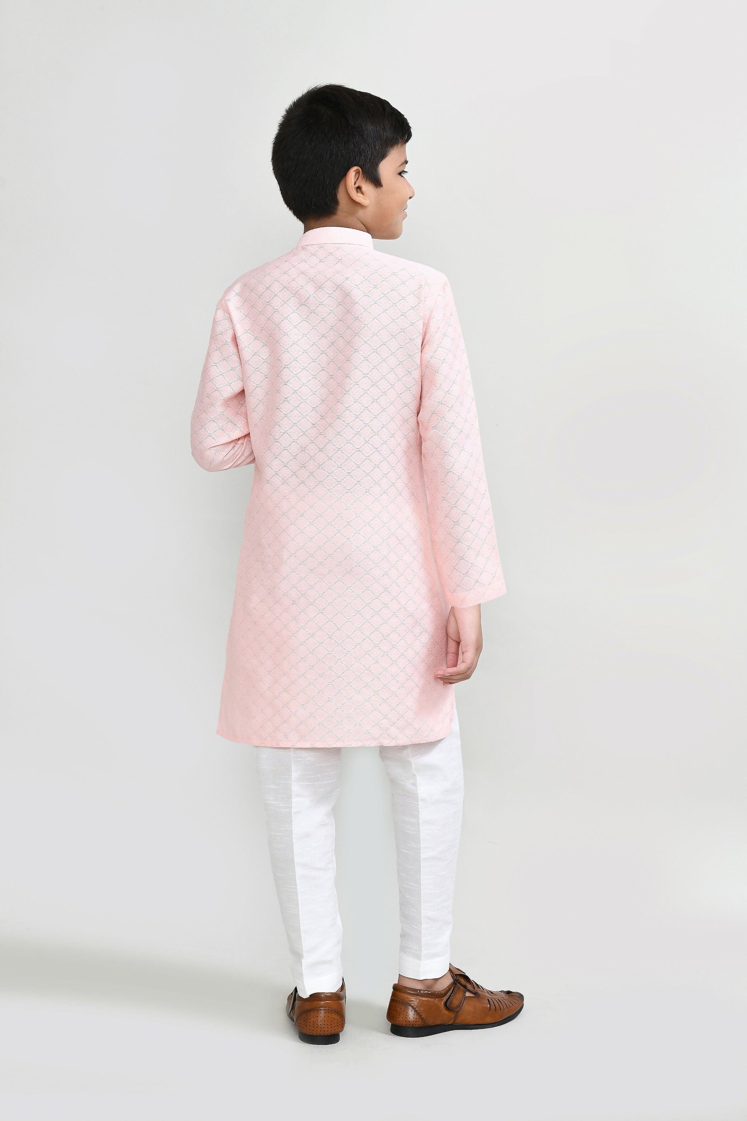 Joban Fashion Cotton Silk Peach Kurta With Straight Fit Pant