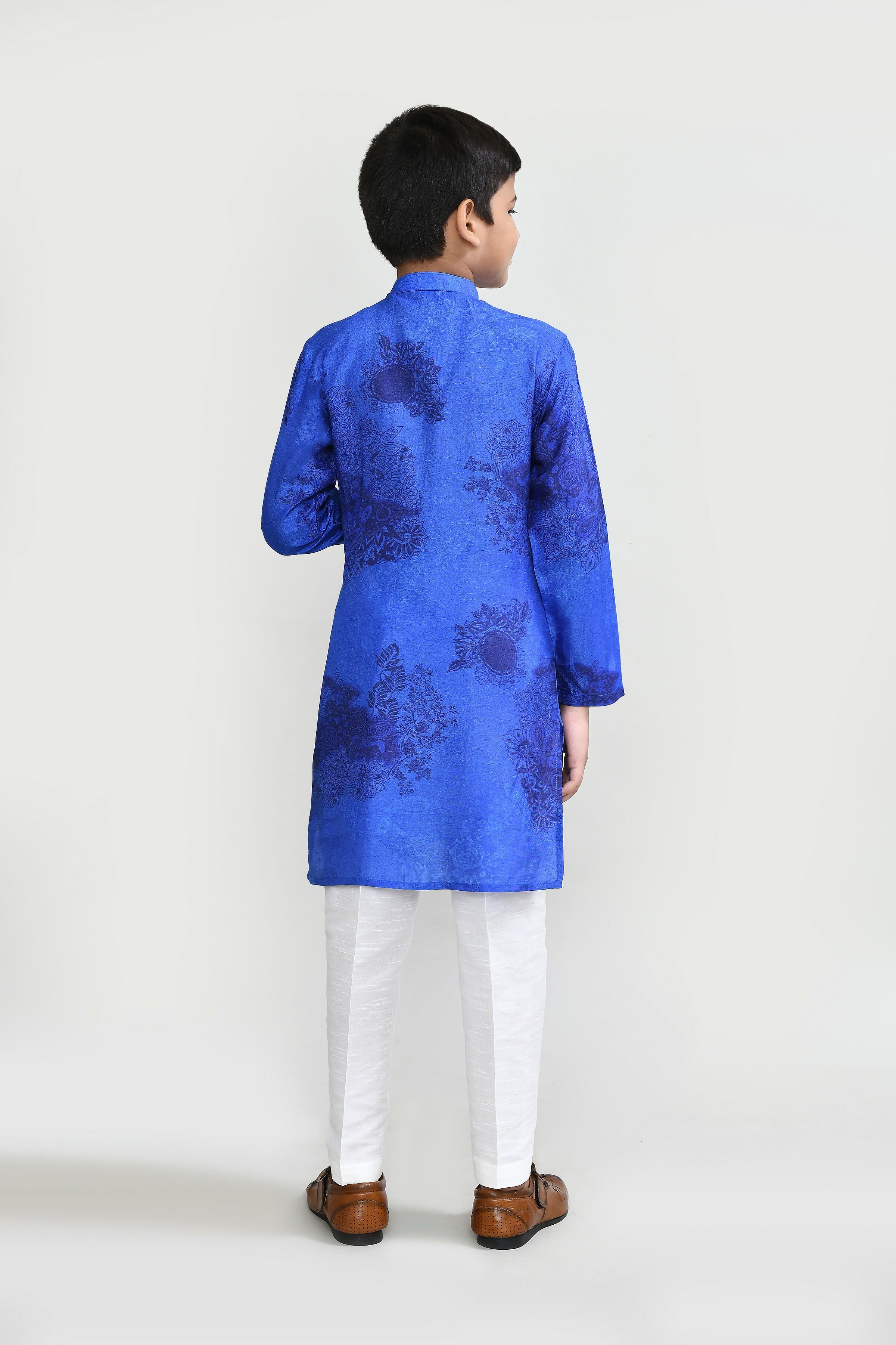 Joban Fashion Cotton Silk Royal Blue Kurta With Straight Fit Pant