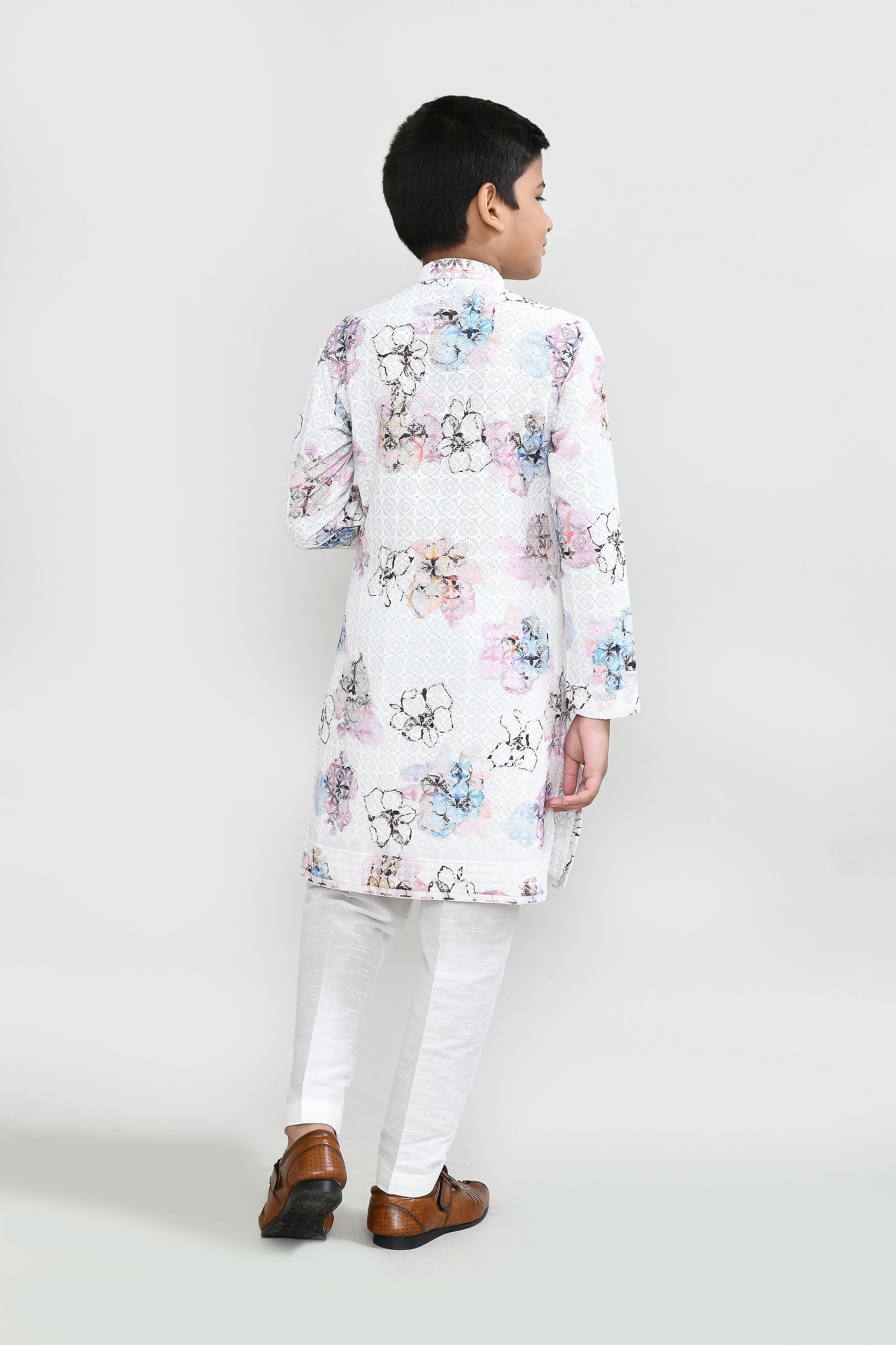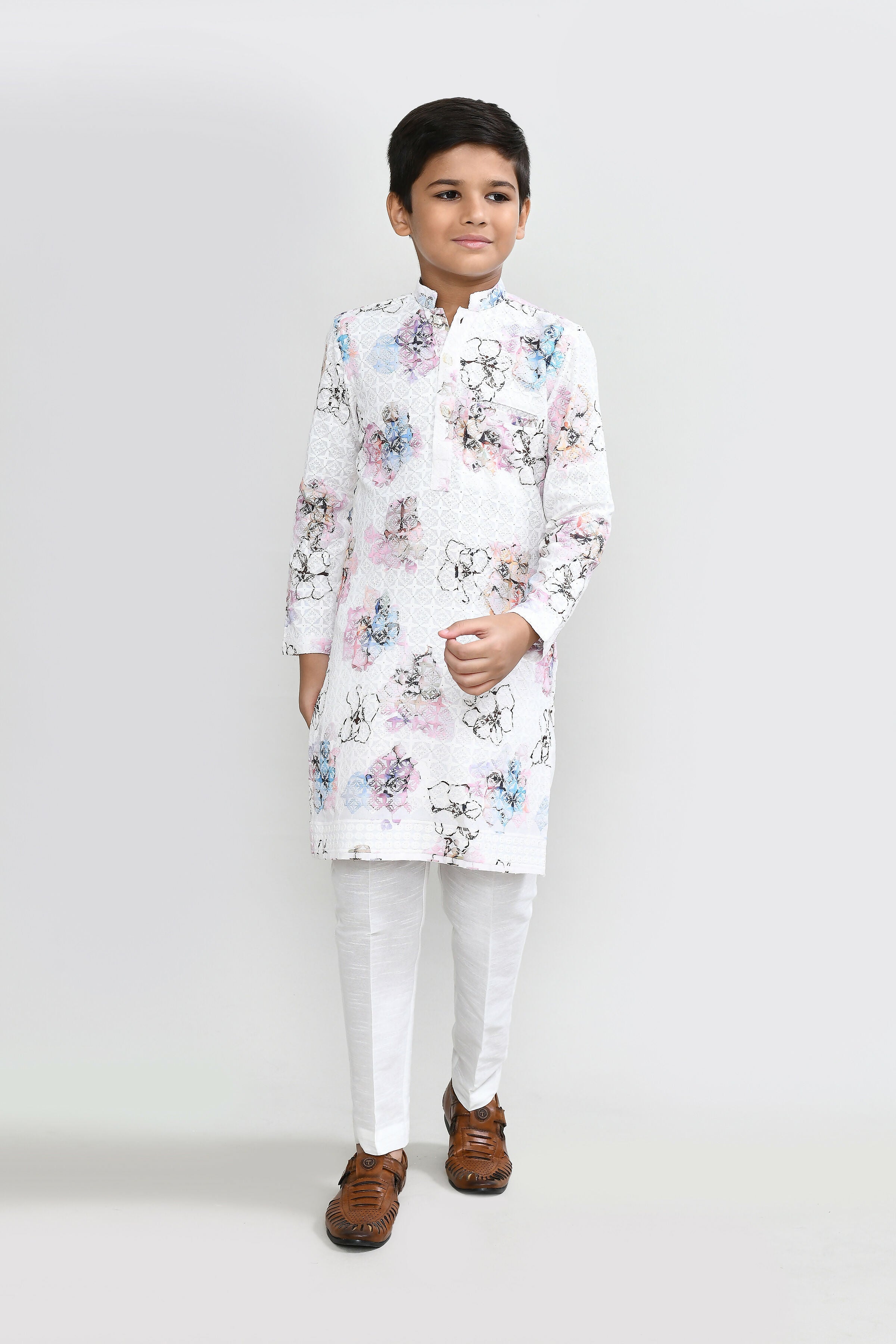 Joban Fashion Cotton White Kurta With Straight Fit Pant