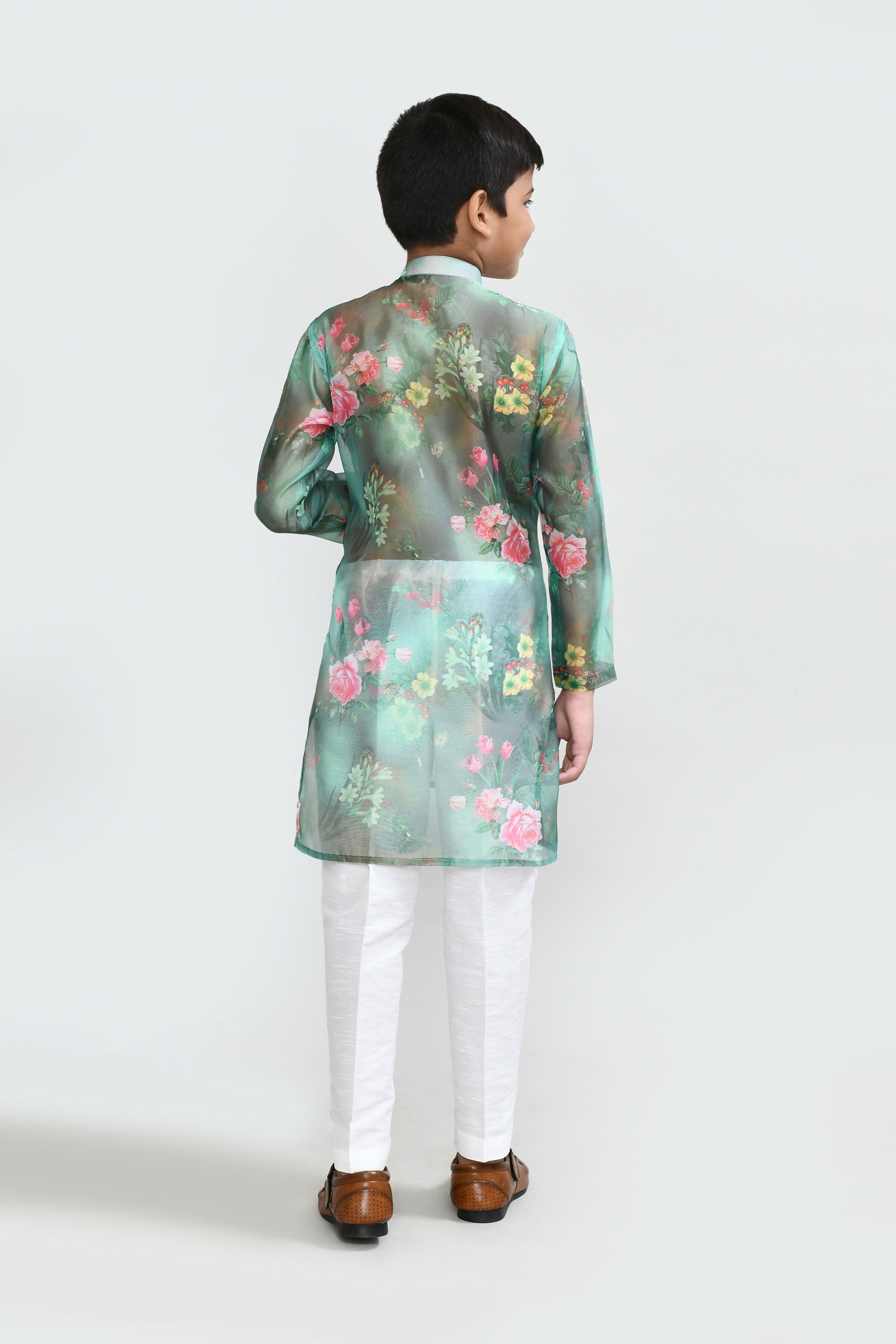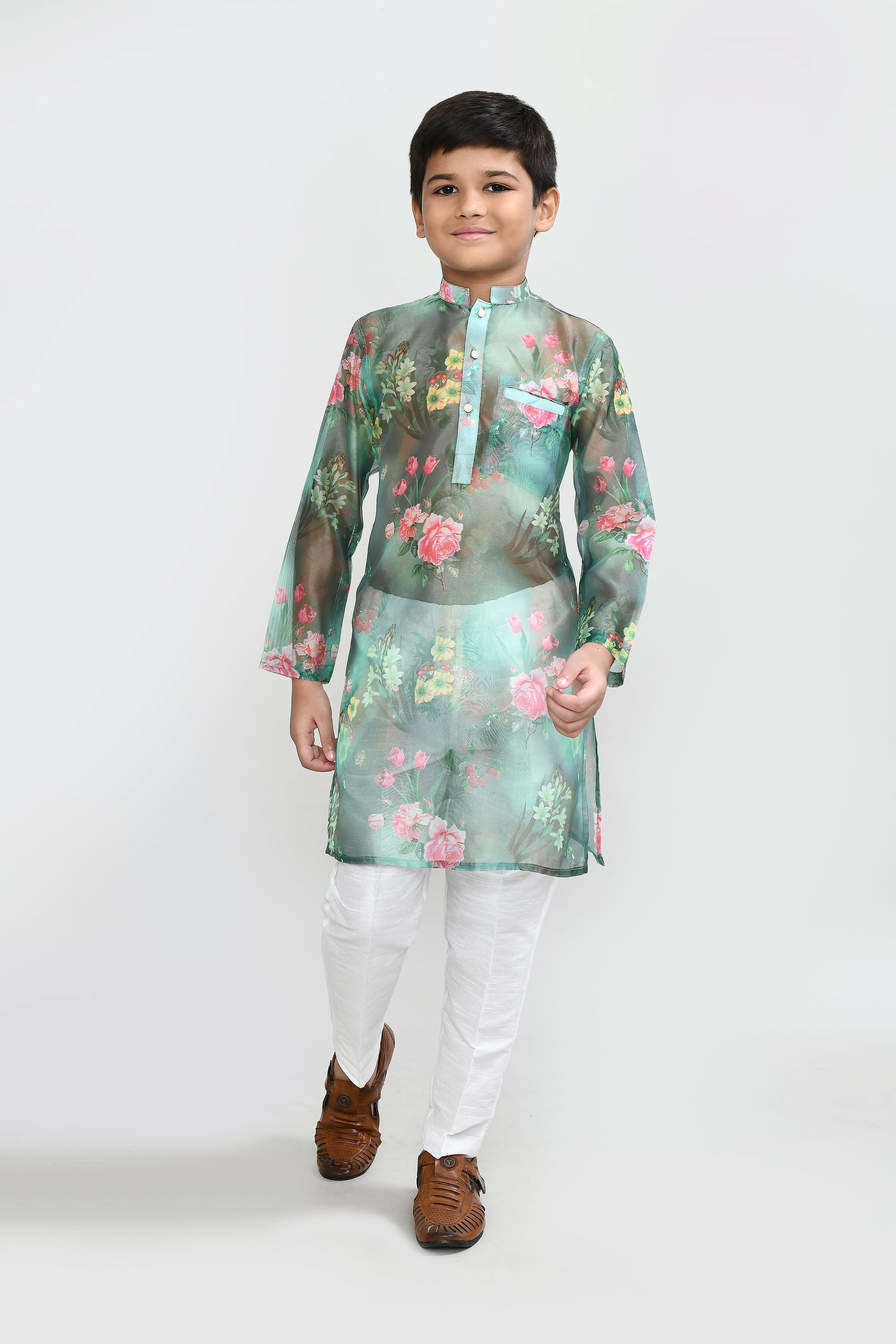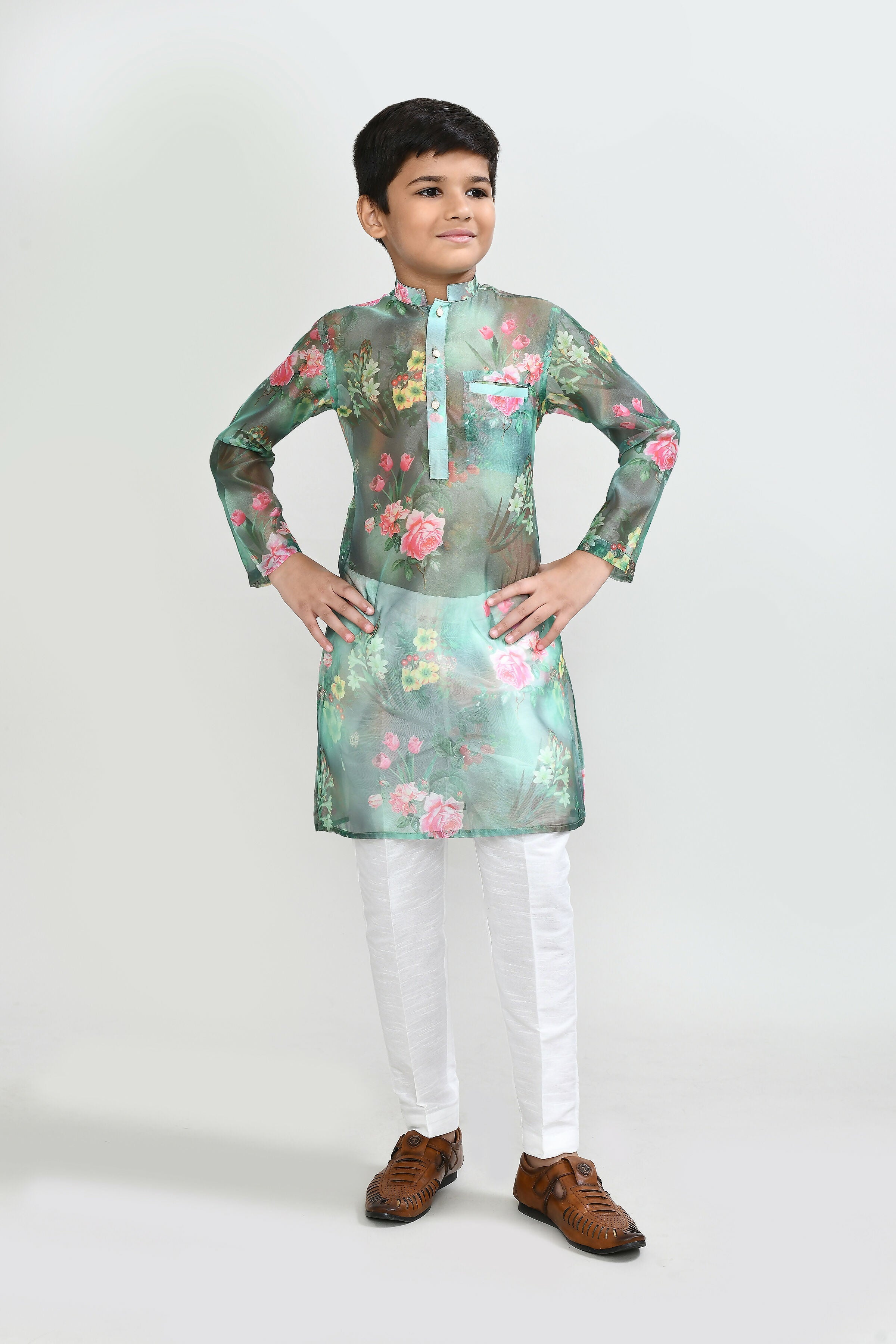 Joban Fashion GrorgetteGreenKurta With Straight Fit Pant