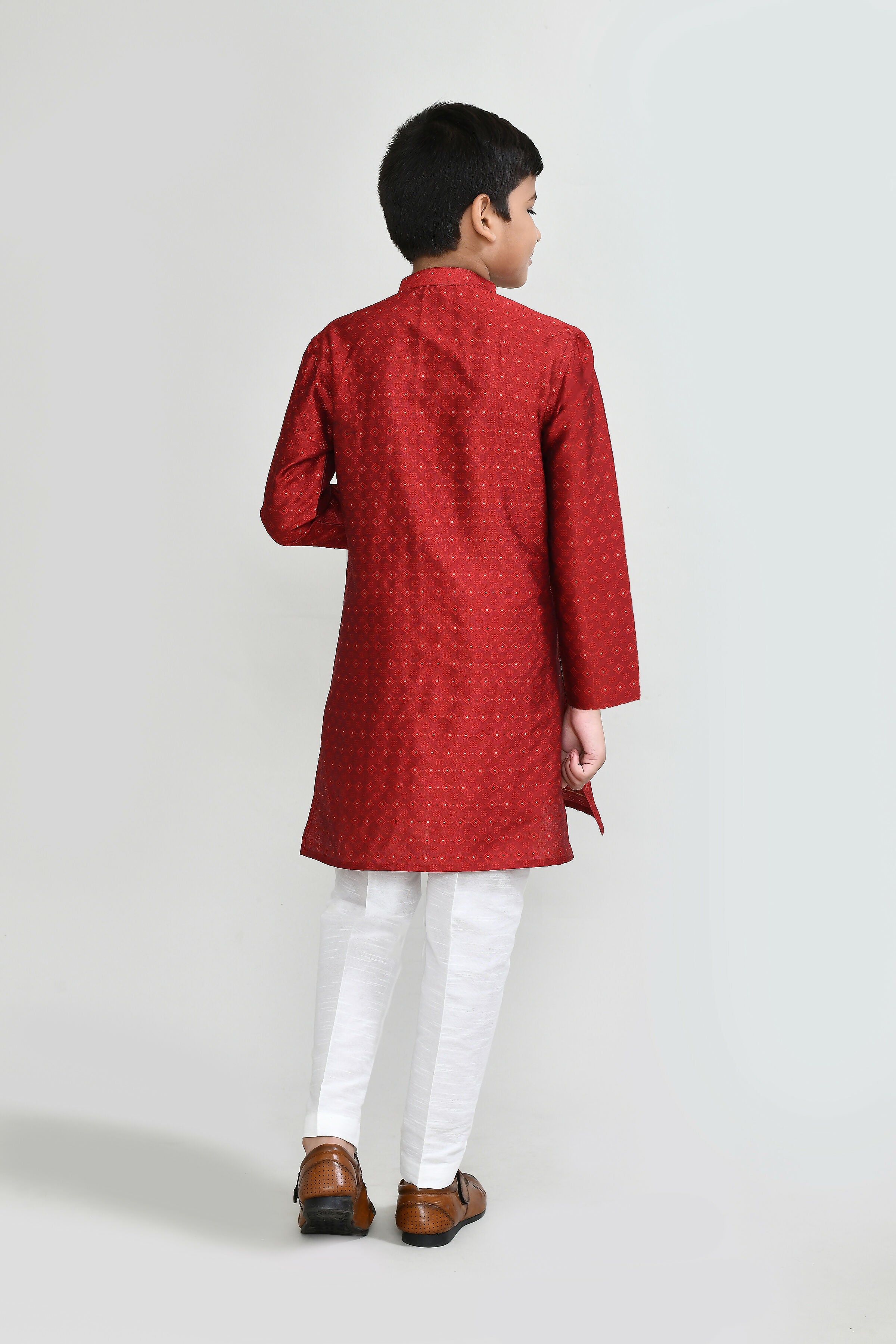Joban Fashion Jacquard Silk Red Kurta With Straight Fit Pant