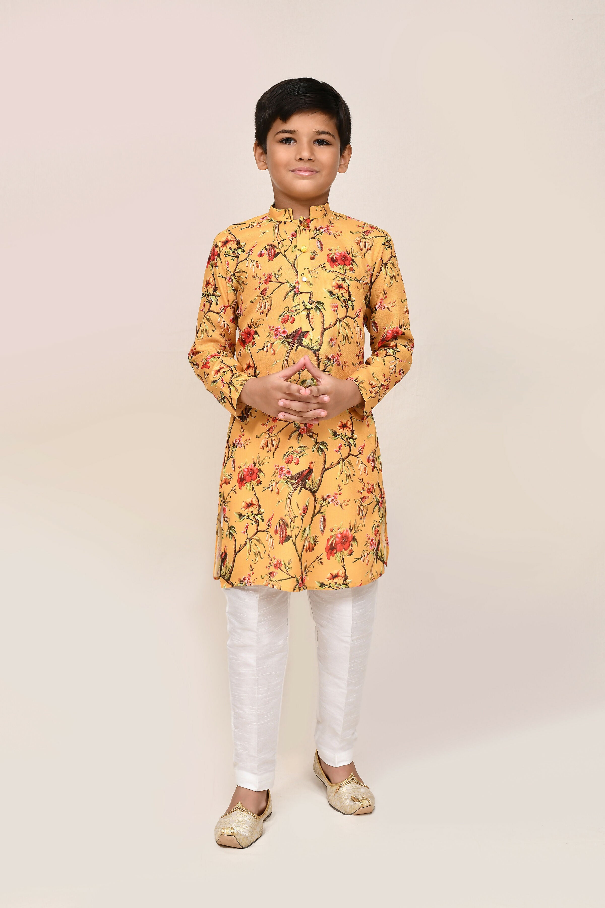 Joban Fashion Linen Cotton Yellow Kurta With Straight Fit Pant
