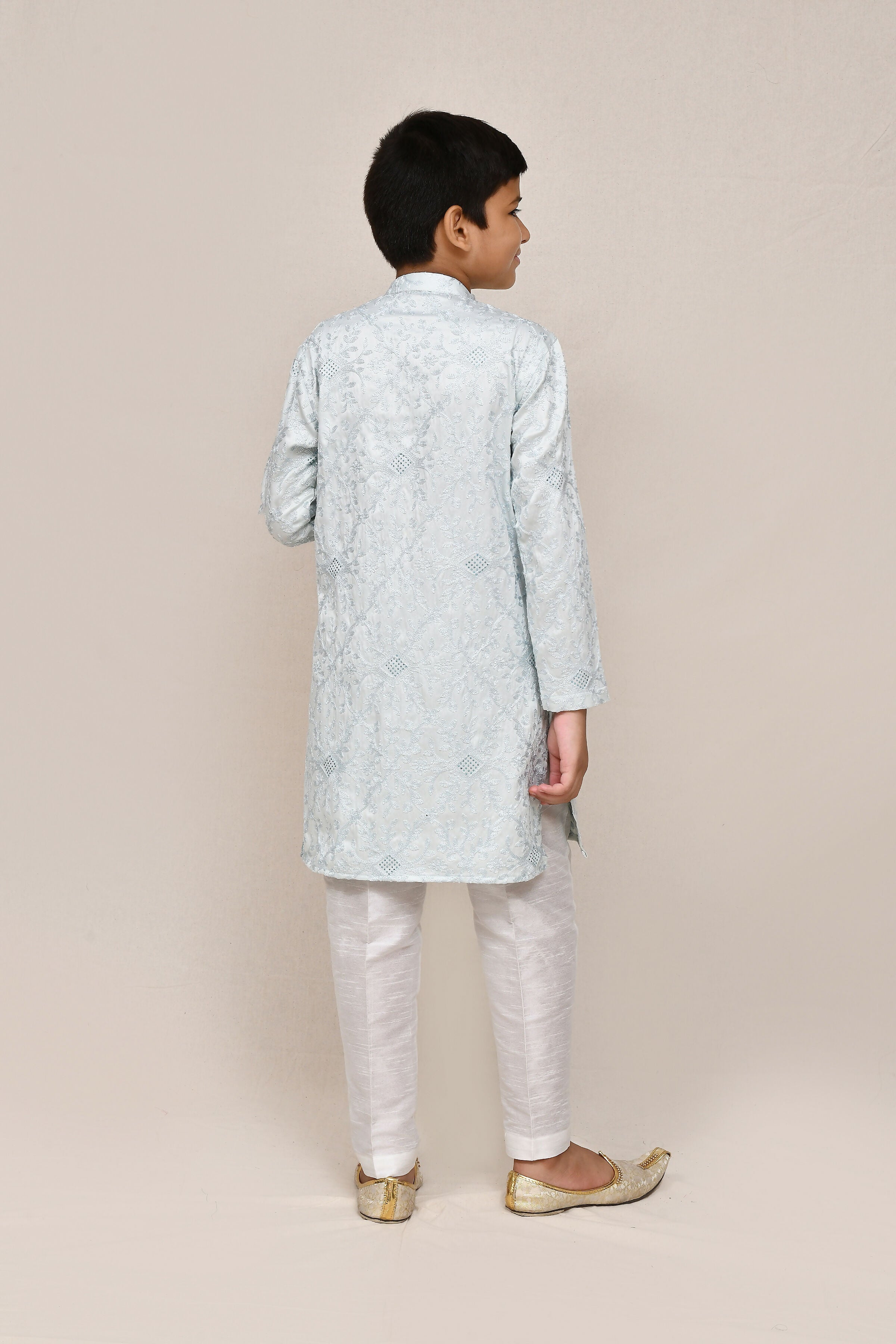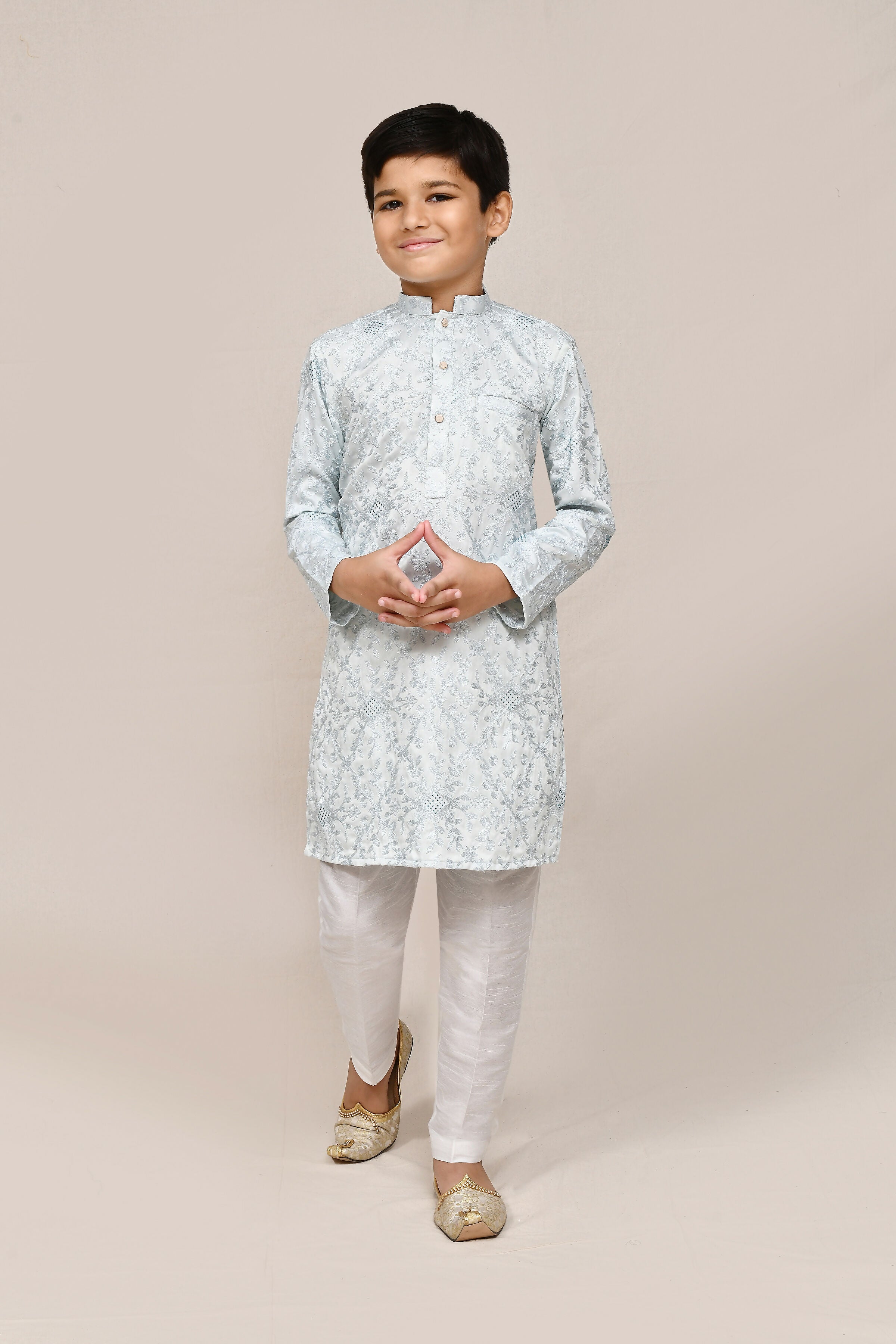 Joban Fashion Silk Based Thread Work Sky Blue Kurta With Straight Fit Pant