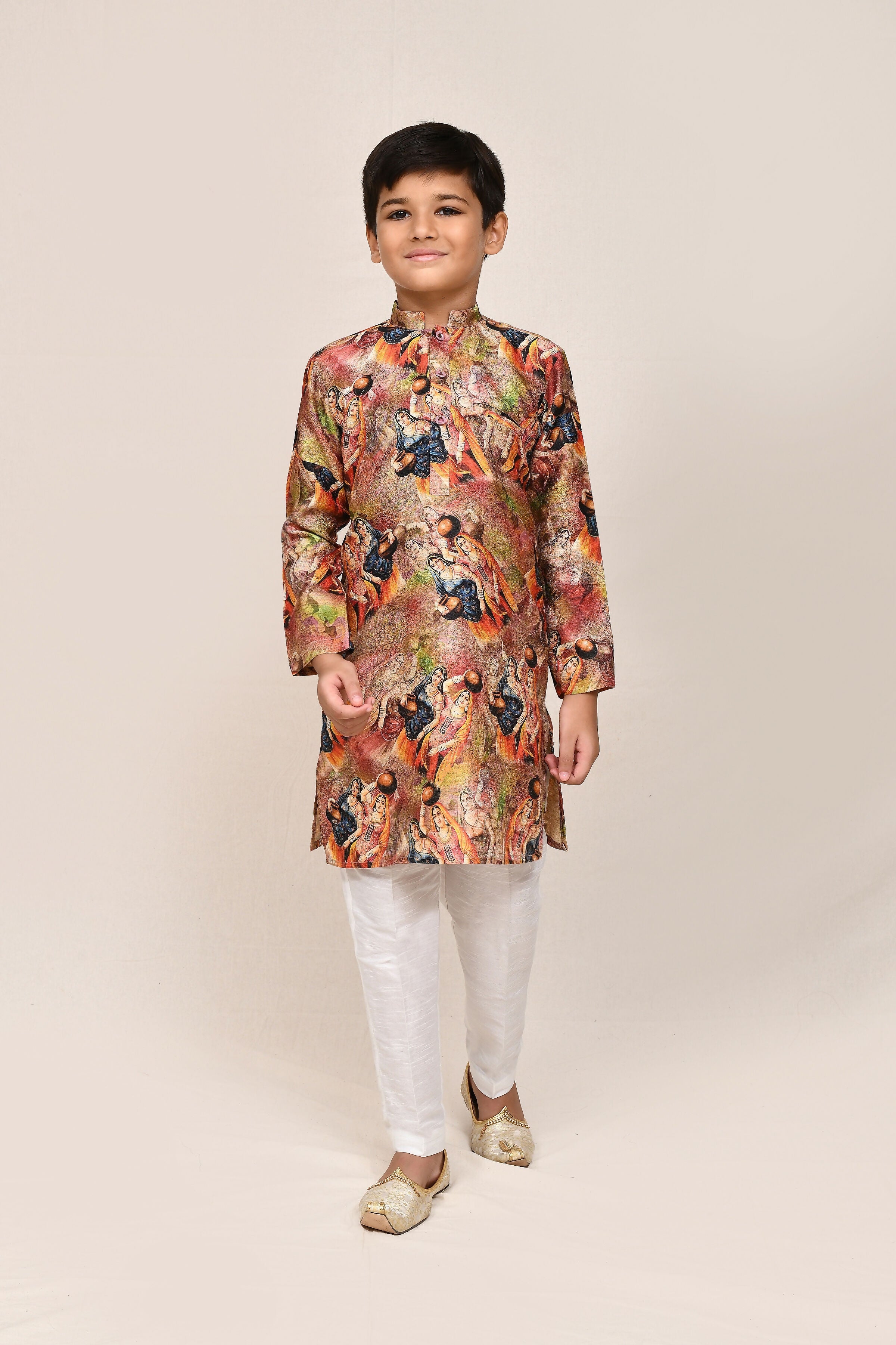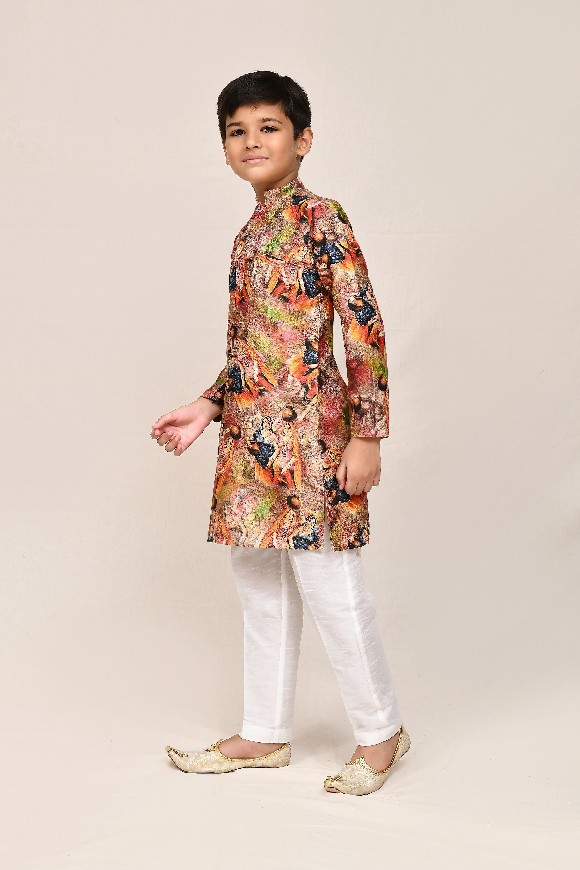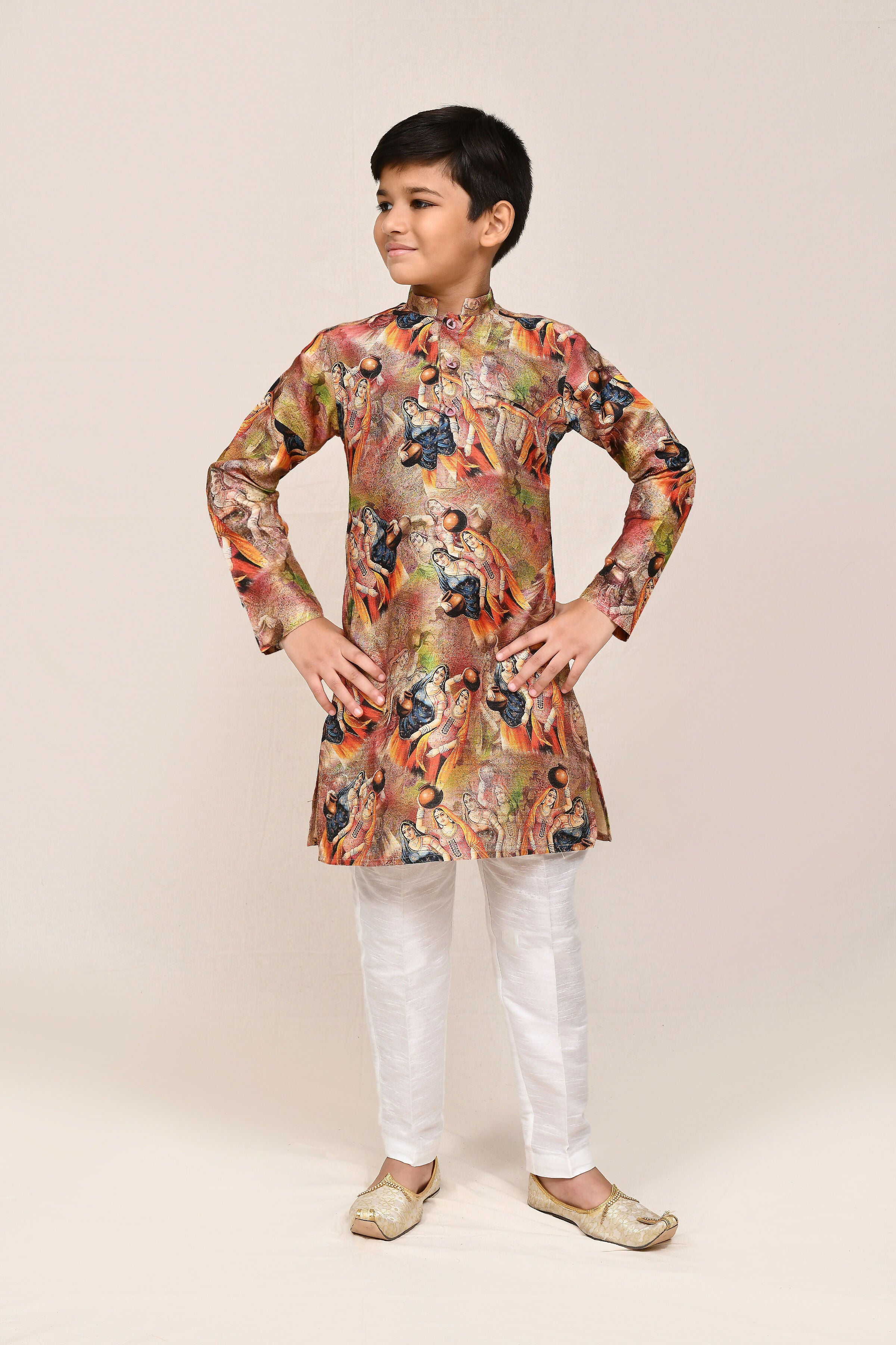 Joban Fashion Silk Dark Beige Kurta With Straight Fit Pant