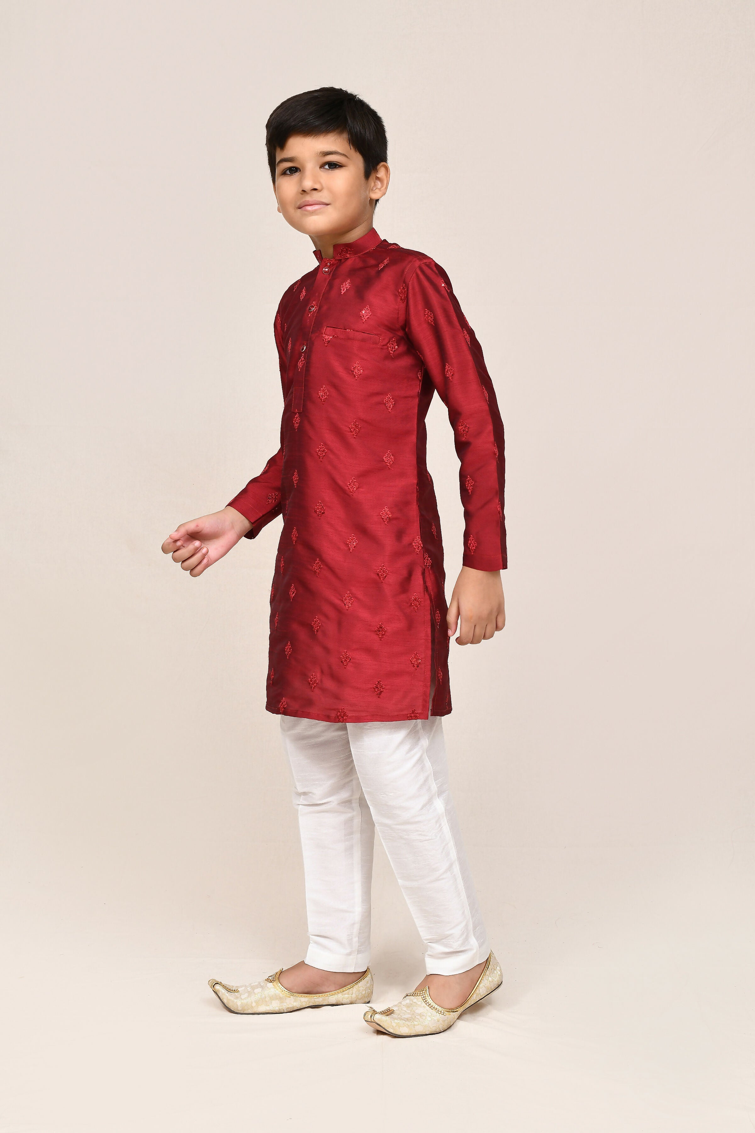 Joban Fashion Silk Maroon Kurta With Straight Fit Pant