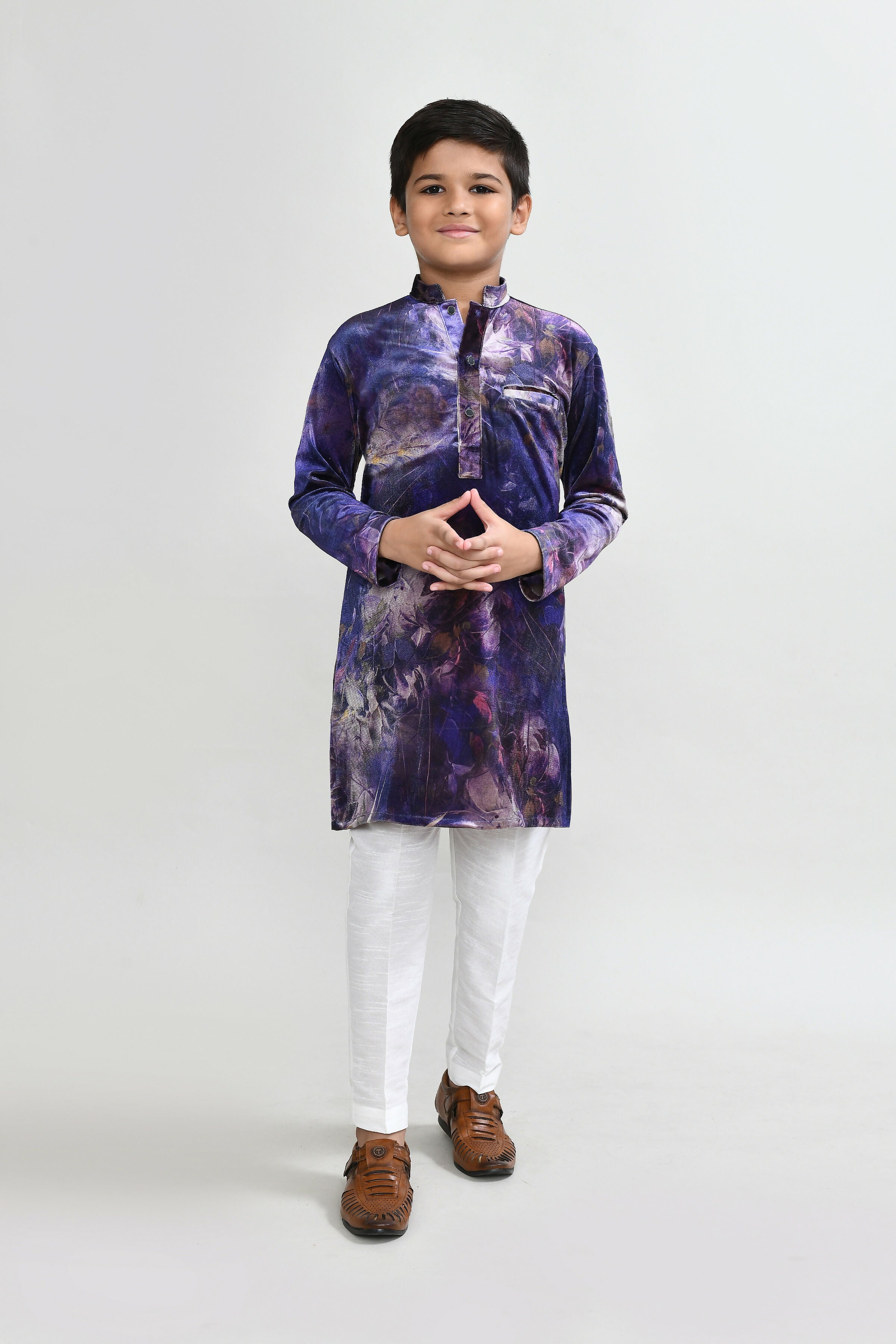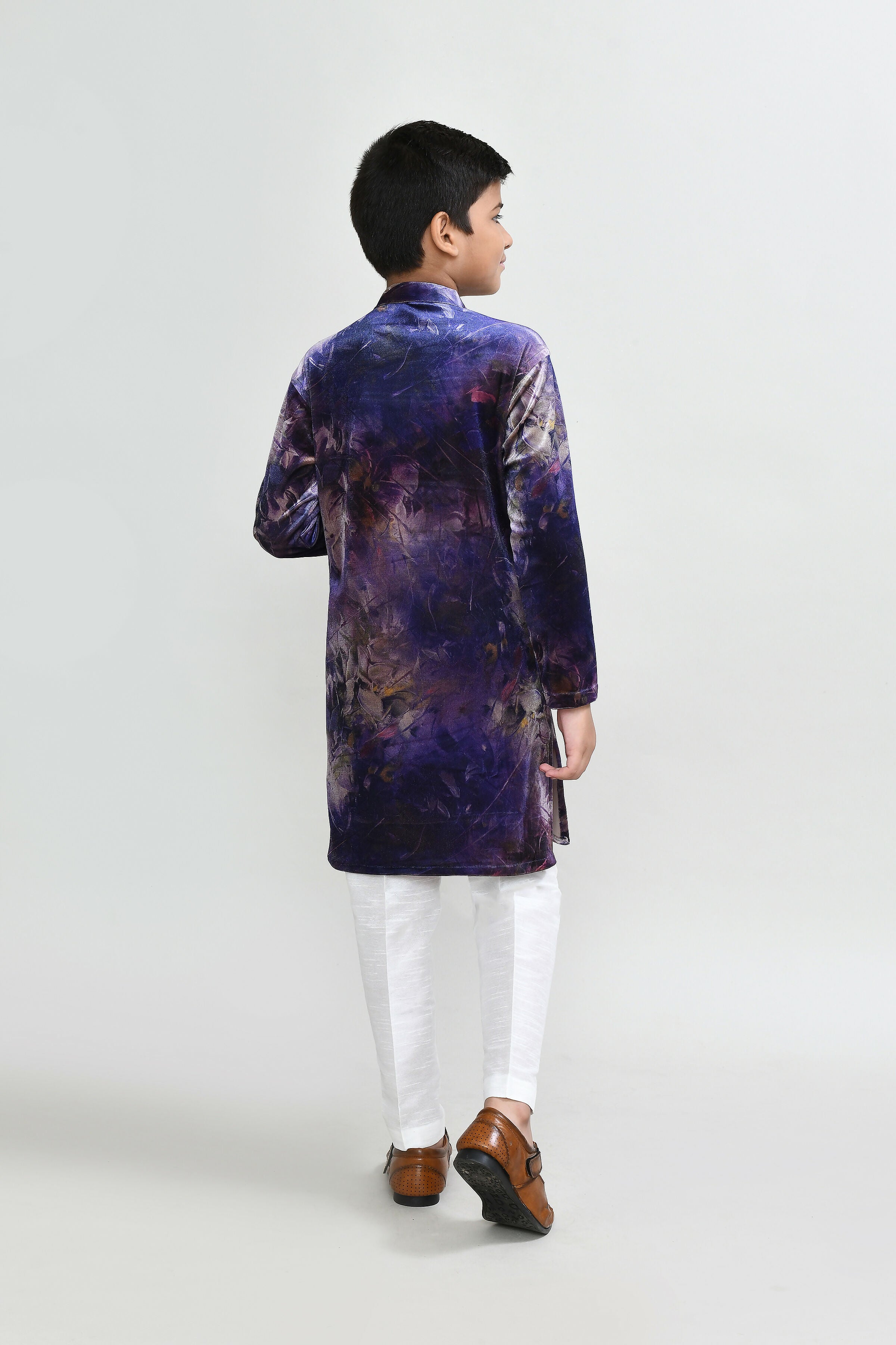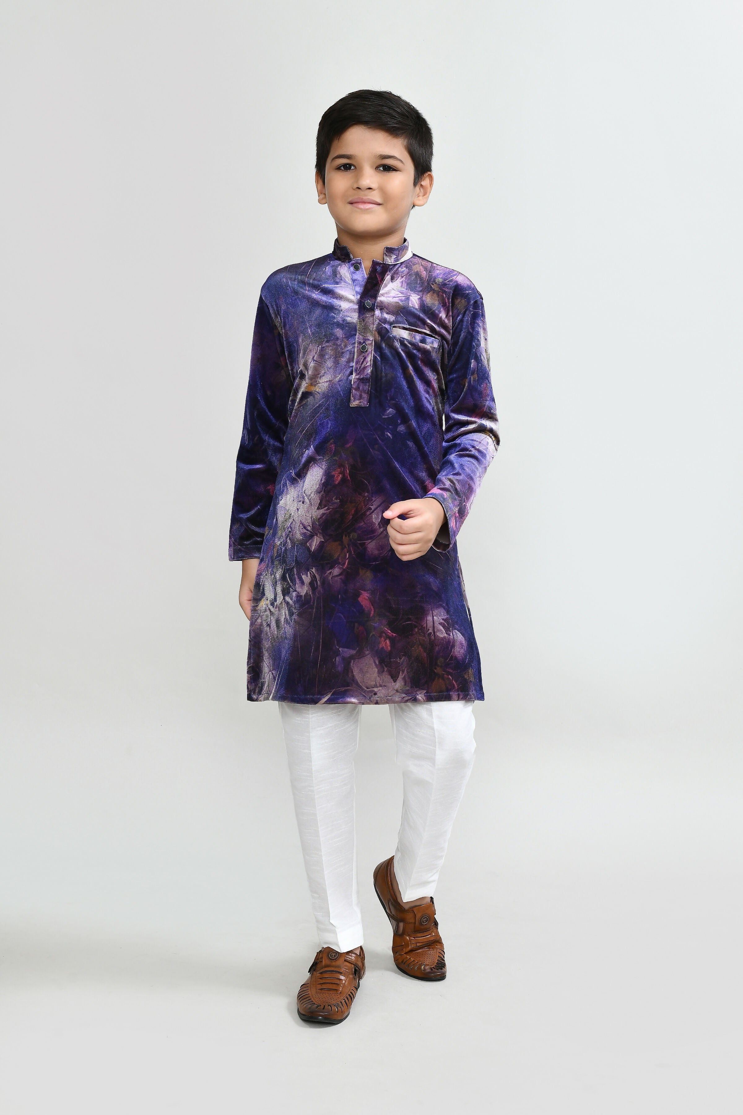 Joban Fashion Velvet Purple Kurta With Straight Fit Pant