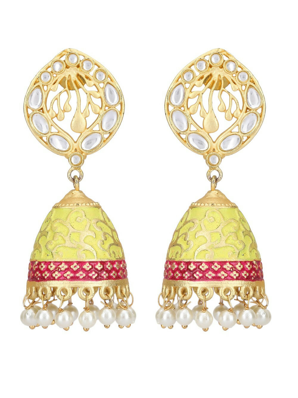 Joban Fashion Women White Beats Matte Gold Jhumka