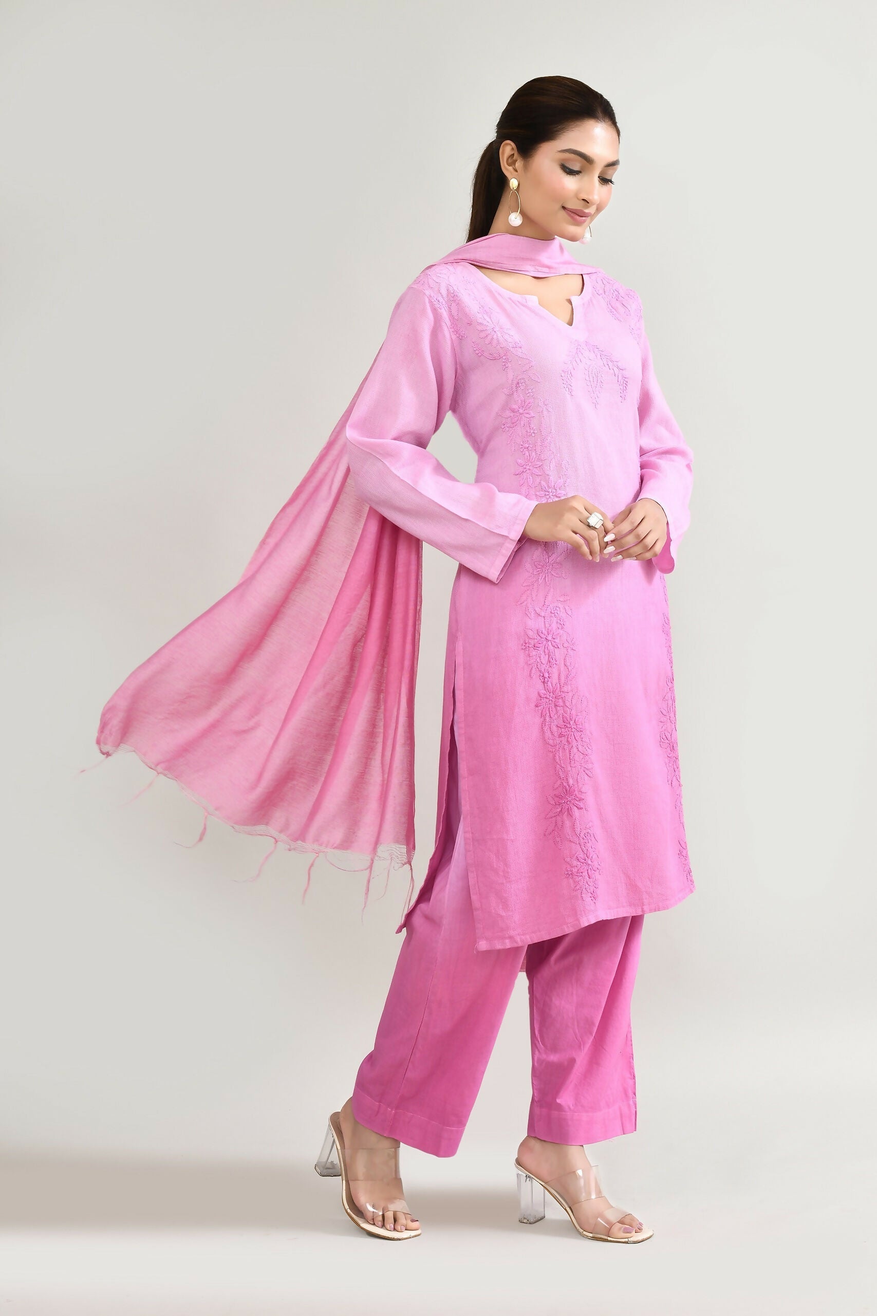 Joban Fashion Womens Cotton ChikanKari Light pink Kurta set