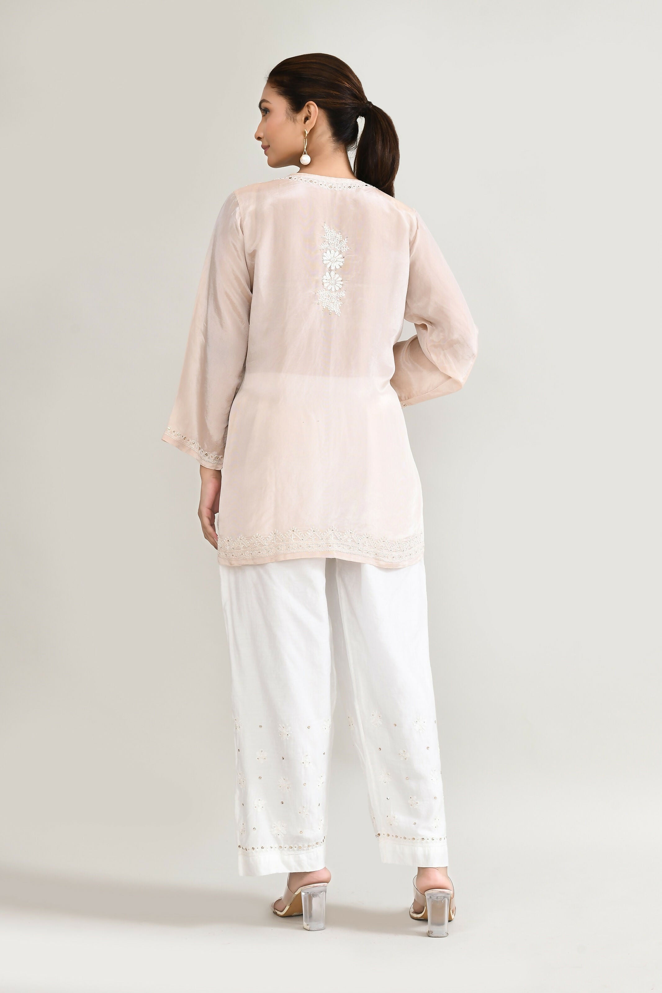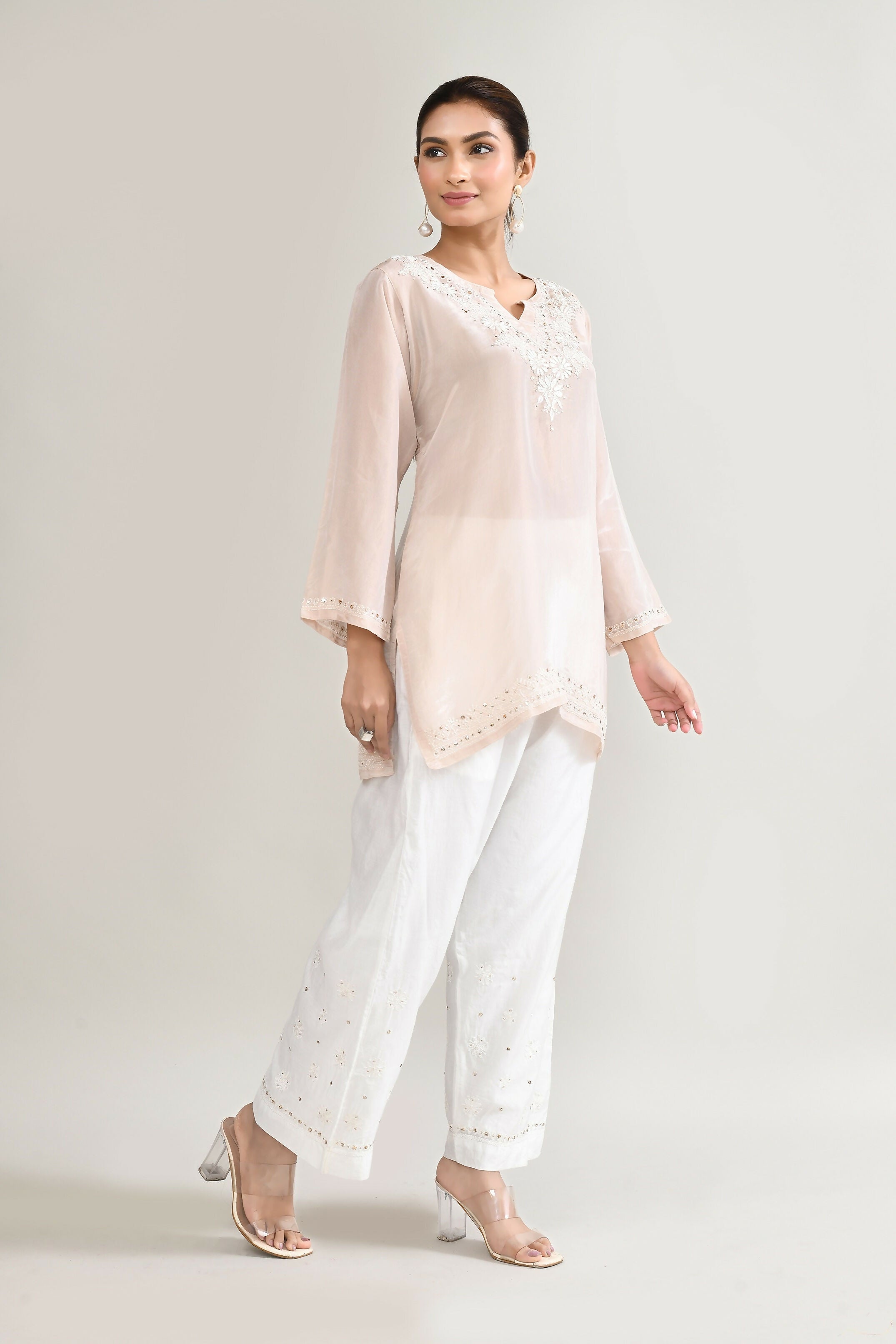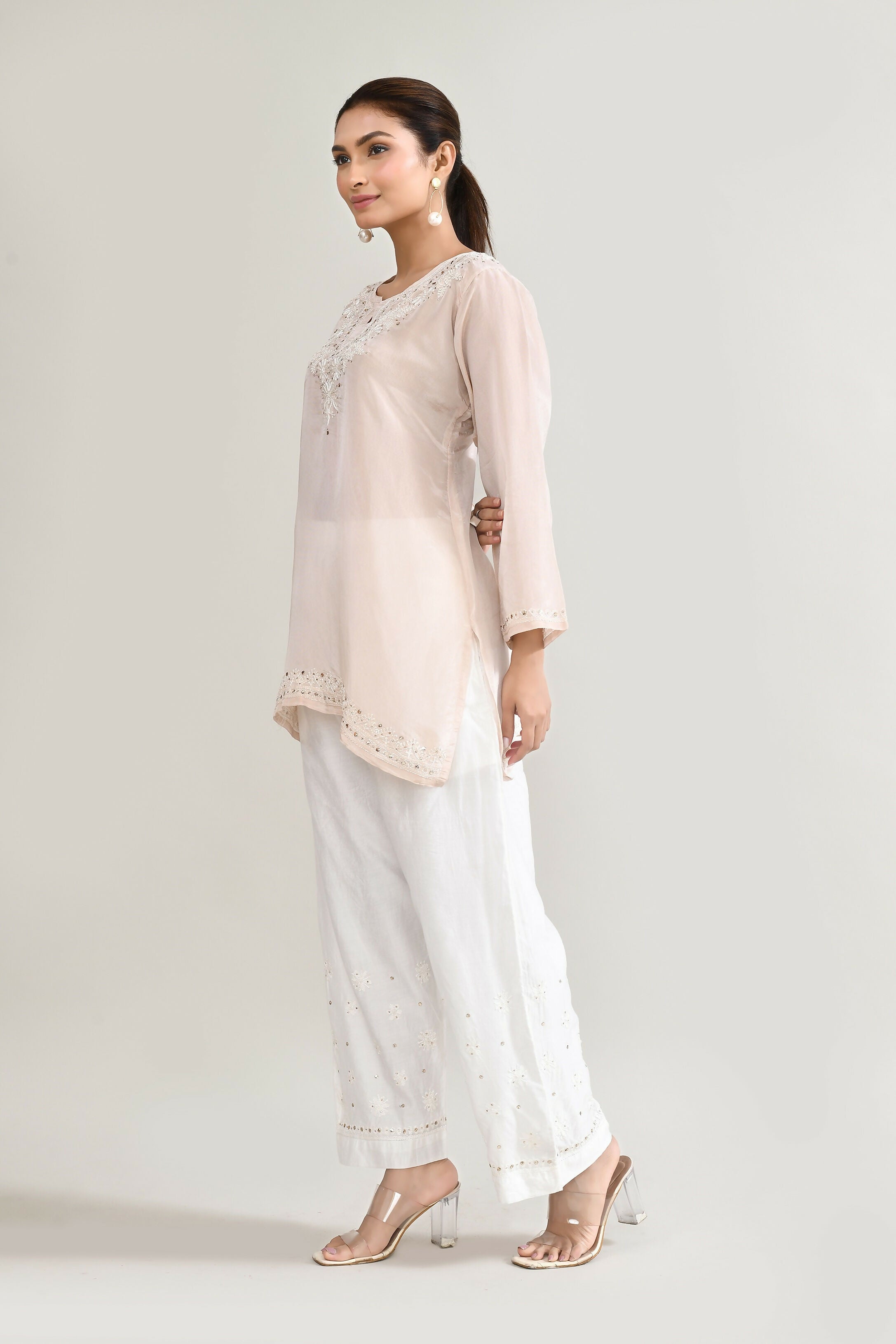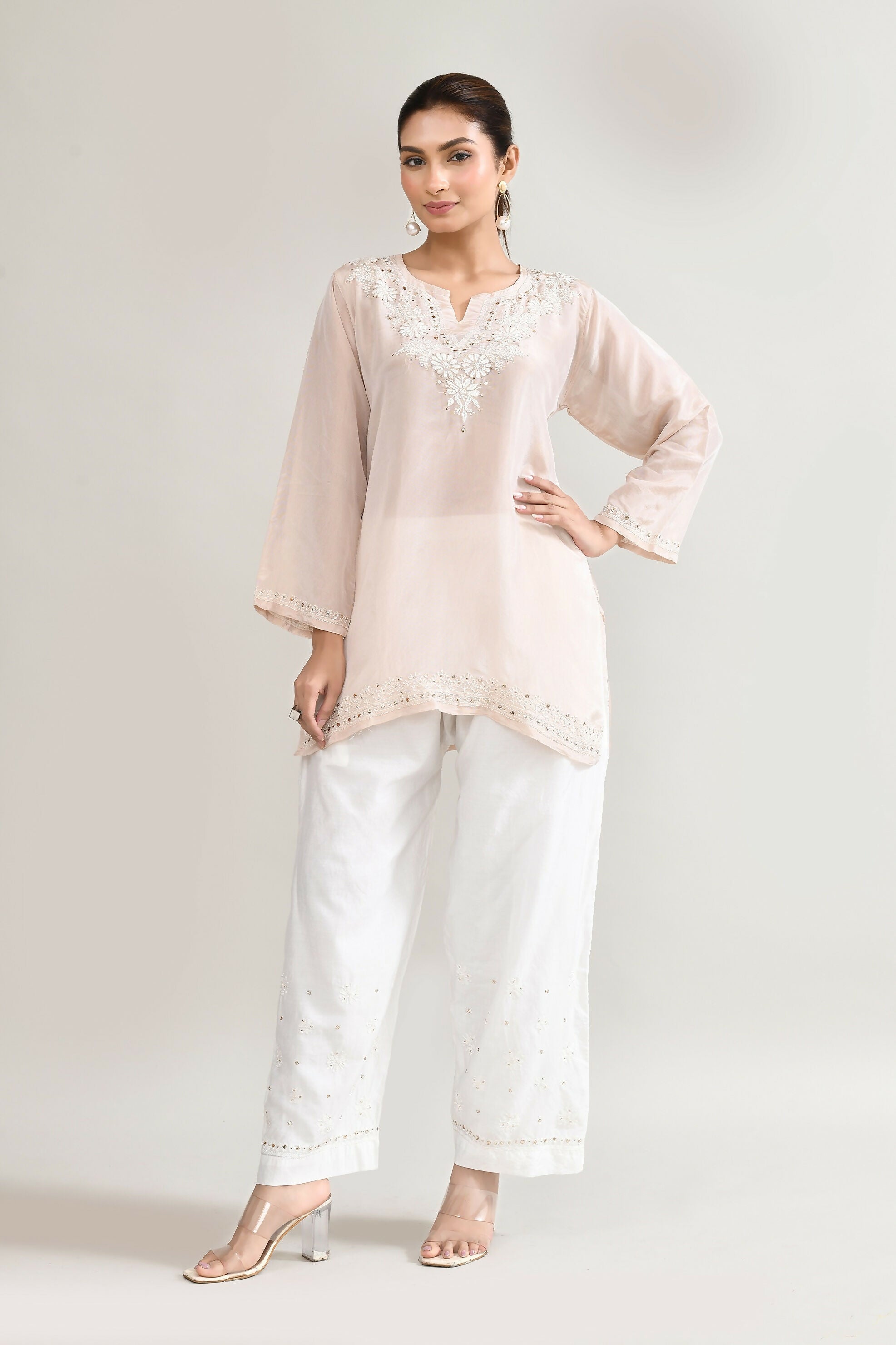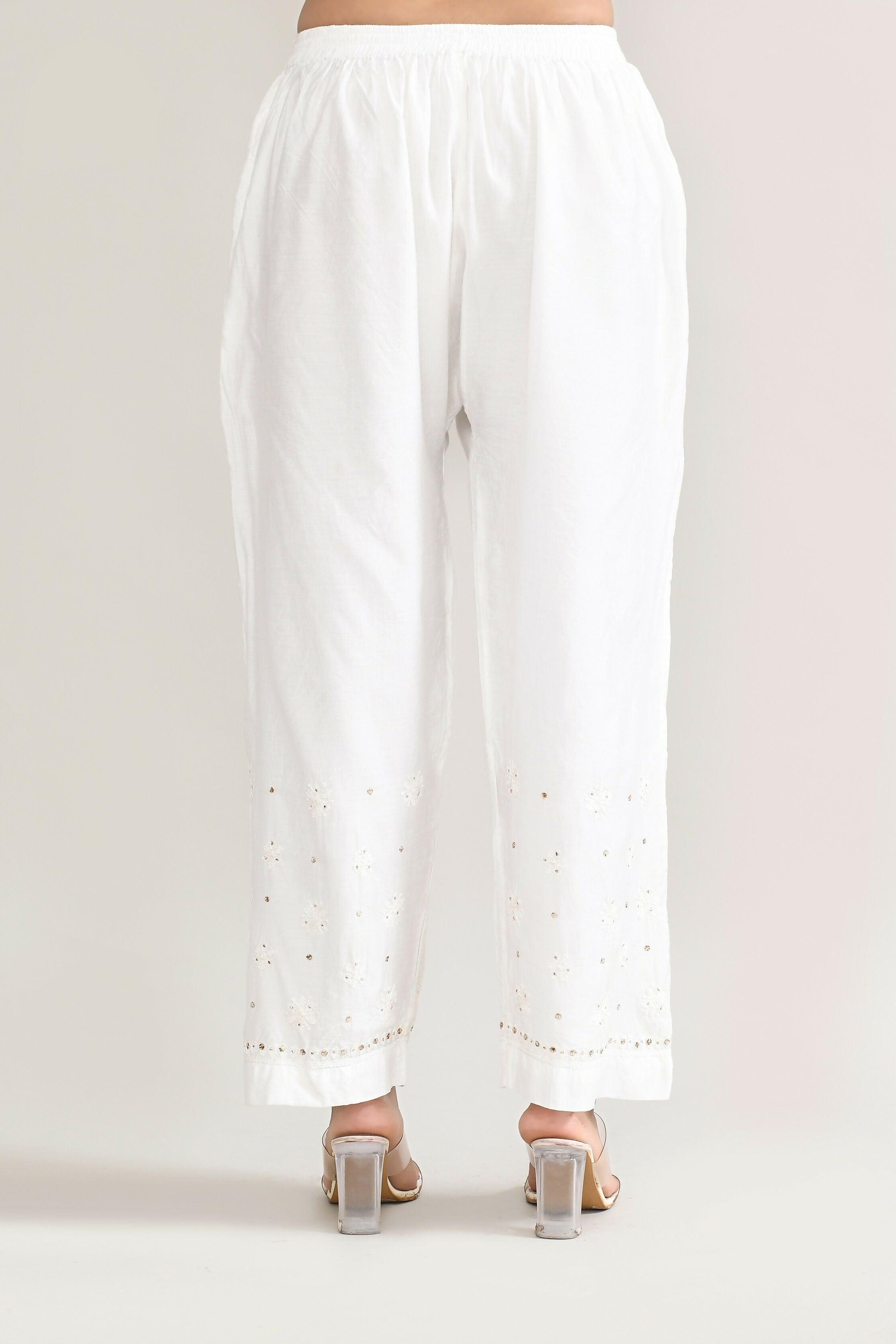 Joban Fashion Womens Cotton ChikanKari Off White Cord set