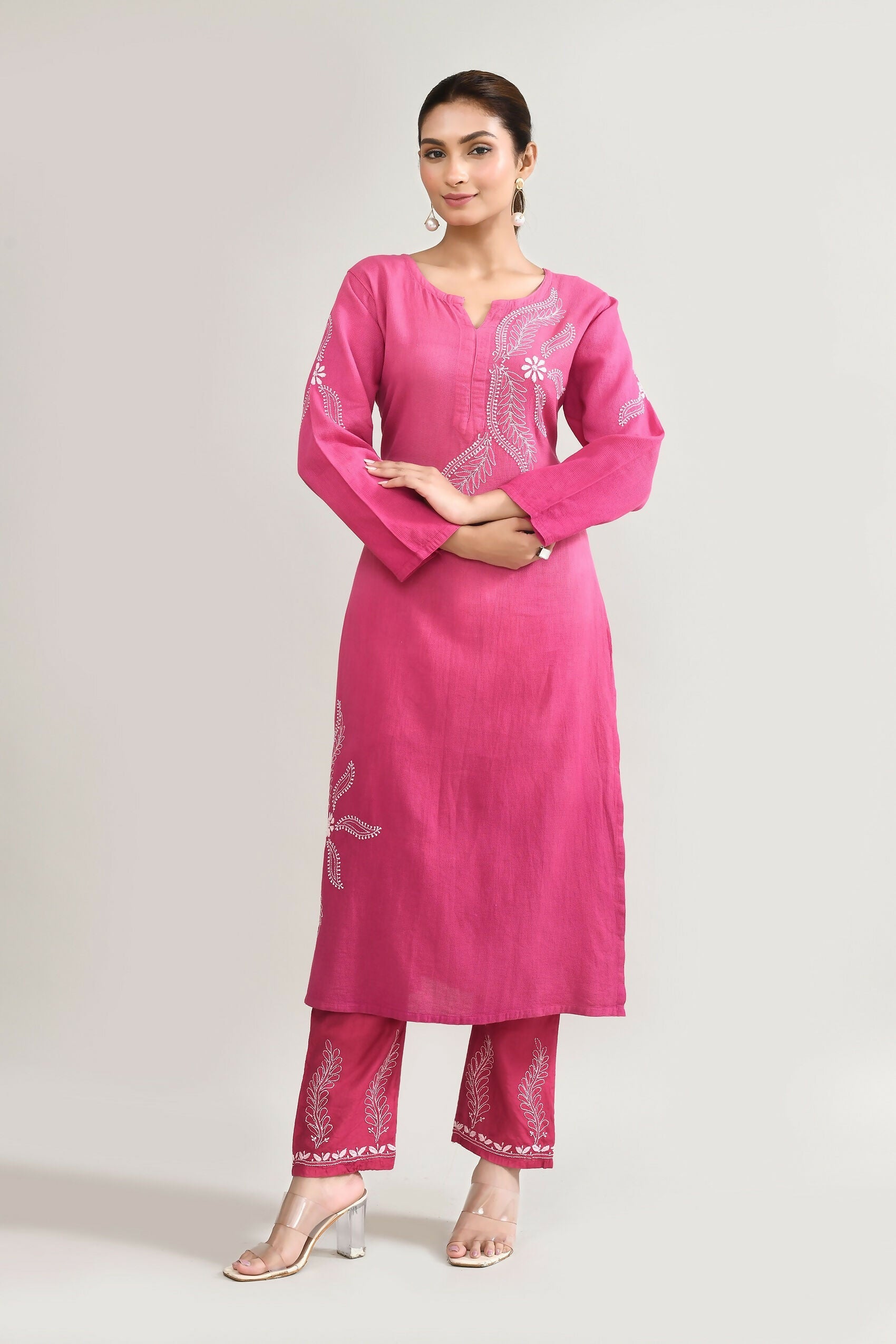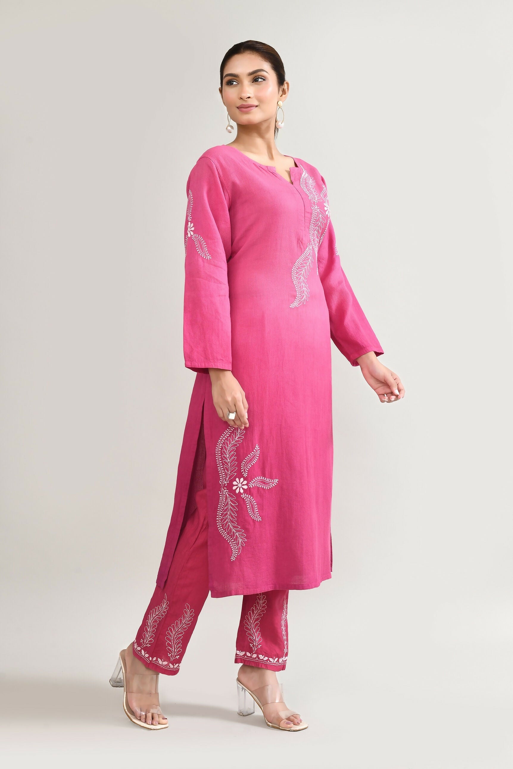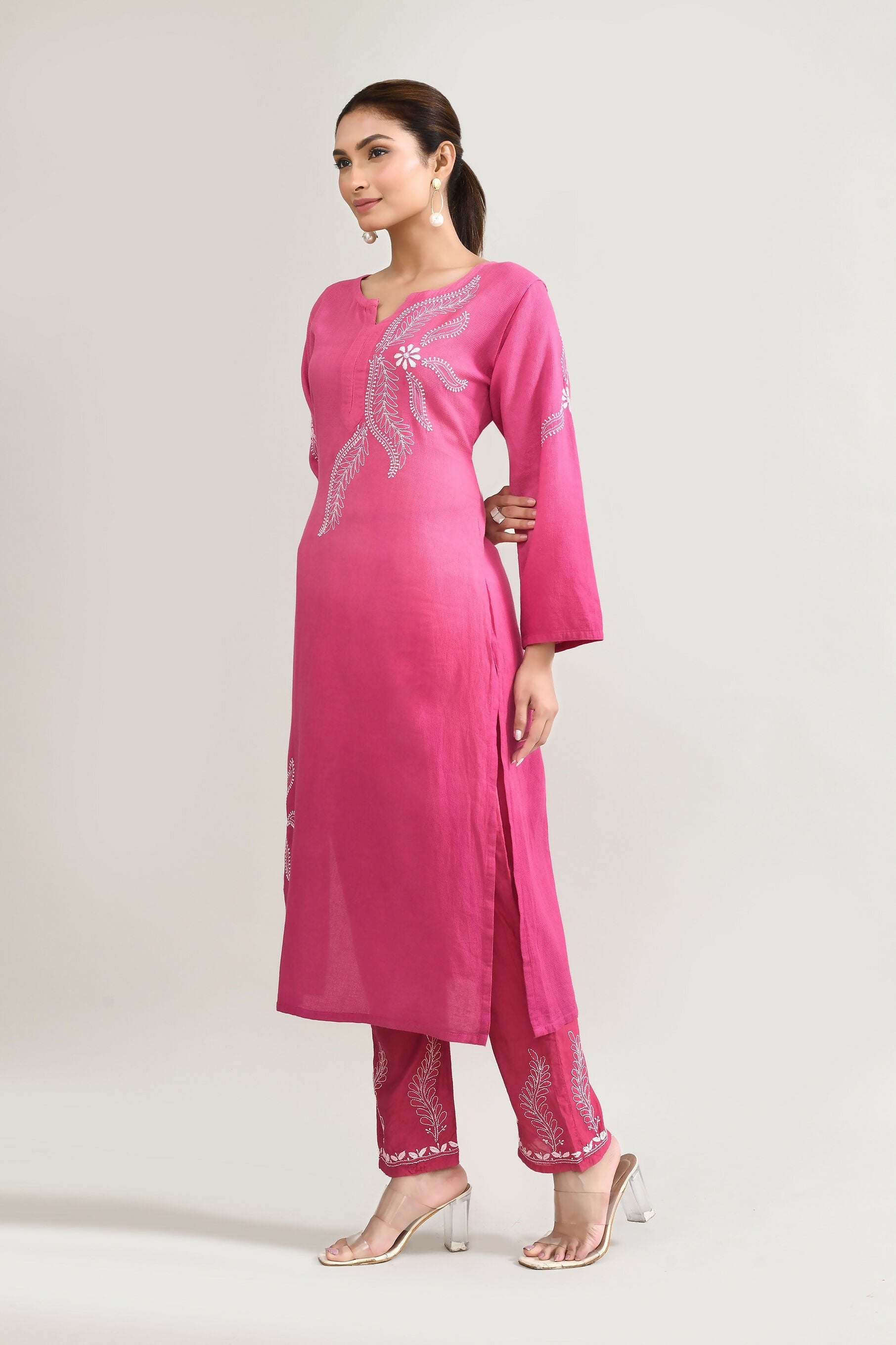 Joban Fashion Womens Cotton ChikanKari pink Kurta set