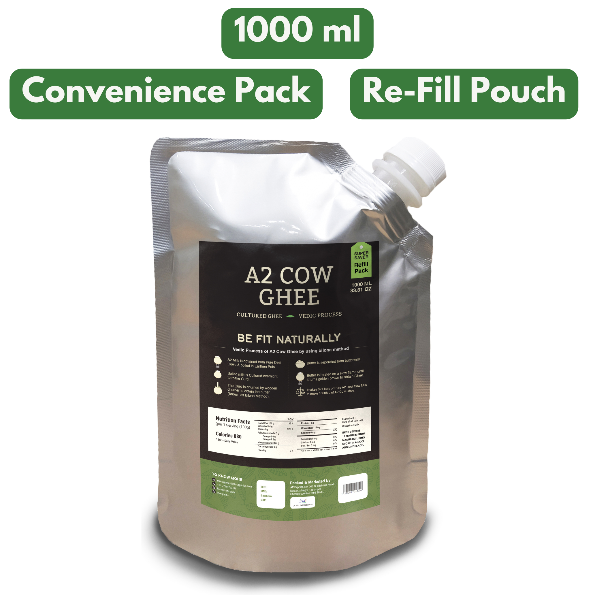 Le Organics A2 Cow Ghee | Cultured Desi Ghee | Homemade & Certified Organic Ghee