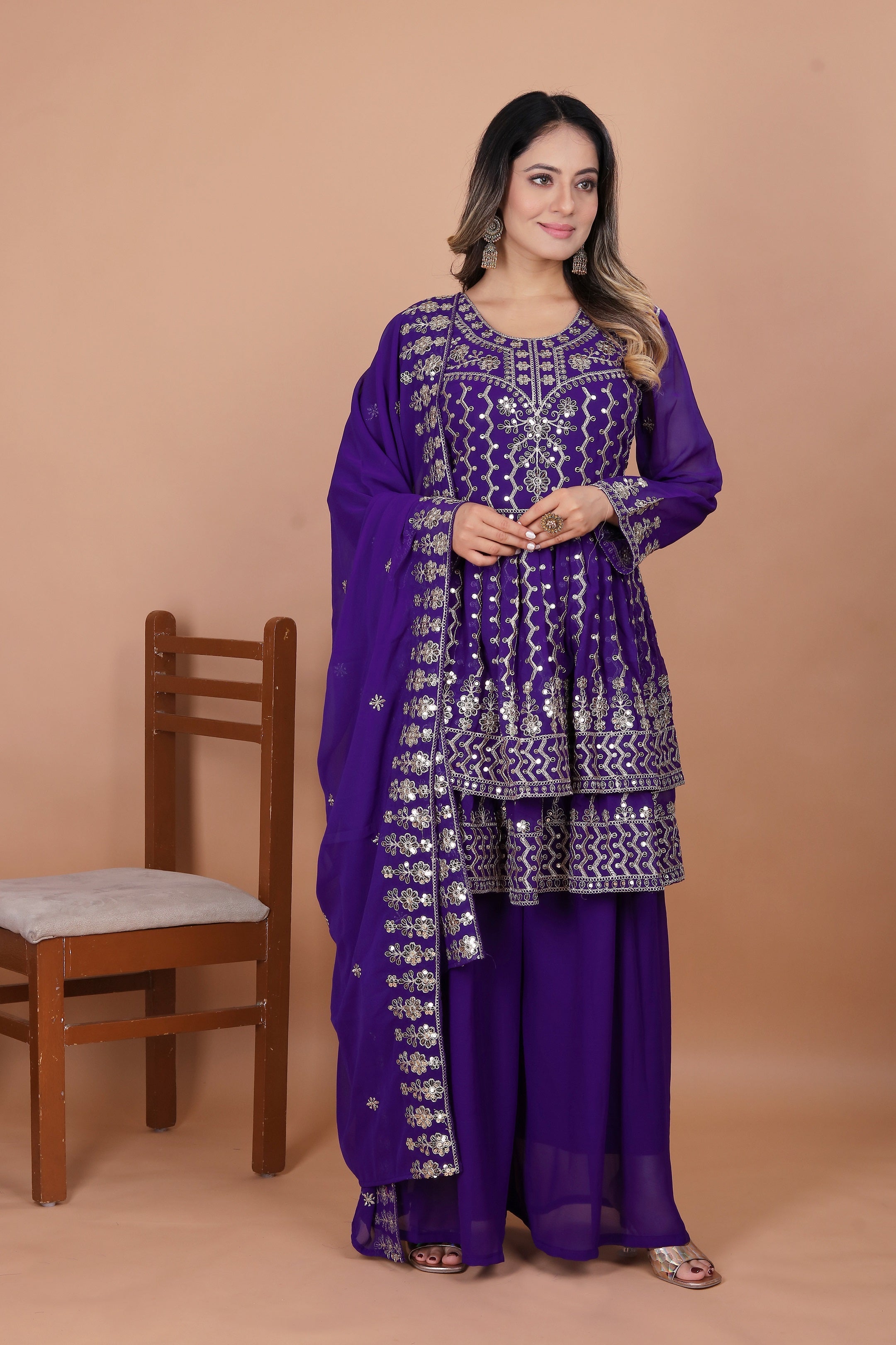 Lehenga Mart Designer Georgette Sharara Suit Dupatta for Women - Blue