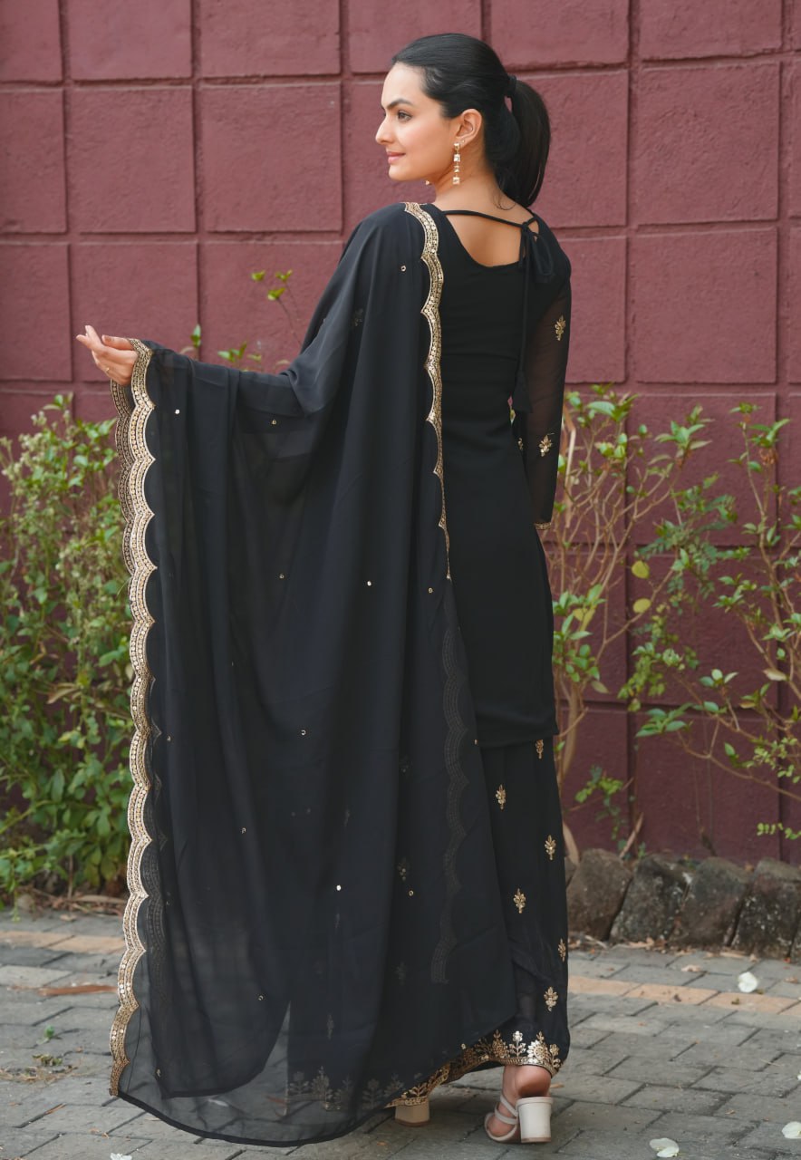 Lehenga Mart Designer Sharara Suit For Women or Girls - Black