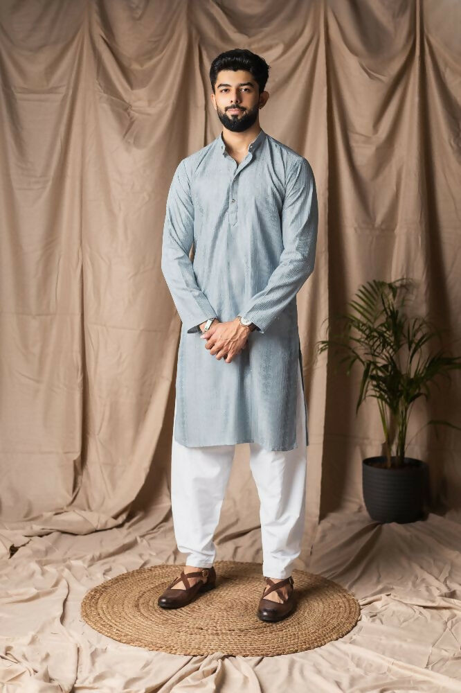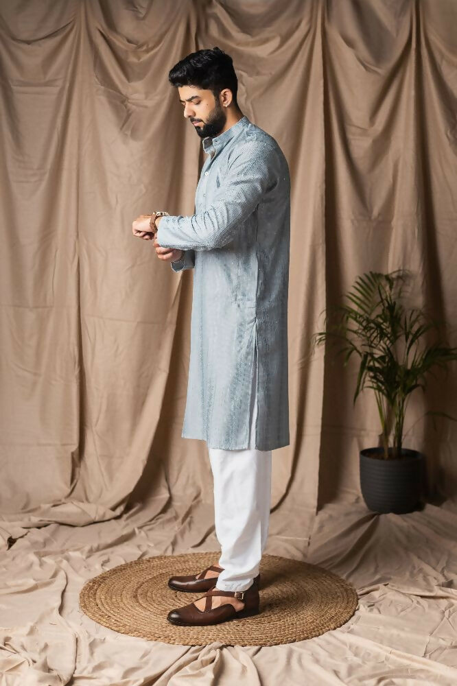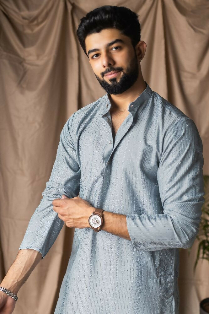 Light Blue Rayon Thread Embroidery Work Kurta Set - Mahotsav