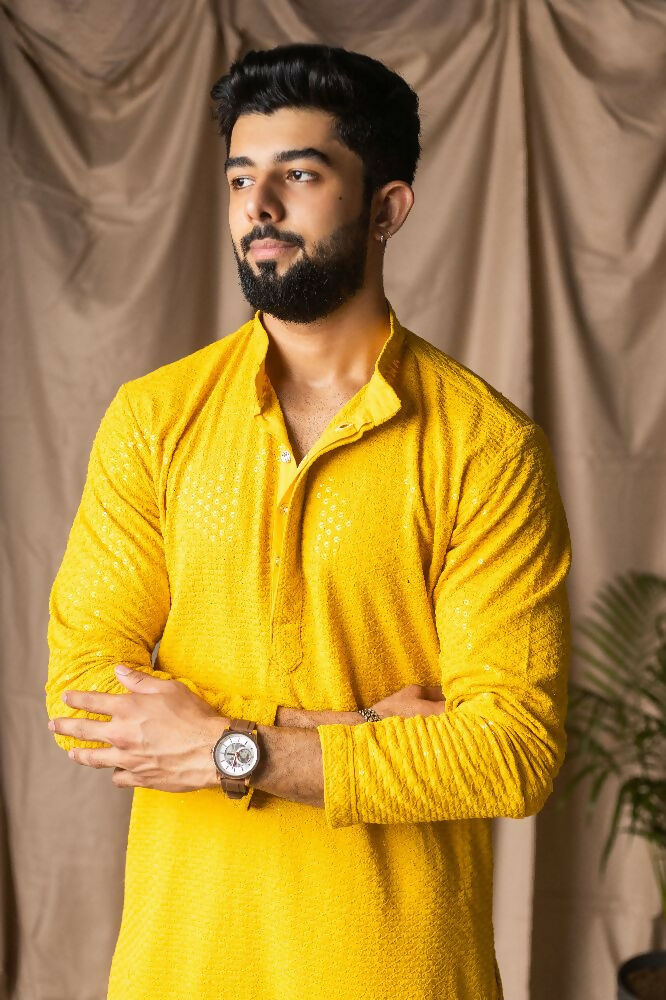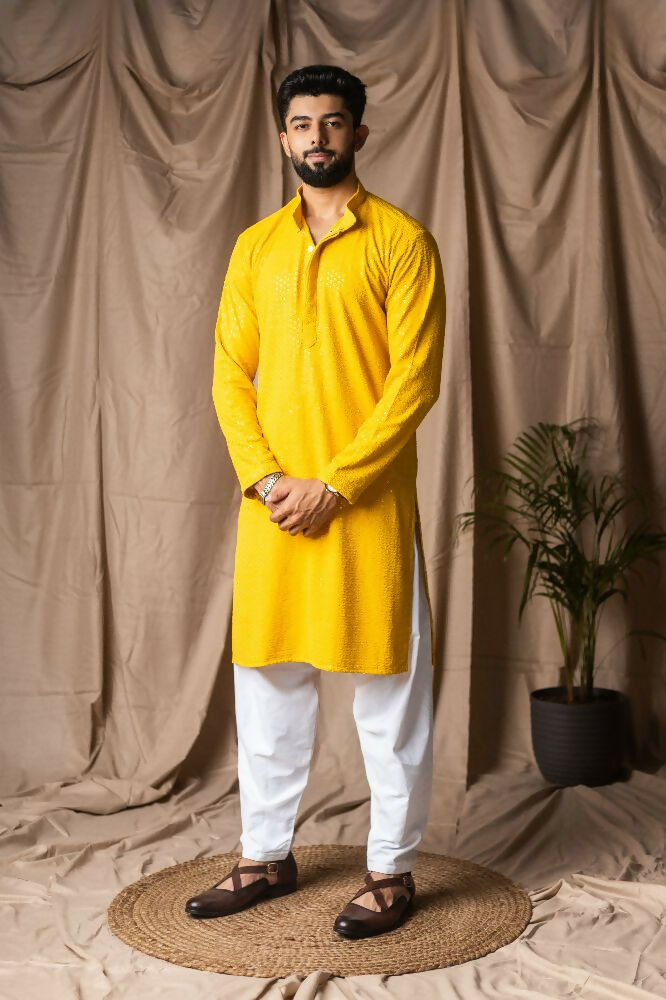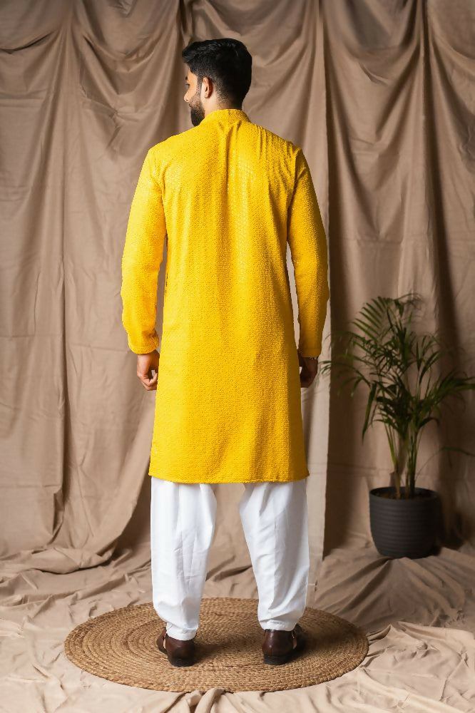 Light Yellow Rayon Thread Embroidery Work Kurta Set - Mahotsav