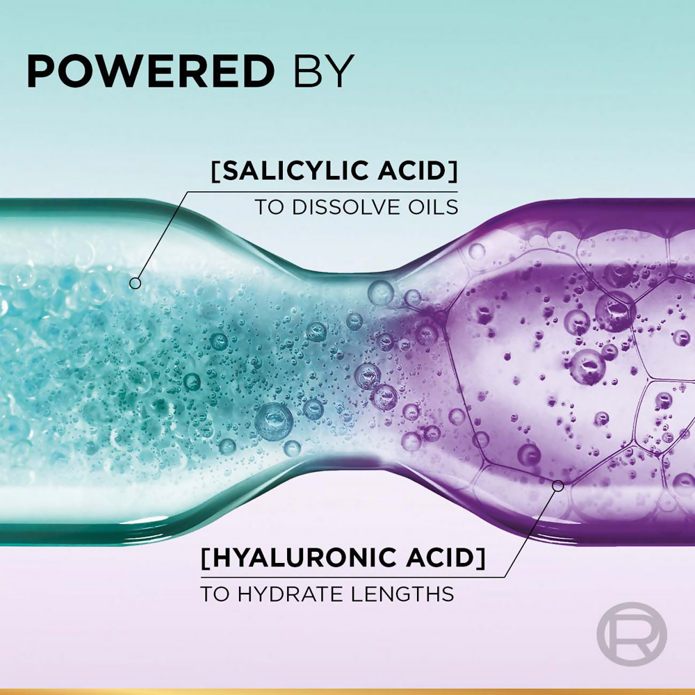 Inspired by skincare, Elvive Hyaluron + Pure 72H Purifying Shampoo is expertly designed with salicylic acid and hyaluronic acid-infused blend to remove up to 100% of residue so you can address oily roots while prioritizing hair hydration. It leaves the scalp feeling cleansed and refreshed.