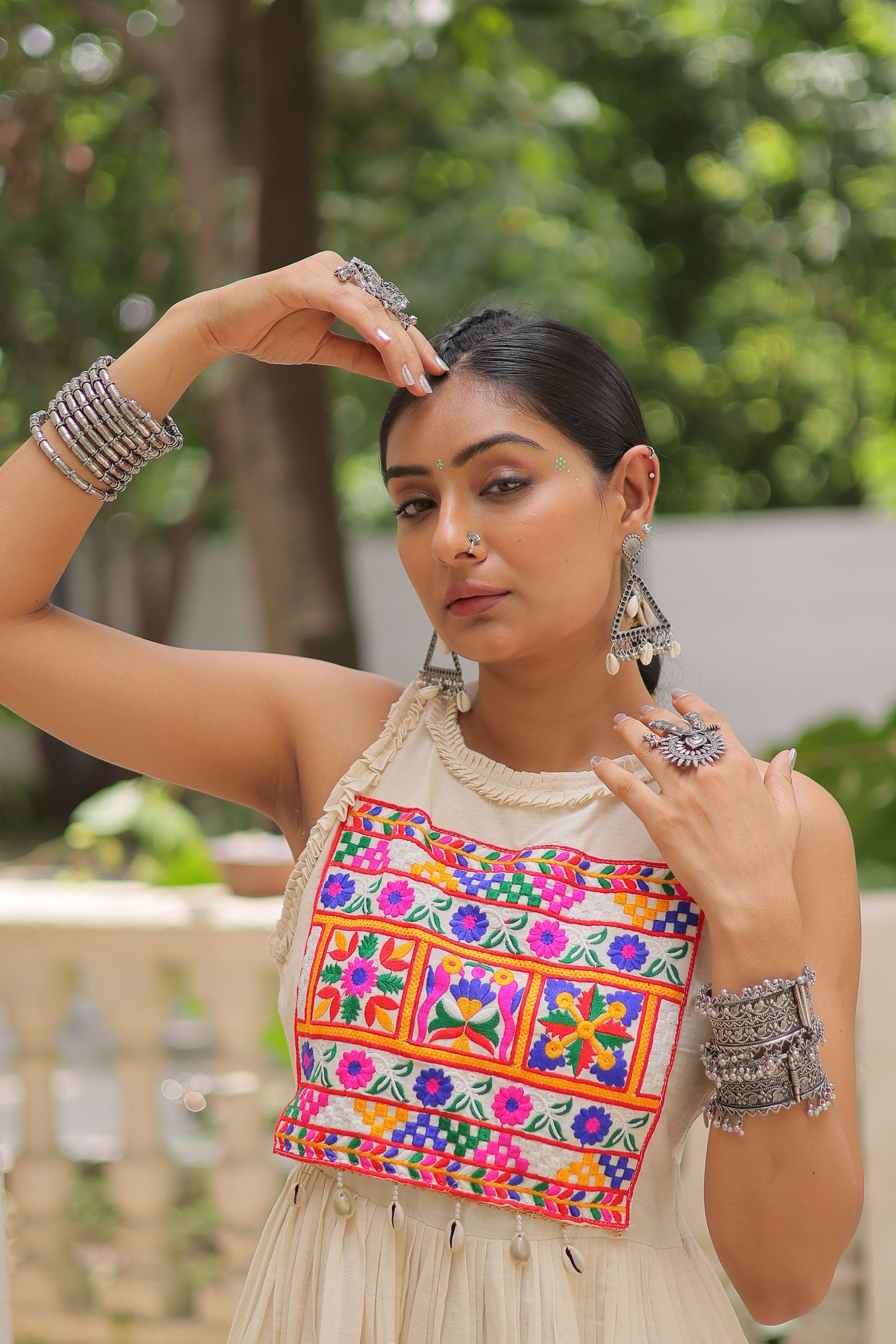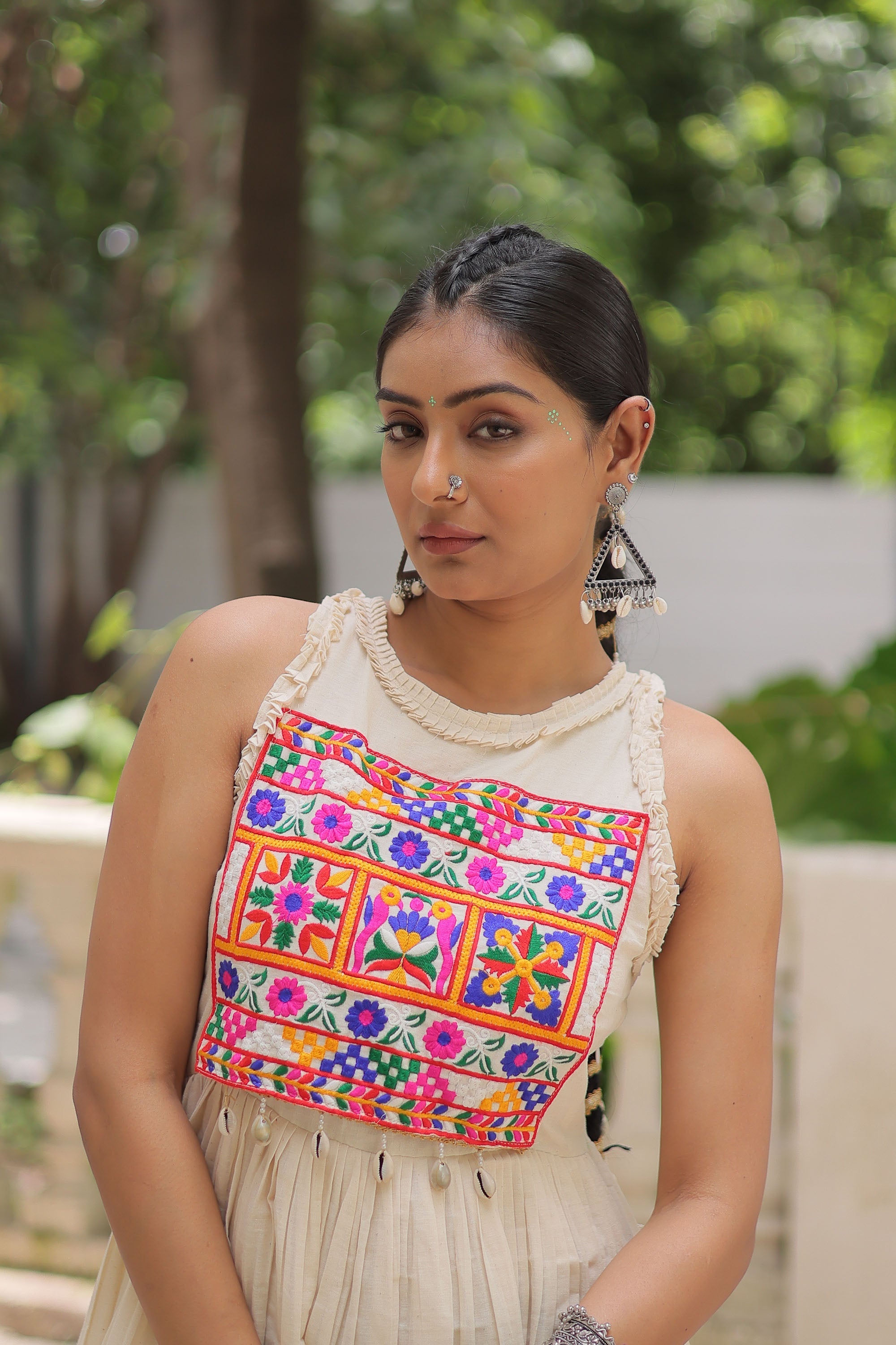 Lorenvalley Fashion Offwhite Kora Cotton with Multi Thread Embroidered Work Gown