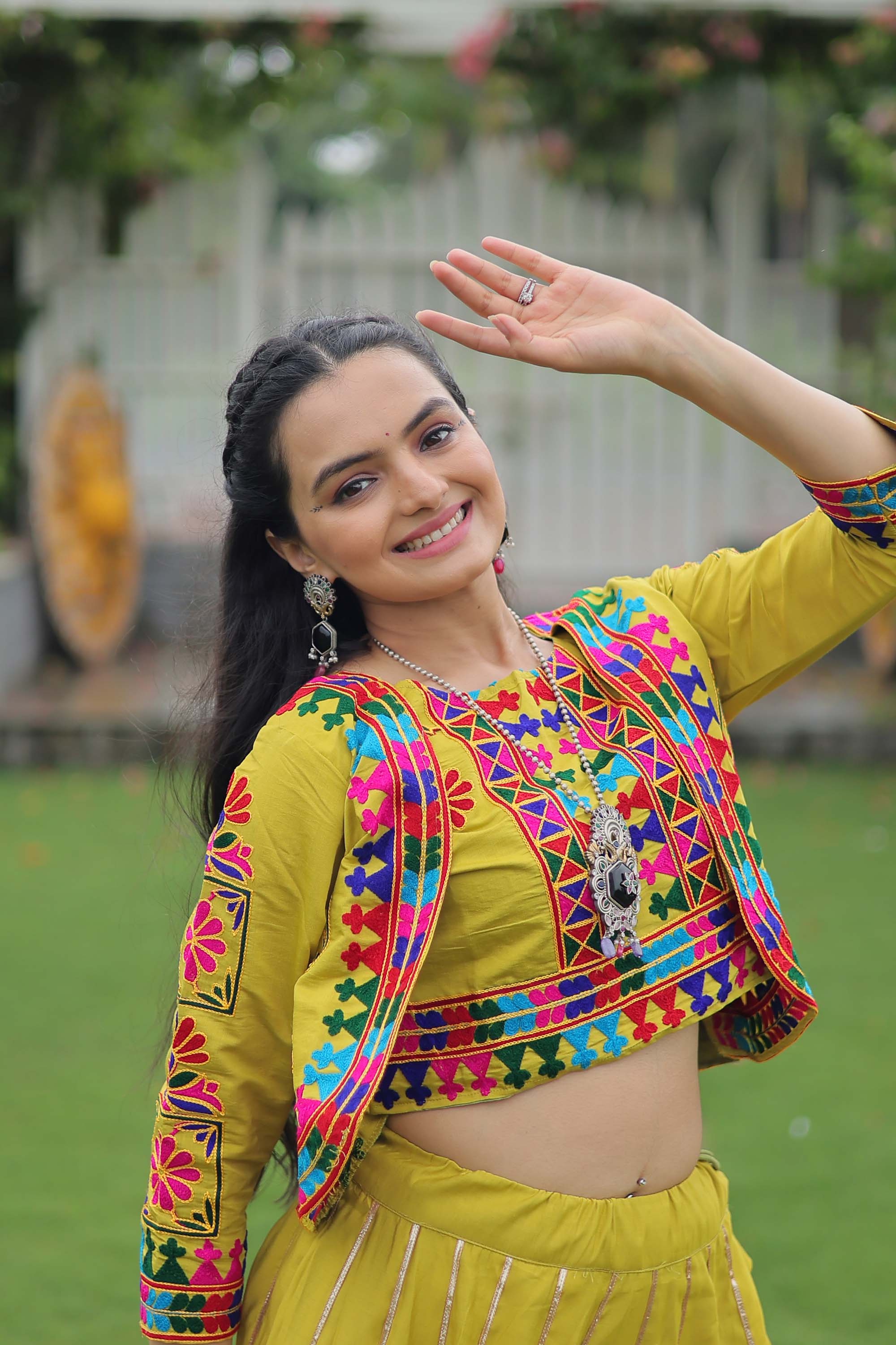 Lorenvalley Fashion Parotgreen Roman Silk with Attractive Gota-Patti Lace Lehenga Choli