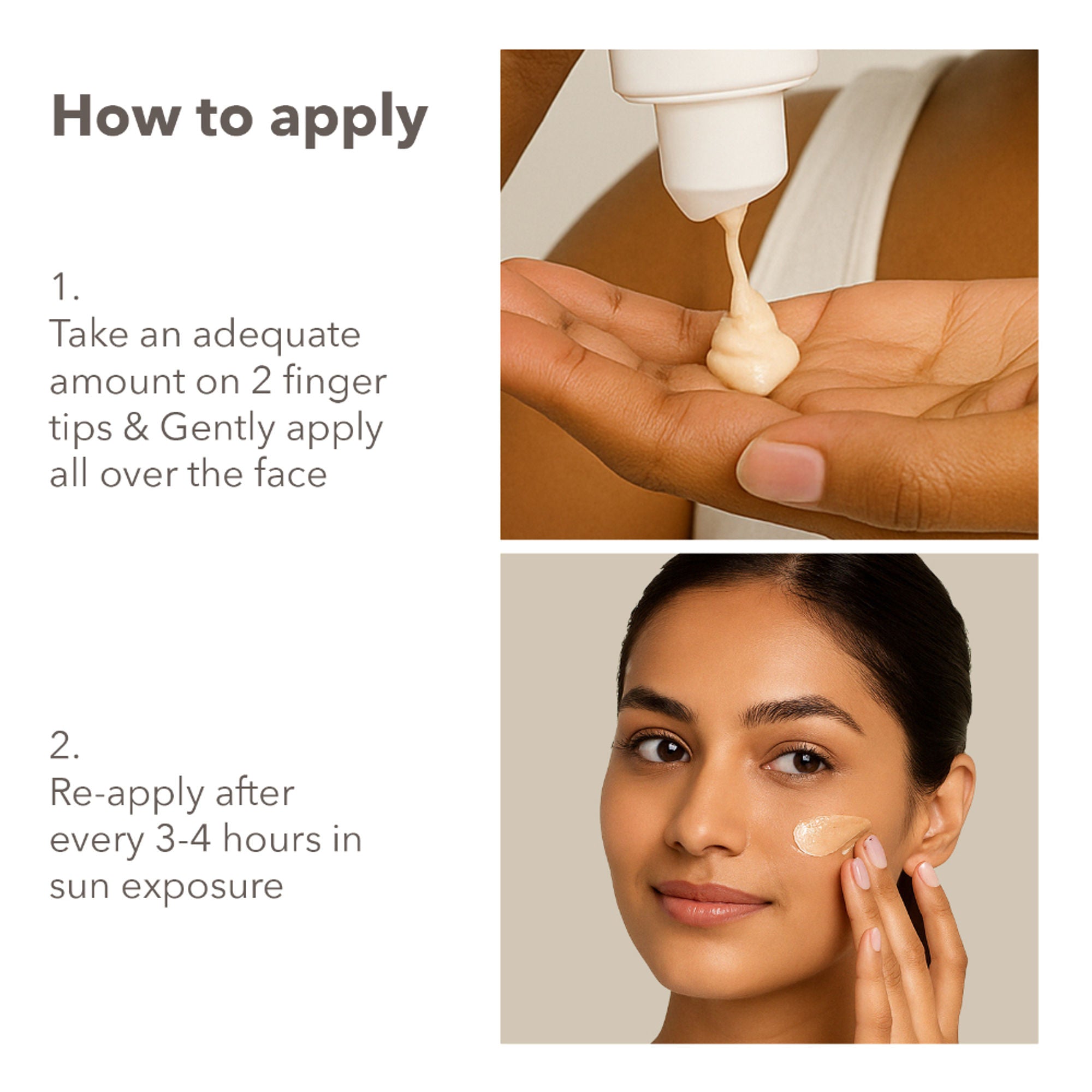- Dermatologist-designed tinted sunscreen with SPF 60+ PA++++ for broad-spectrum UV protection