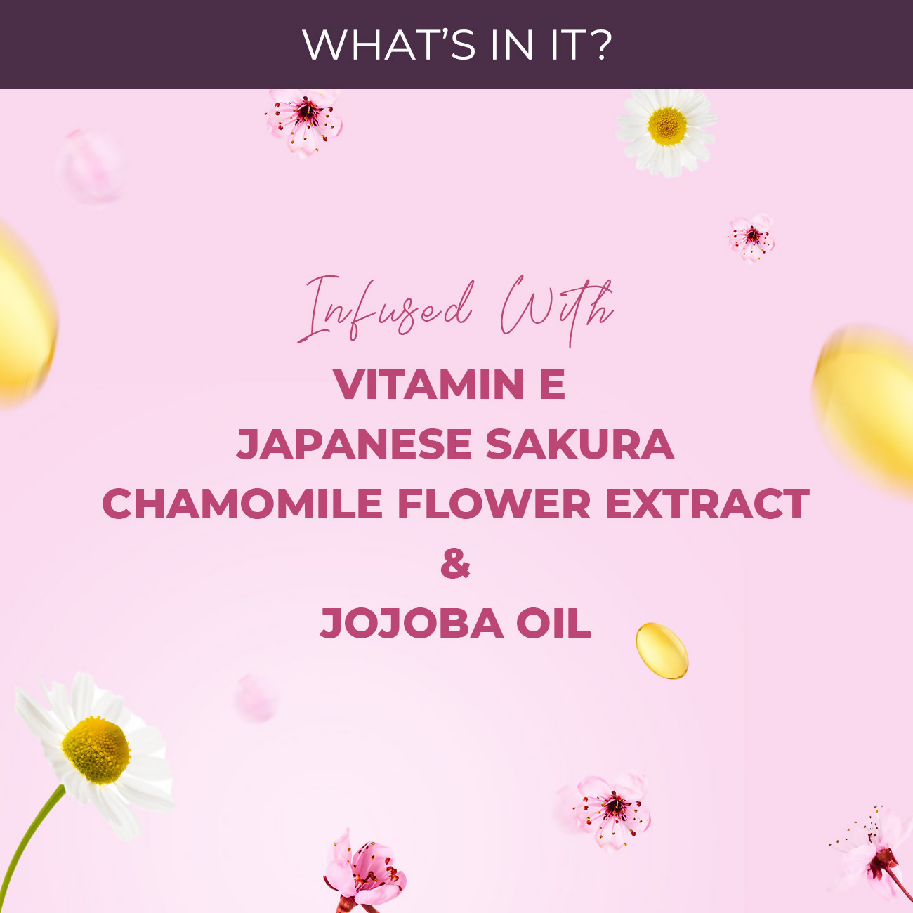 Japanese Sakura, Jojoba Oil, Chamomile Flower, Vitamin E