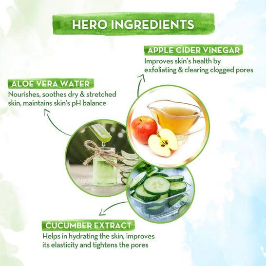 The combination of Apple Cider Vinegar and Cucumber gently cleanses and exfoliates to remove impurities from your skin’s surface and pores.