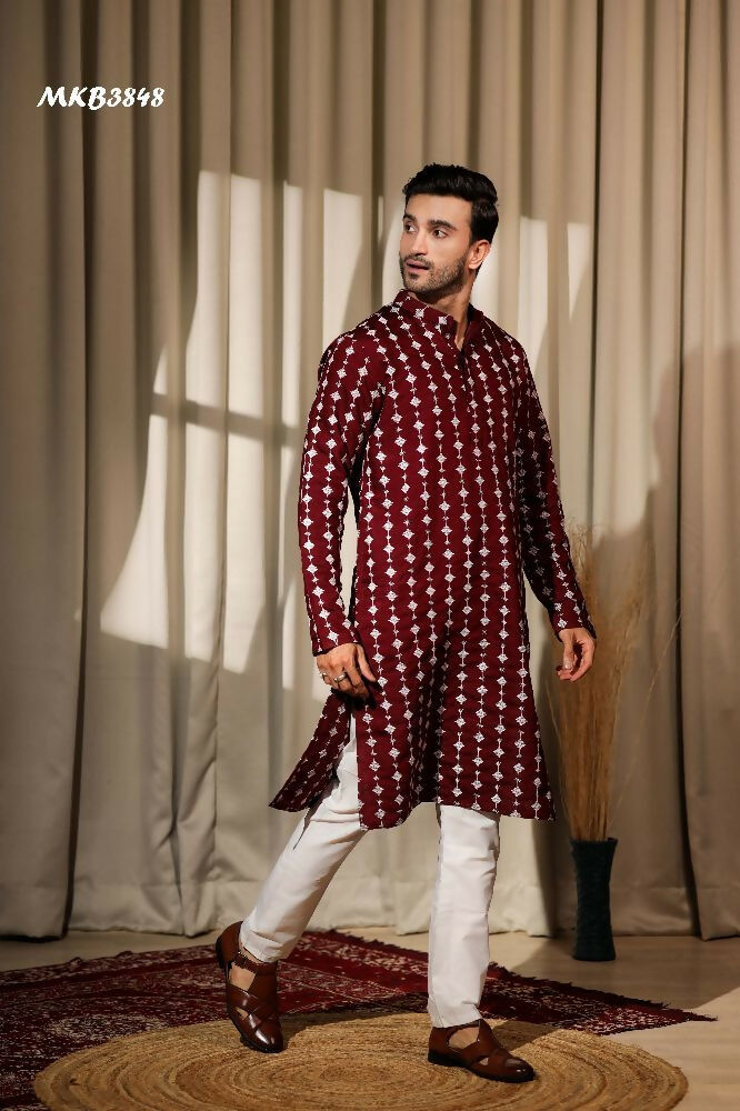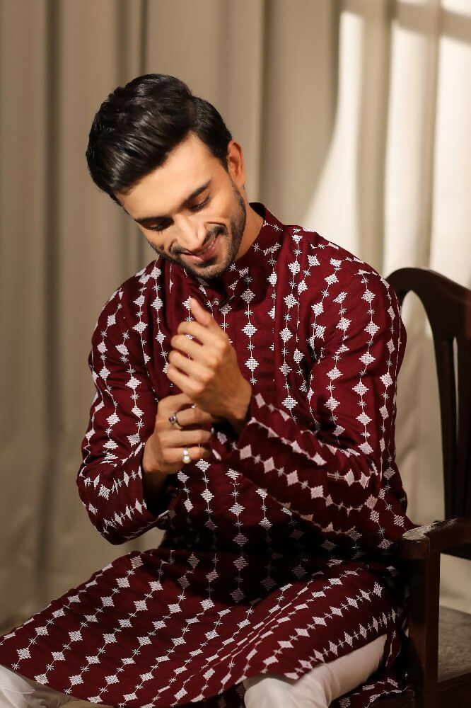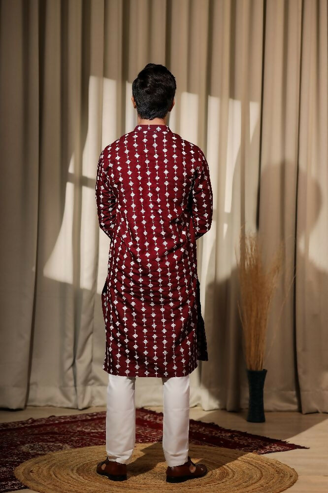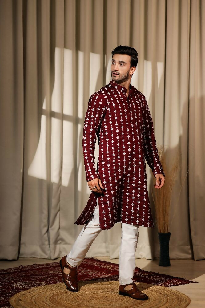 Maroon Viscose Designer Embroidery Work Kurta Set - Mahotsav