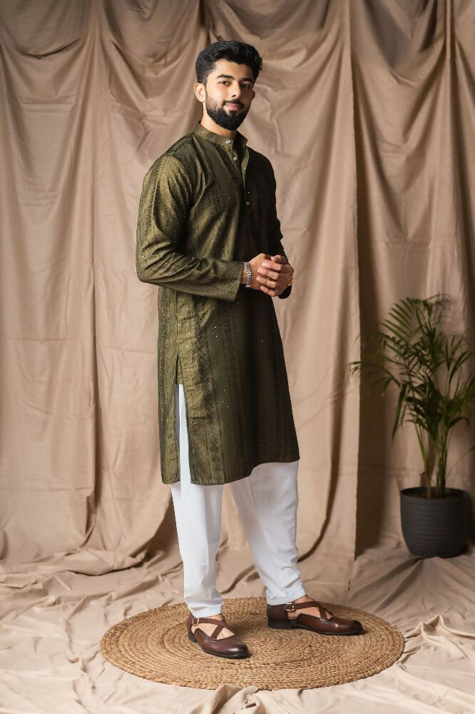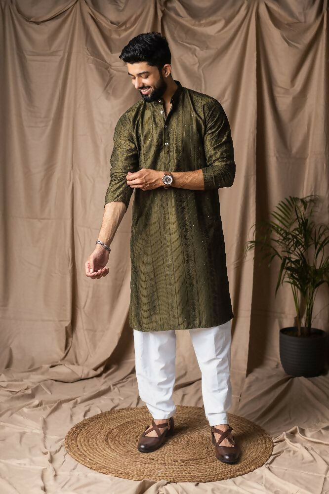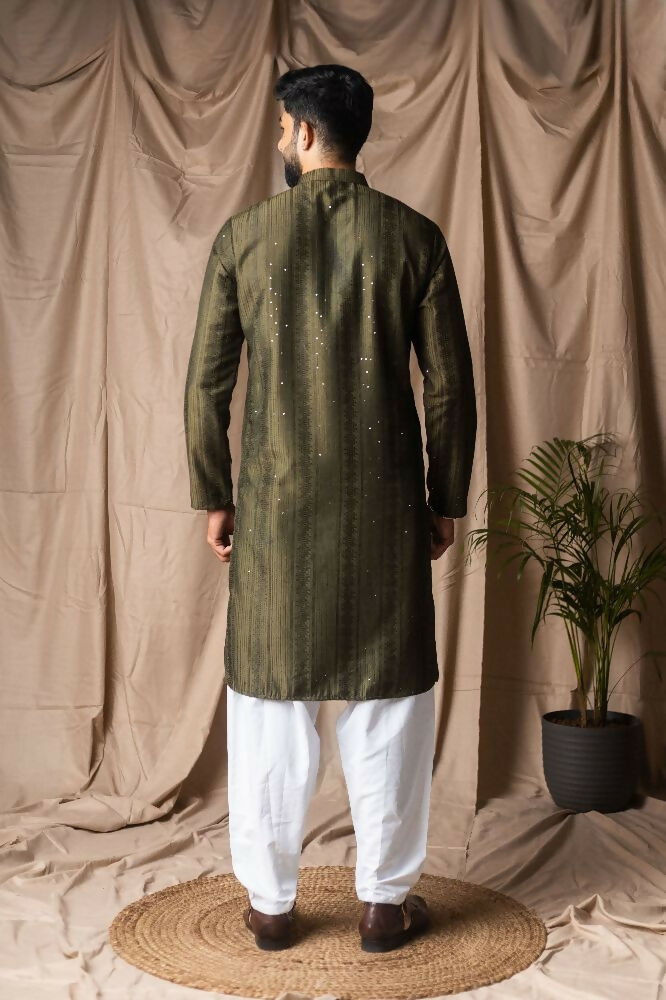 Mehandi Green Rayon Thread Embroidery Work Kurta Set - Mahotsav