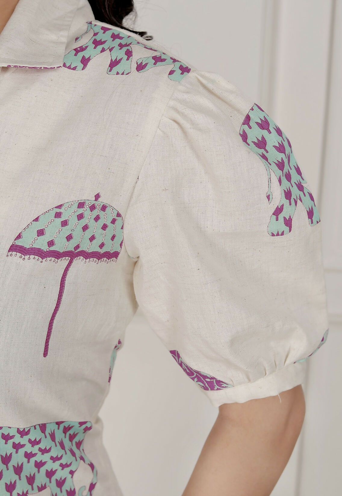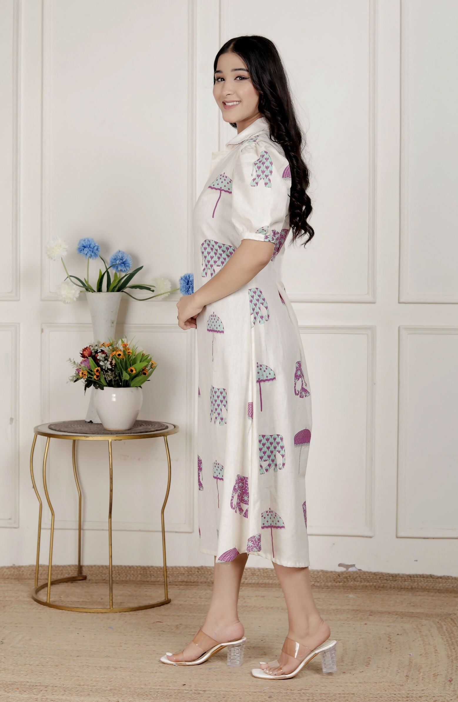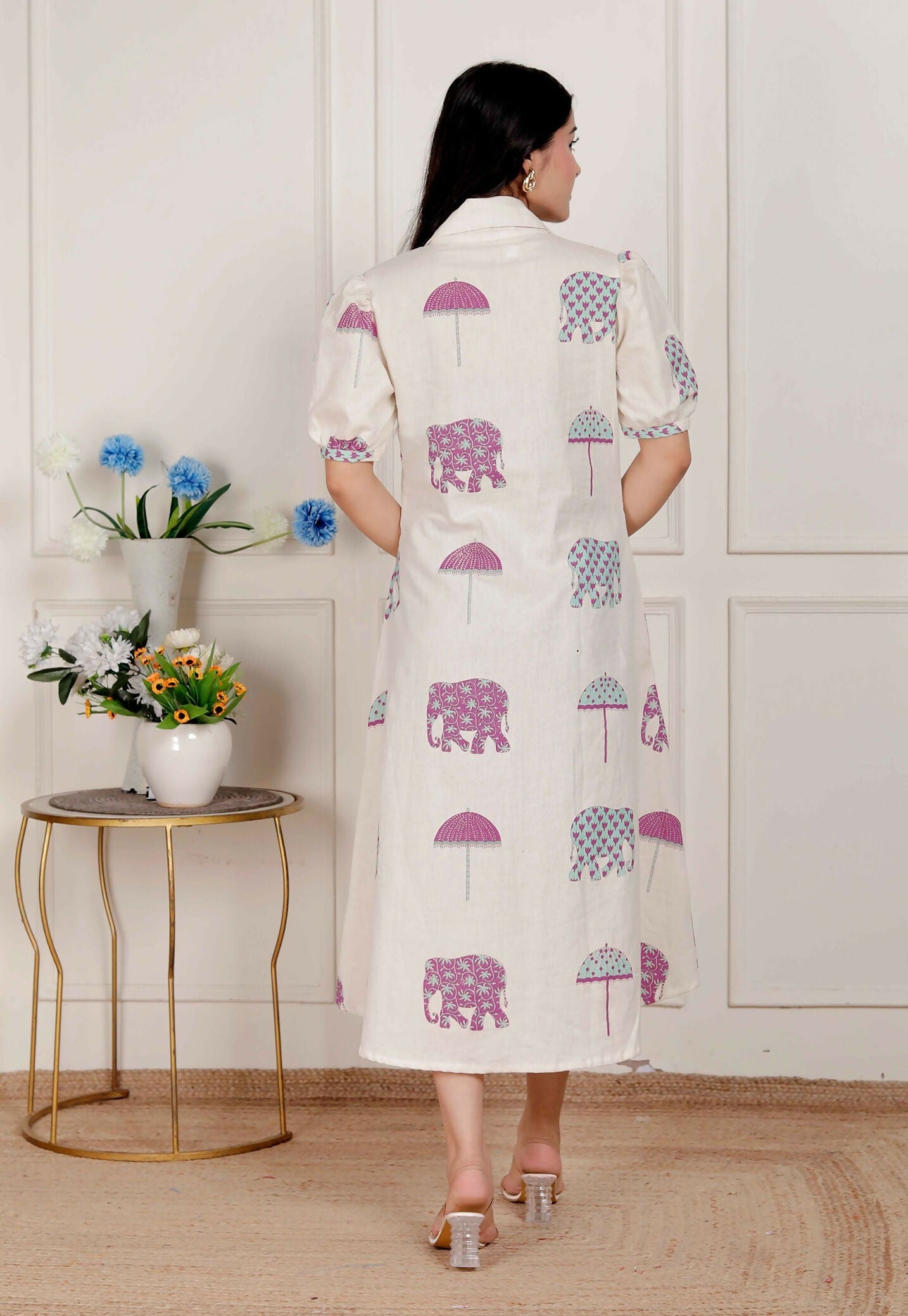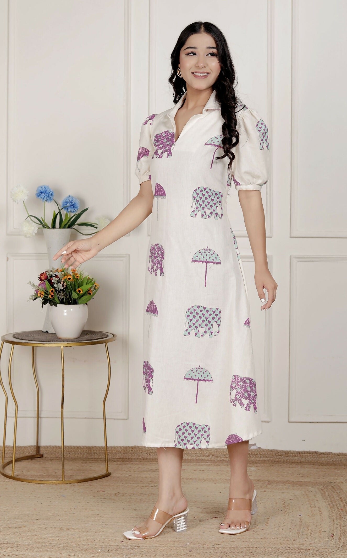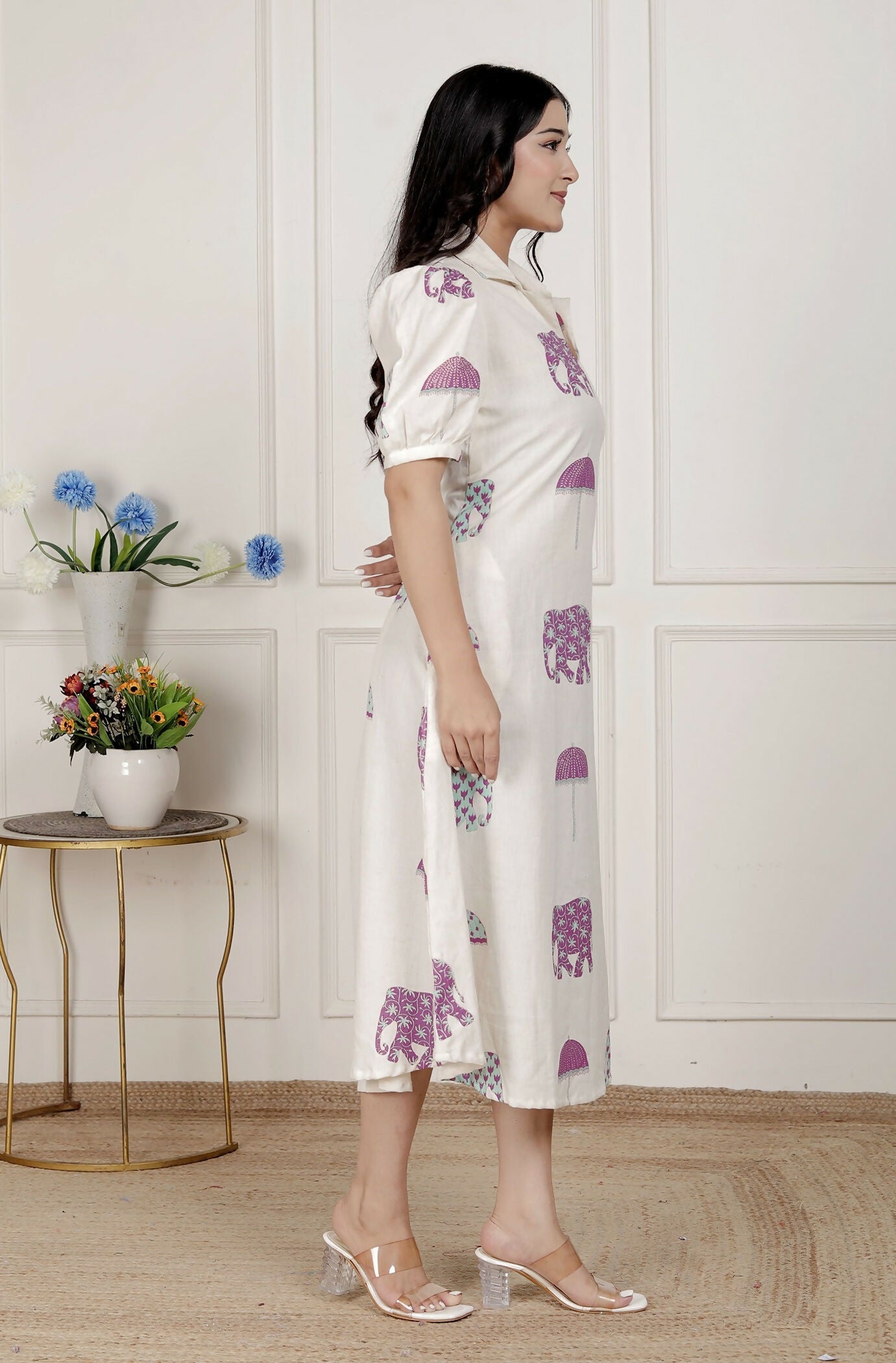 Miravan Womens Flex Cotton Short Sleeve Off White Animal Print A-Line Maxi Dress