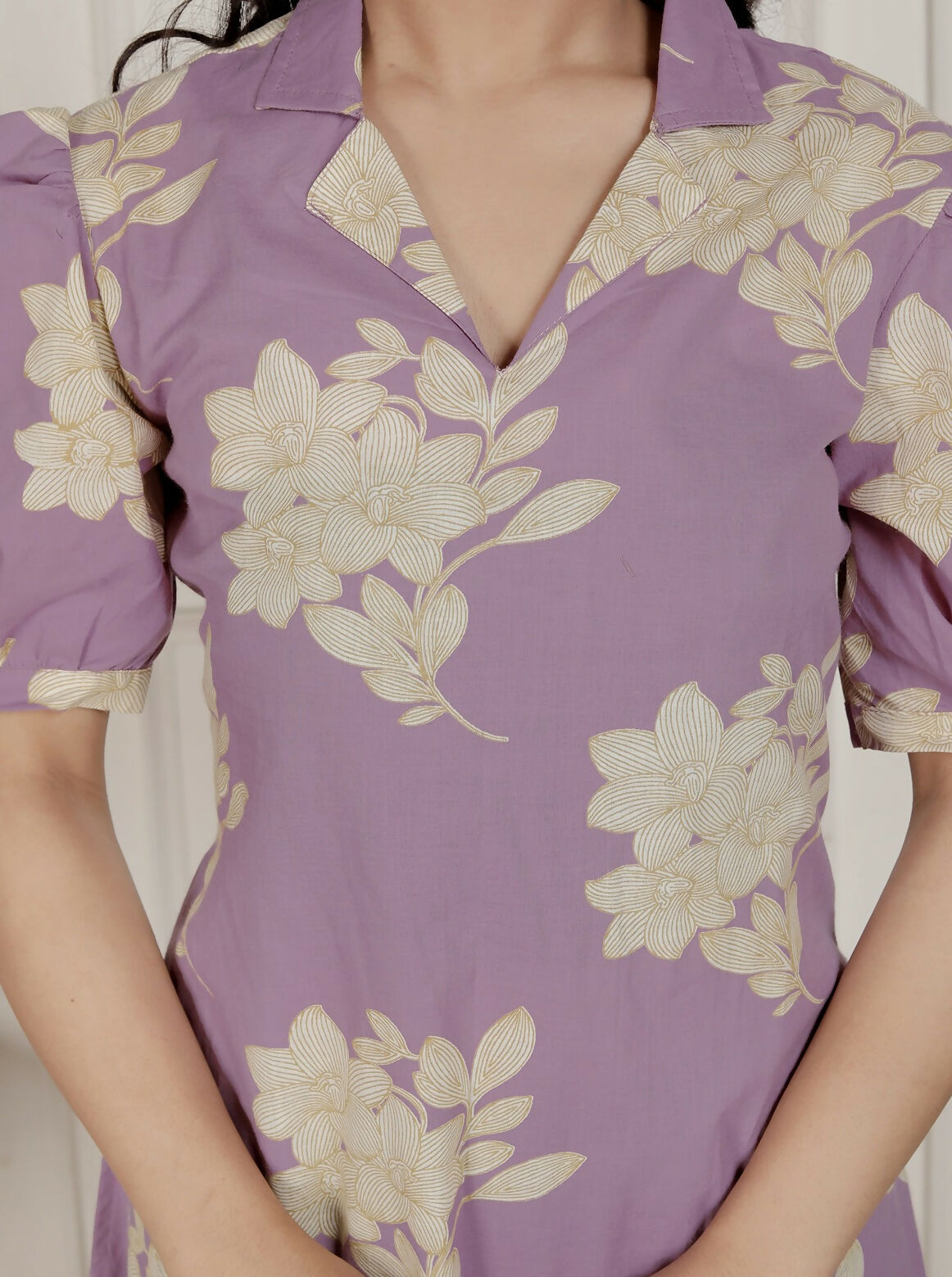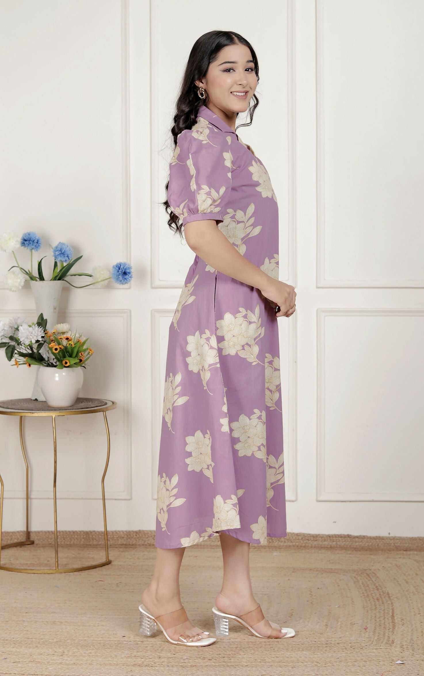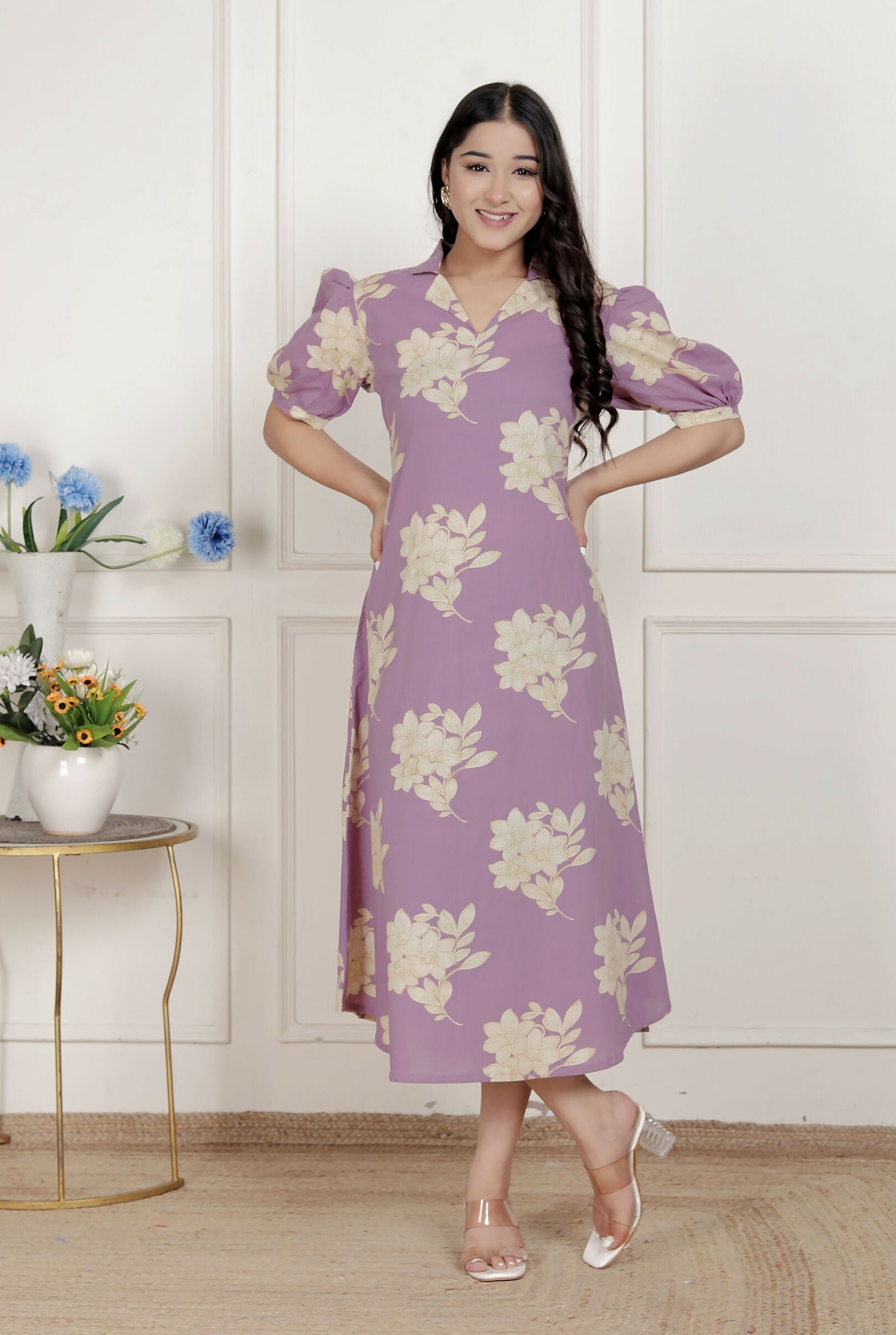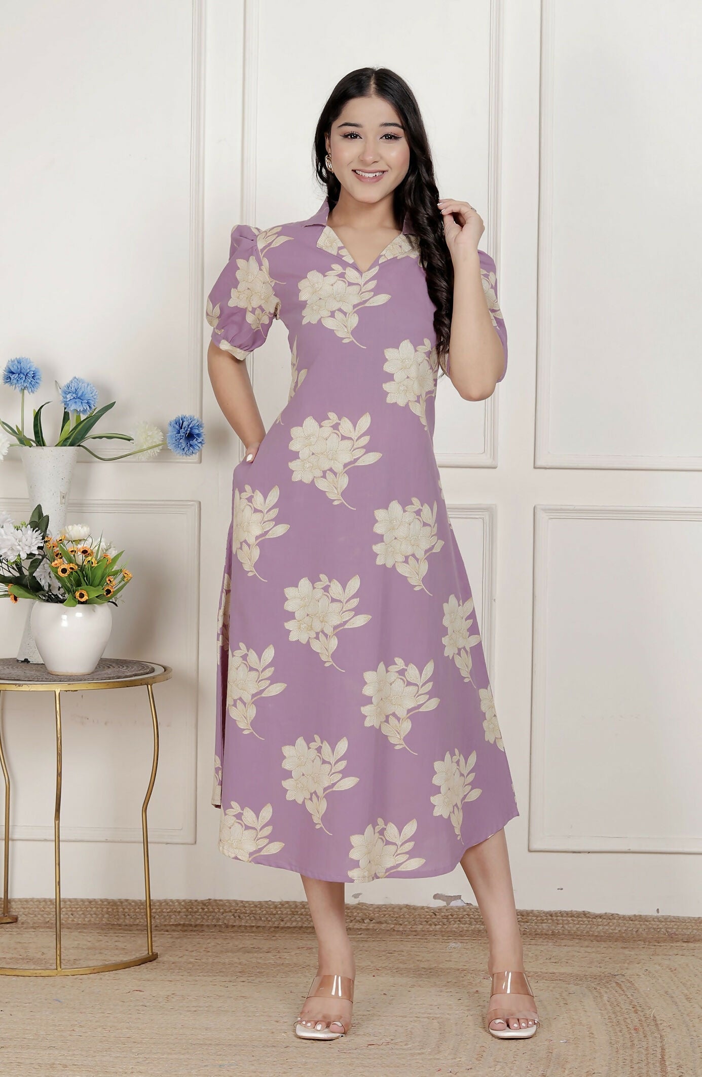 Miravan Womens Lavender Floral Printed A-Line Maxi Dress