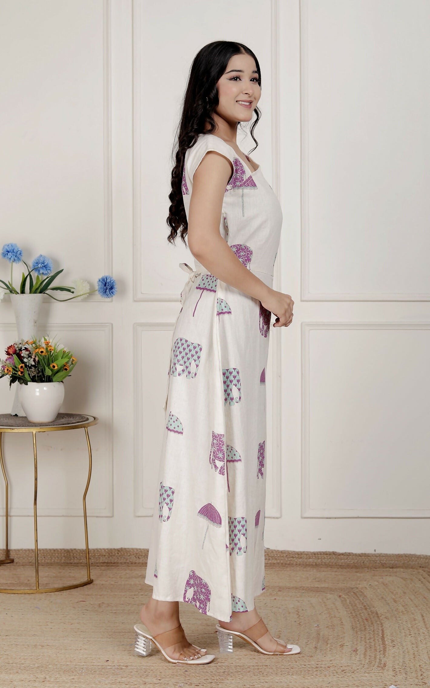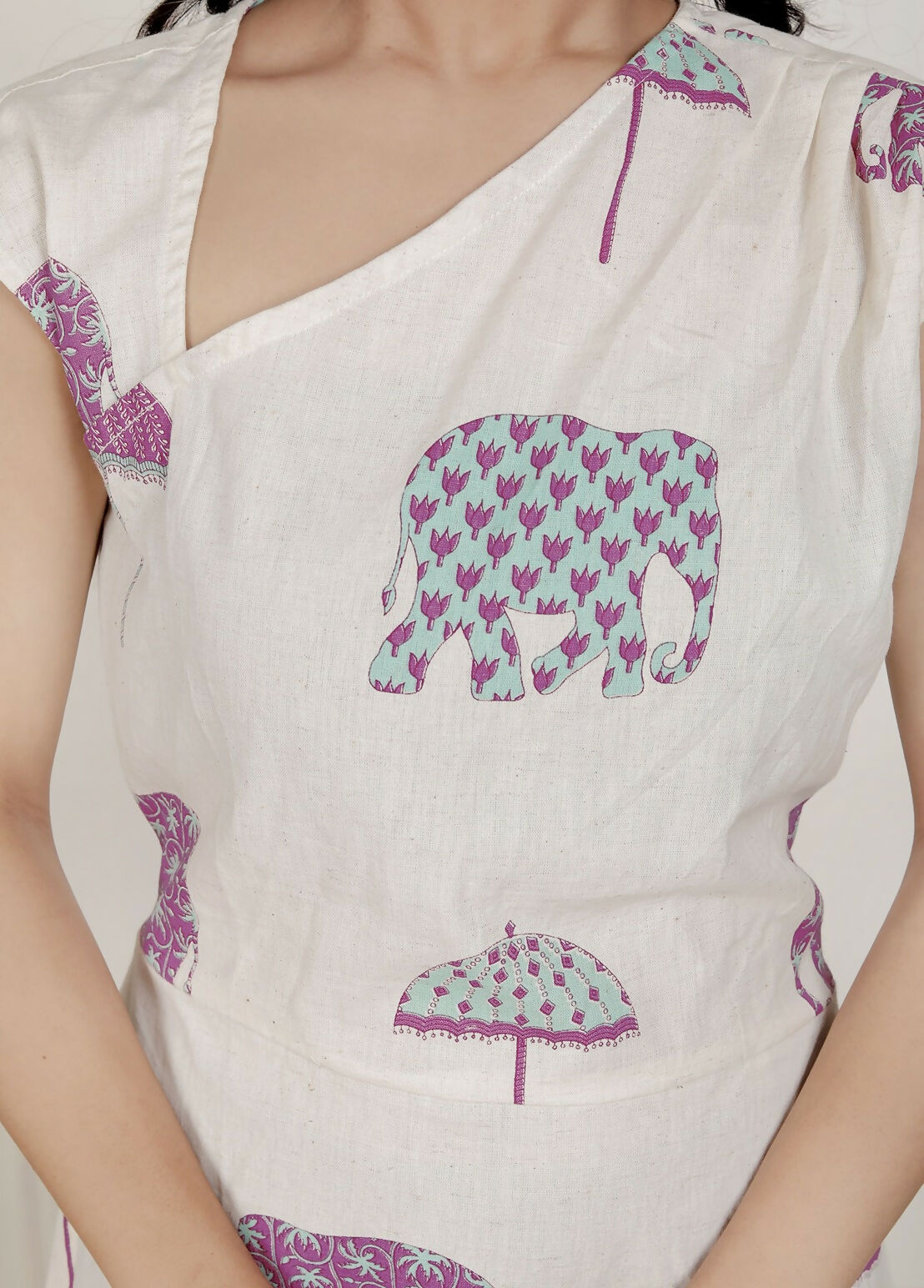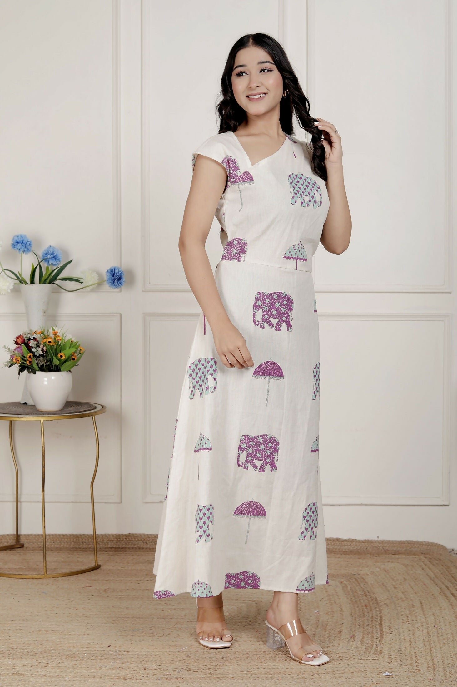 Miravan Womens Off-White Animal Printed Asymmetric Neck A-Line Maxi Dress