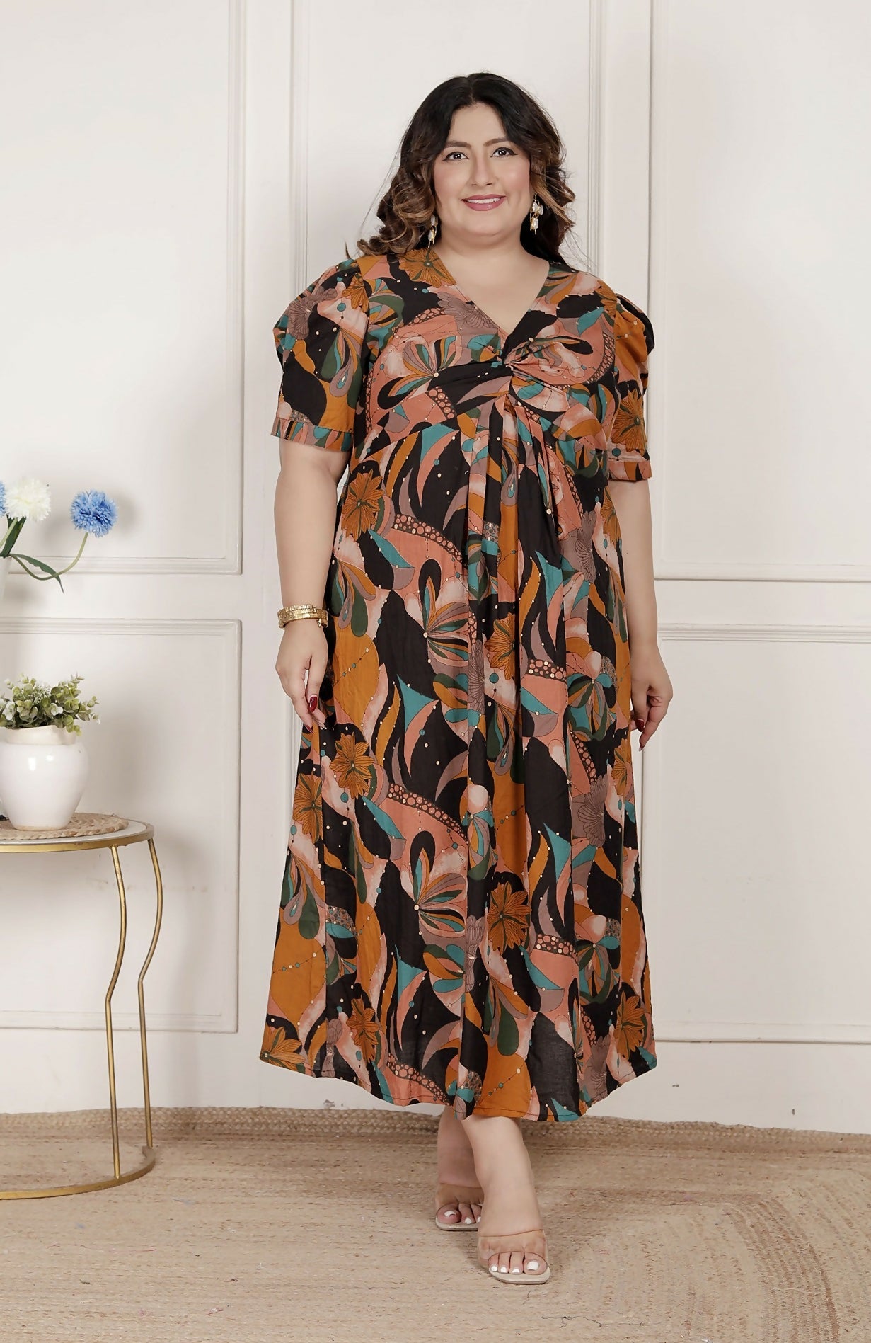 Get Rid Of The 'Regular' Look This Season By Wearing This Amazing Black Floral Dress From Miravan. Crafted In A Breathable Cotton Fabric, It Features Beautiful Floral Printed Design And Is Very Comfortable Too. A very pretty black floral printed dress fabcricated with cotton fabric, the design and pattern looks amazing and good to go for summer.Looking for the perfect summer dress?Our cotton summer dresses are the perfect choice for staying cool and stylish all season long. Shop now for a variety of styles and colors to fit your unique taste and personality. Whether you're dressing up for a special occasion or keeping it casual for a day out, our cotton summer dresses are sure to become a staple in your wardrobe. Browse our collection today! Wear Yours With Heels And Minimal Jewelry To Complete The Fit.