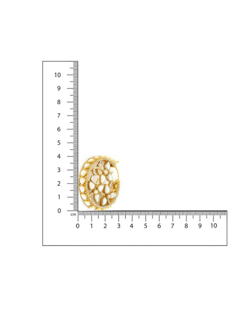 Elevate your elegance with these stunning circular earrings, adorned with sparkling moissanite diamonds. Crafted in a timeless round silhouette, each piece features an intricate flower-shaped design nestled within the circle, symbolizing grace and femininity. The brilliant moissanite stones catch the light from every angle, offering the fire and brilliance of diamonds with a sustainable edge. Lightweight yet luxurious, these earrings are perfect for both daytime charm and evening glam.Styling Tip: Pair these floral moissanite earrings with a sleek bun or soft waves to highlight their shape. They complement both ethnic wear and contemporary outfits effortlessly.