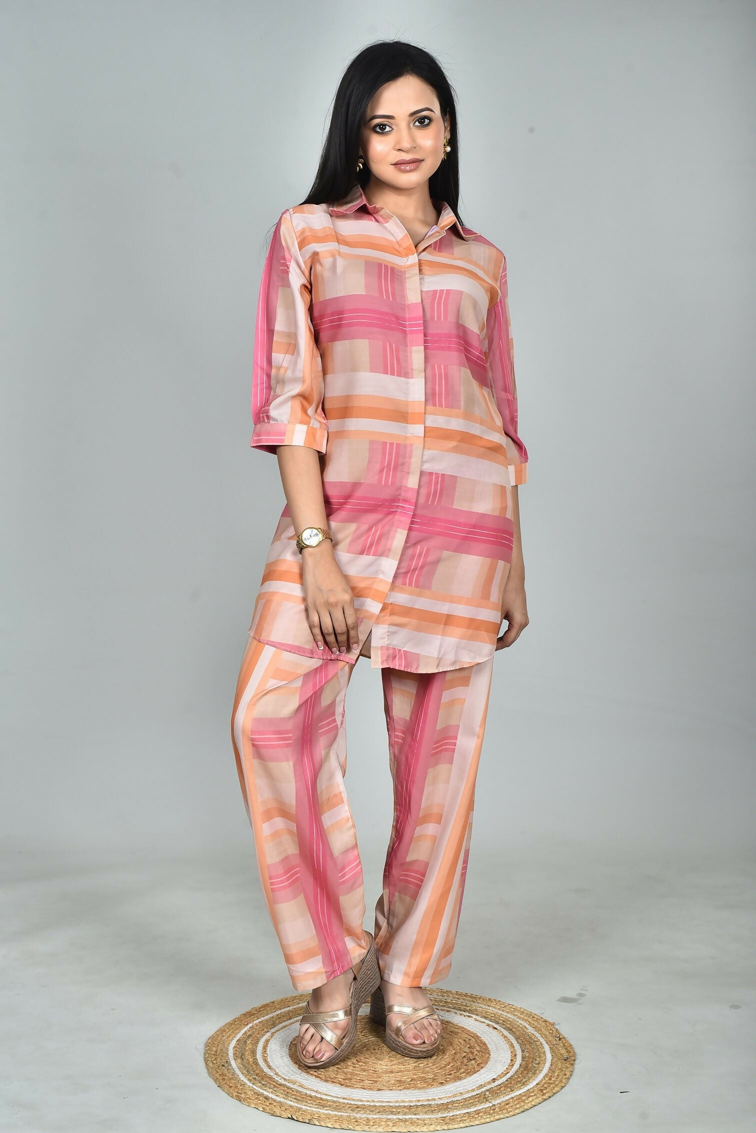 Morchari Digital Print Semi Muslin Co-Ord Set Top & Trouser-Multicolor