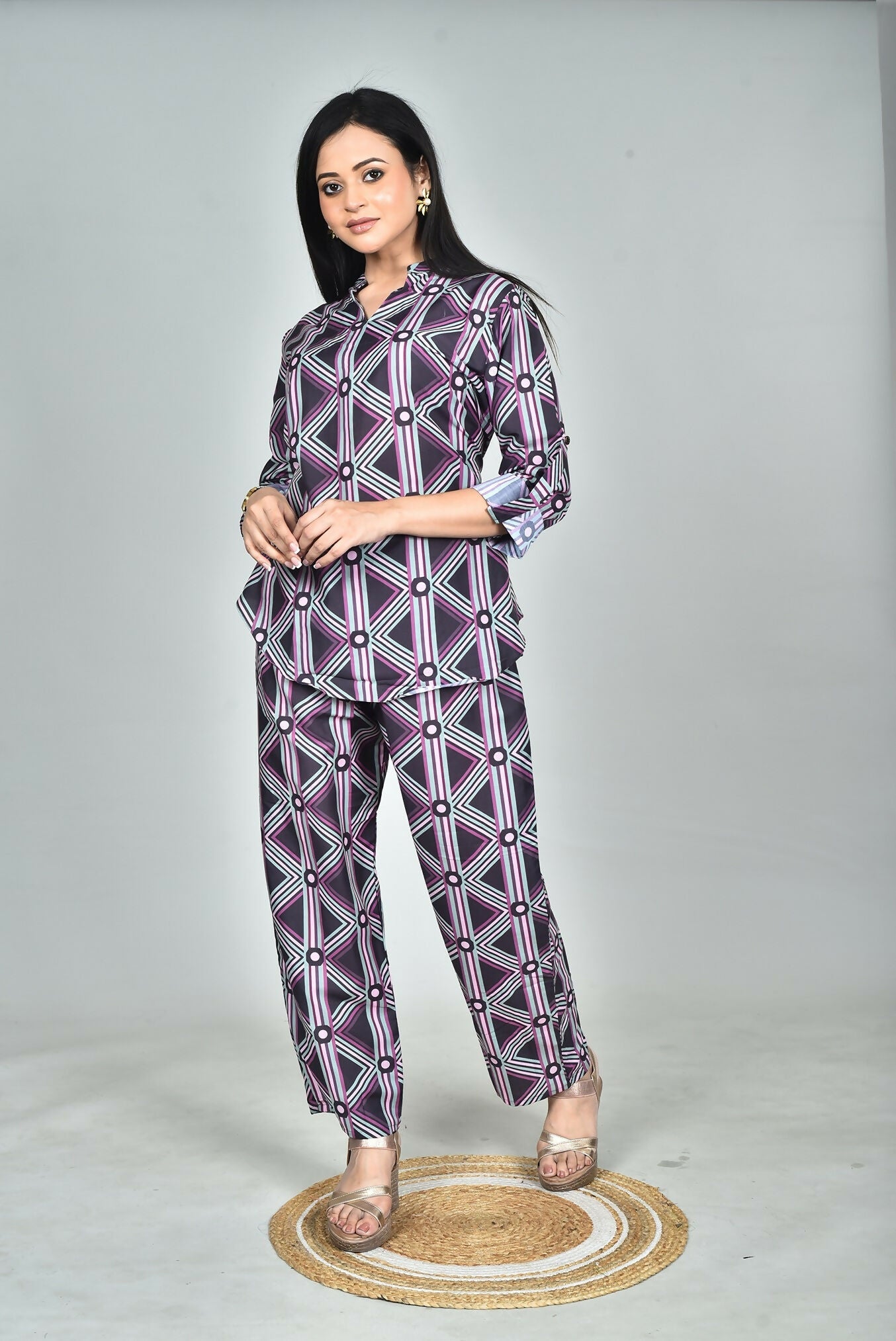 Morchari Digital Print Semi Muslin Co-Ord Set Top & Trouser-Multicolor