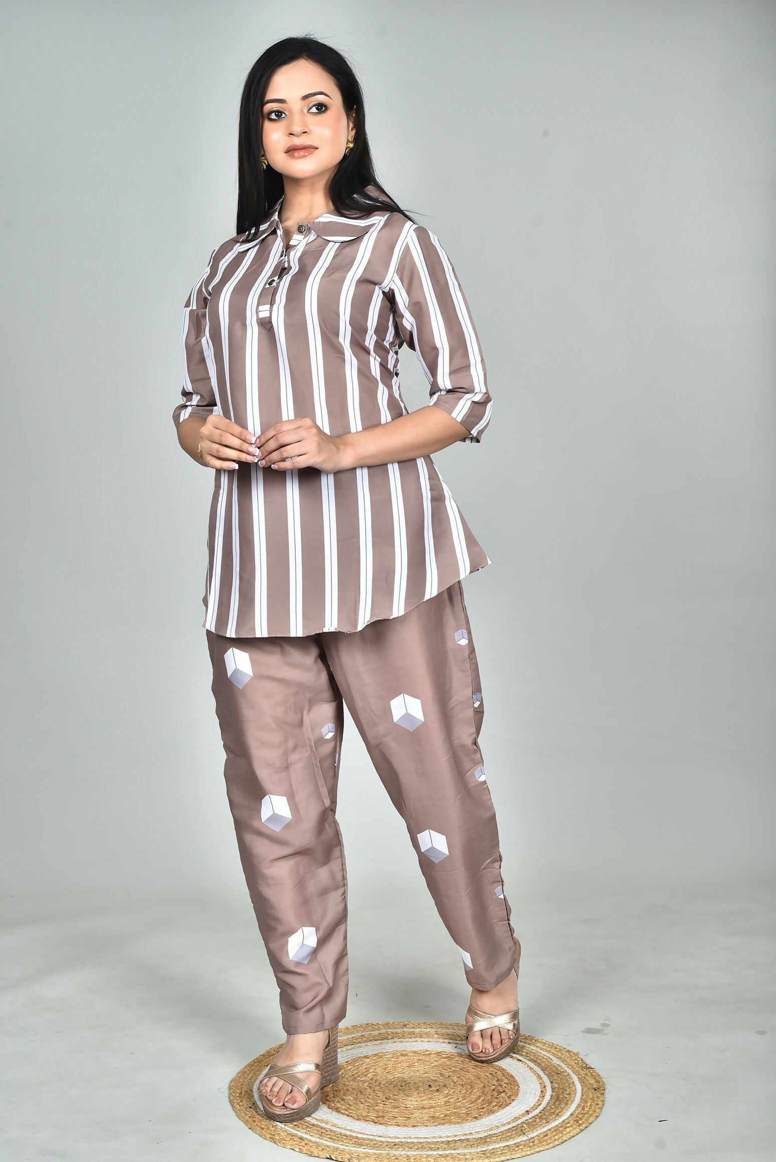 Morchari Digital Print Semi Muslin Co-Ord Set Top & Trouser-Multicolor