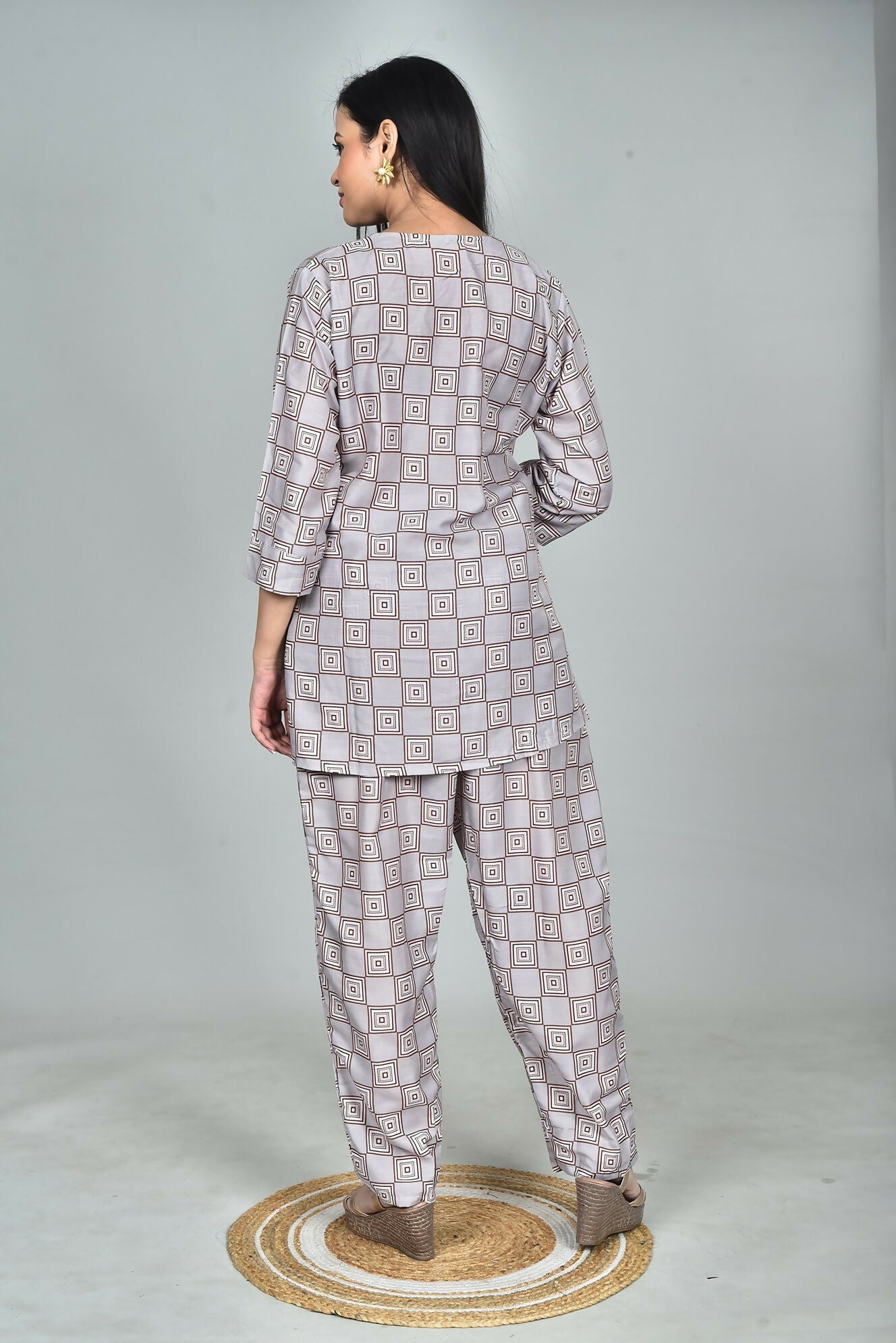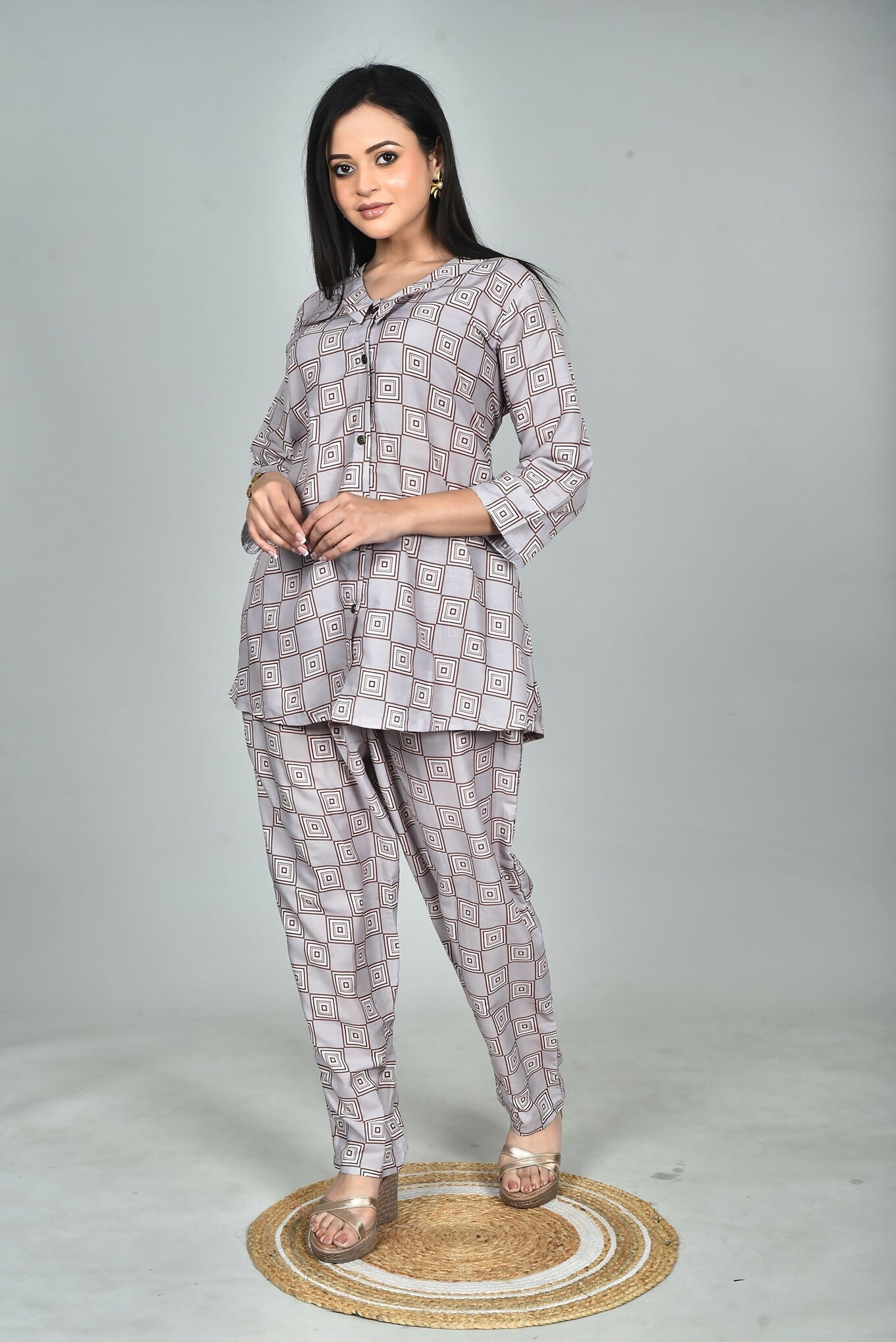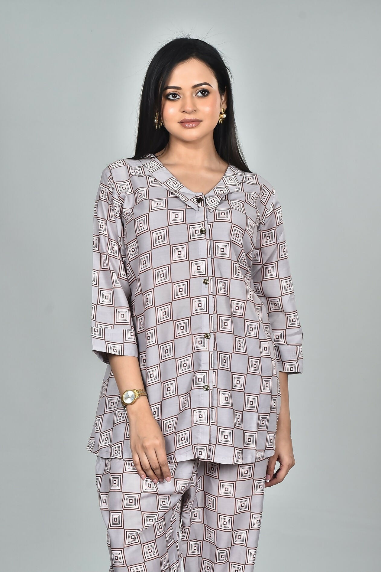 Morchari Digital Print Semi Muslin Co-Ord Set Top & Trouser-Multicolor