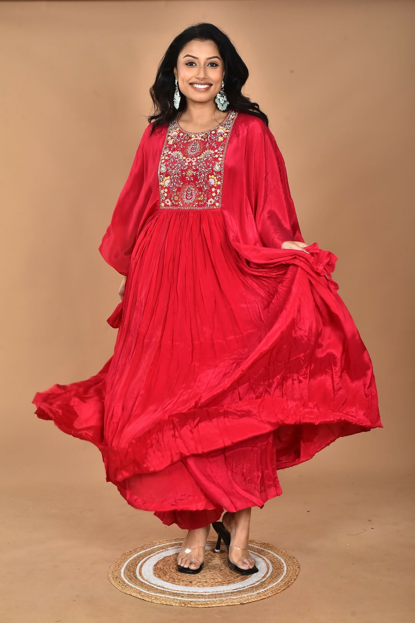 Morchari Kaftan Zari Embroidery Work Gown-Rani