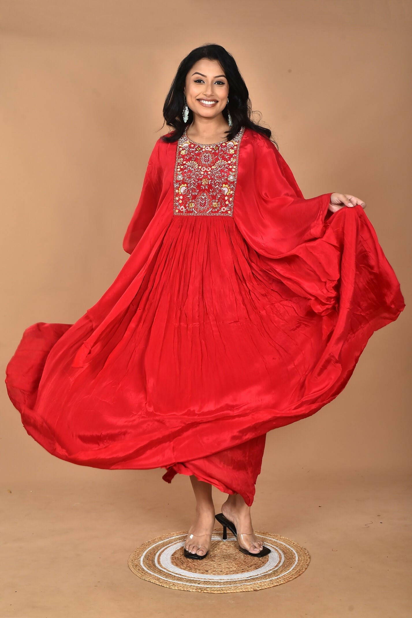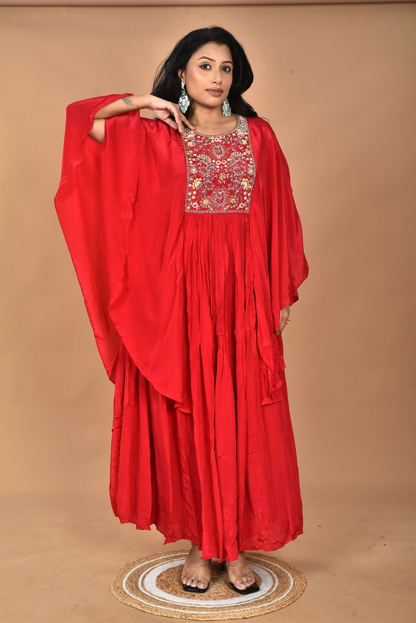 Morchari Kaftan Zari Embroidery Work Gown-Red
