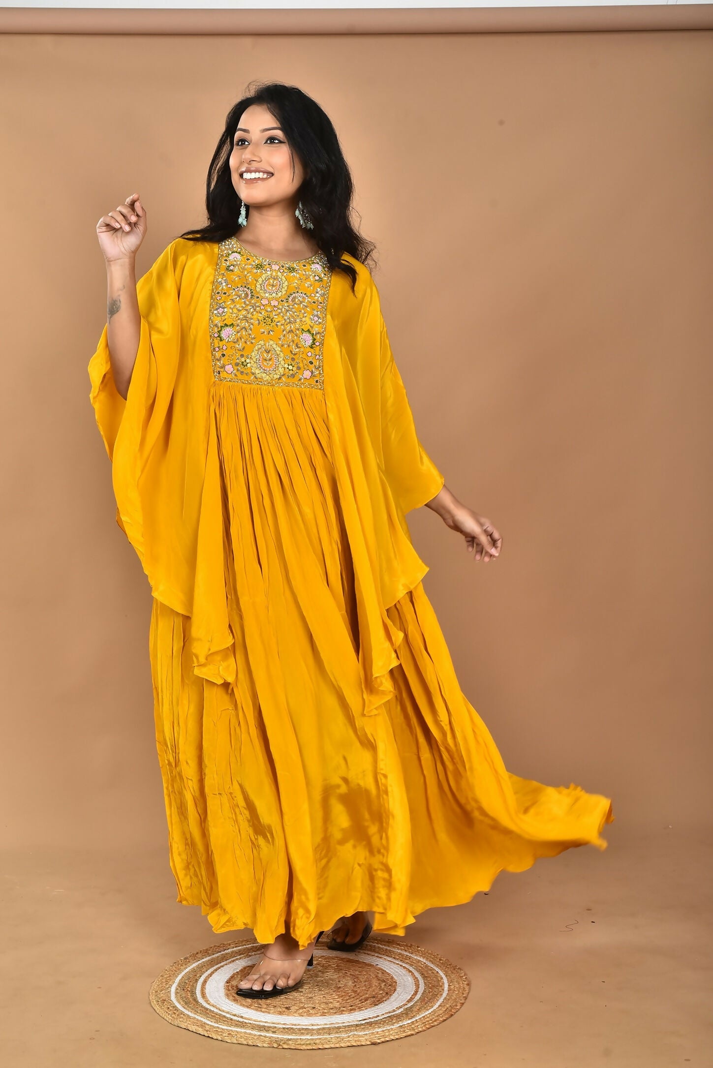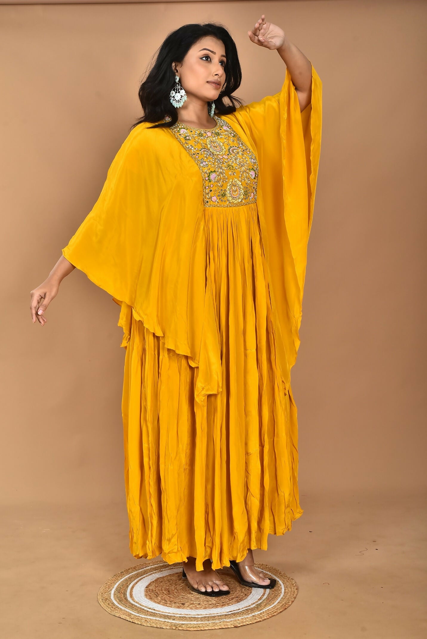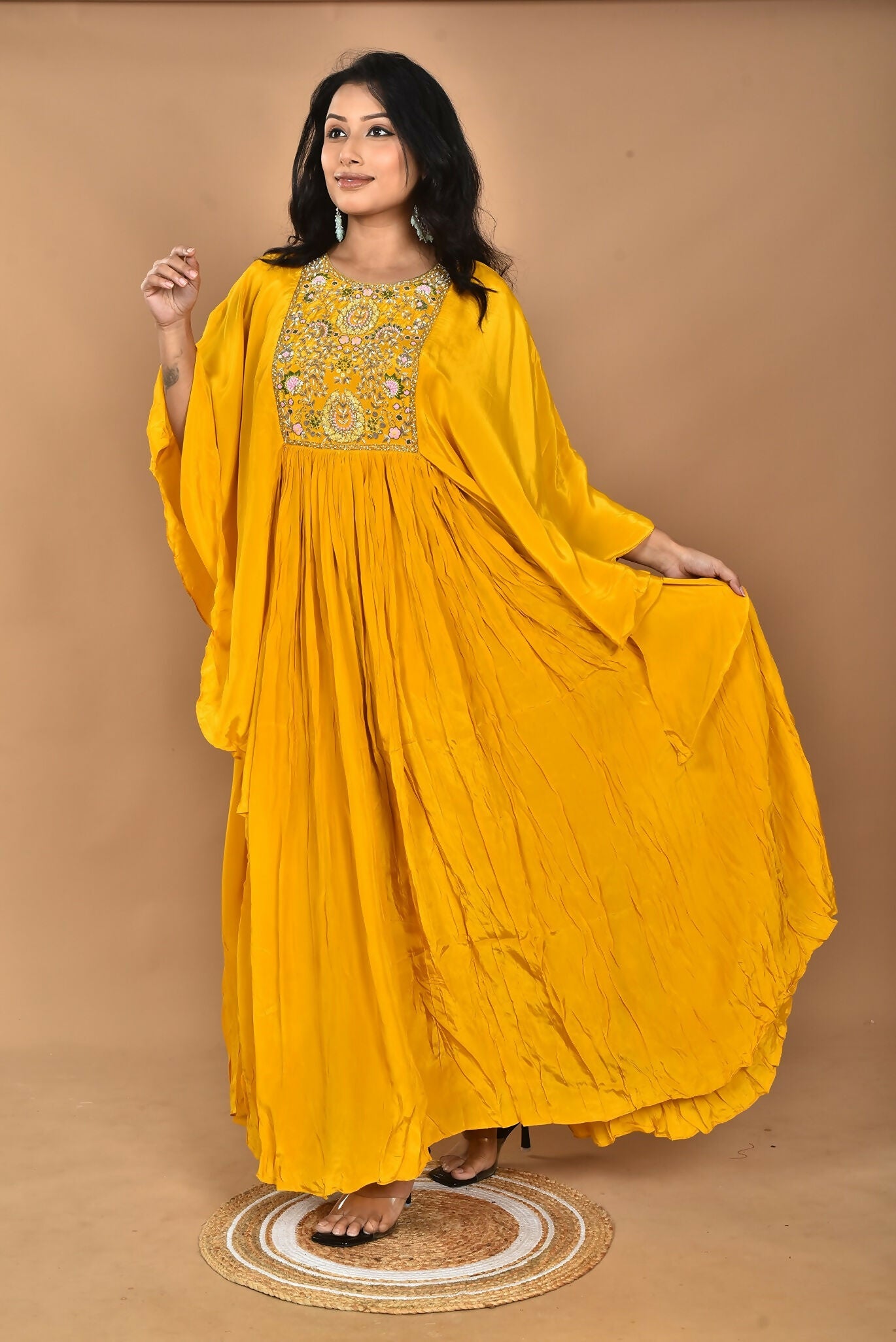 Morchari Kaftan Zari Embroidery Work Gown-Yellow