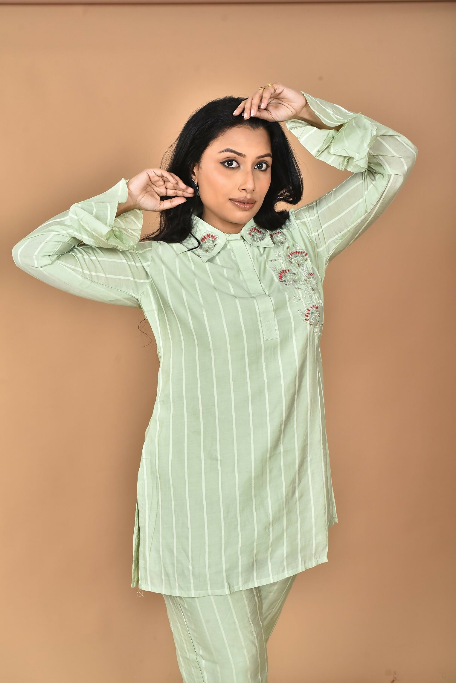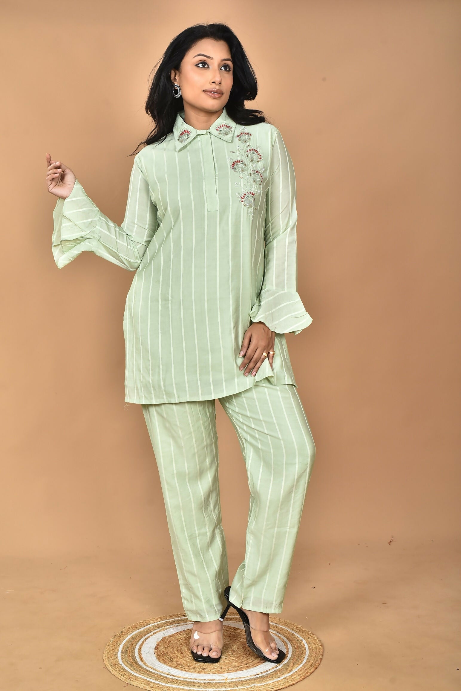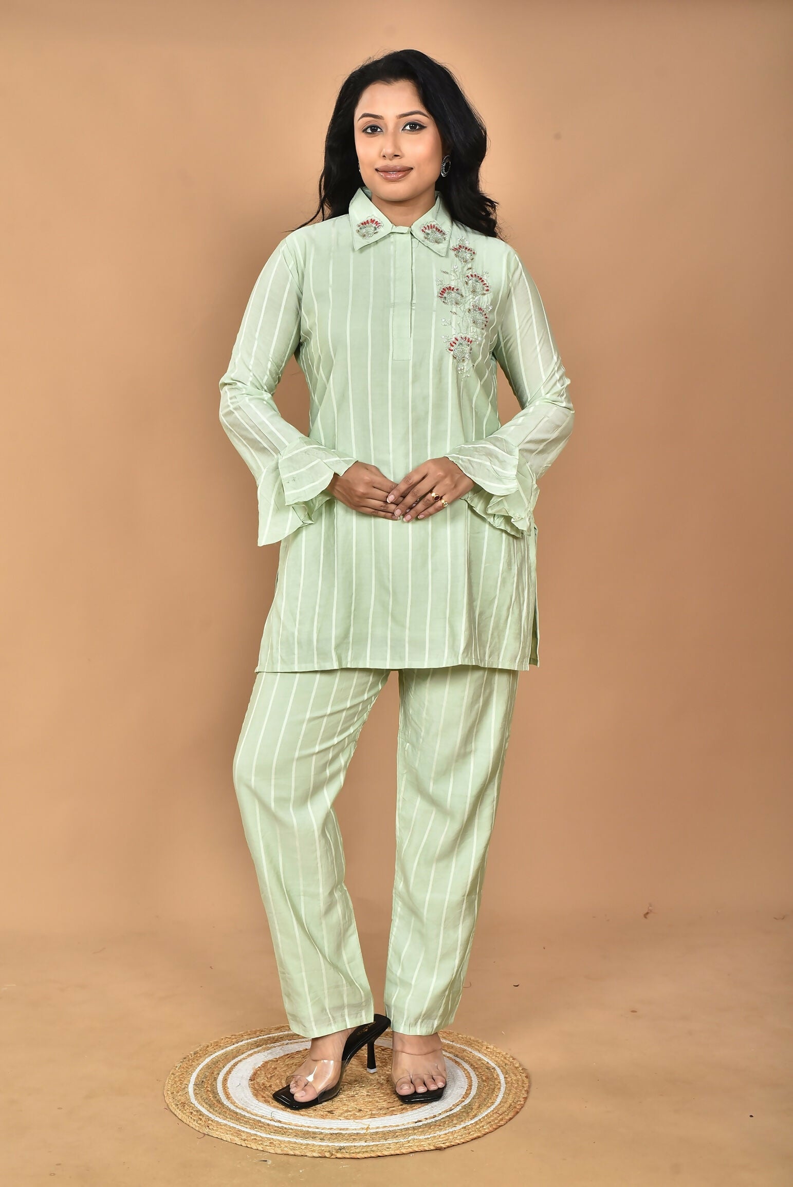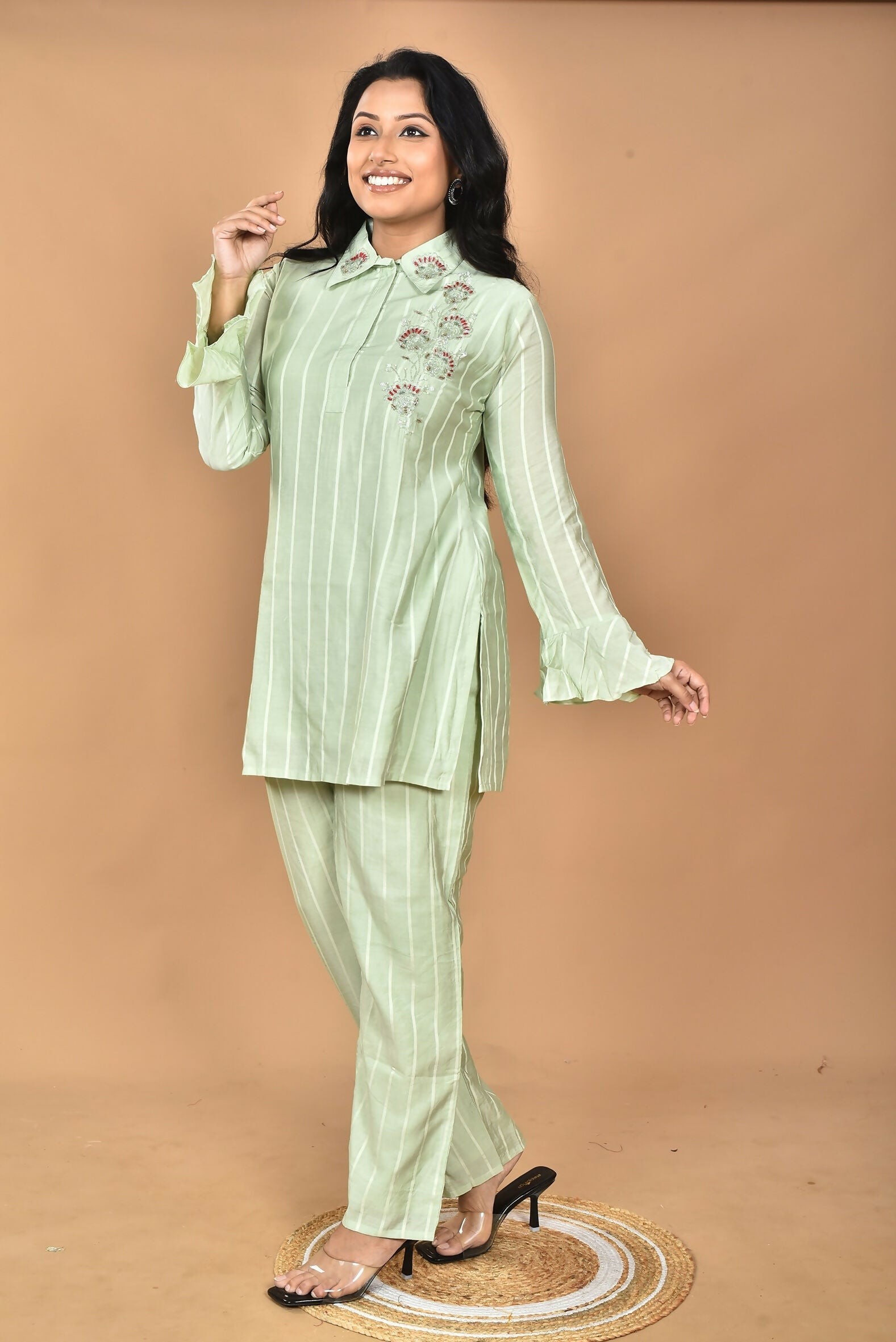 Morchari Women And Hand Embroidery Co-Ords-Green