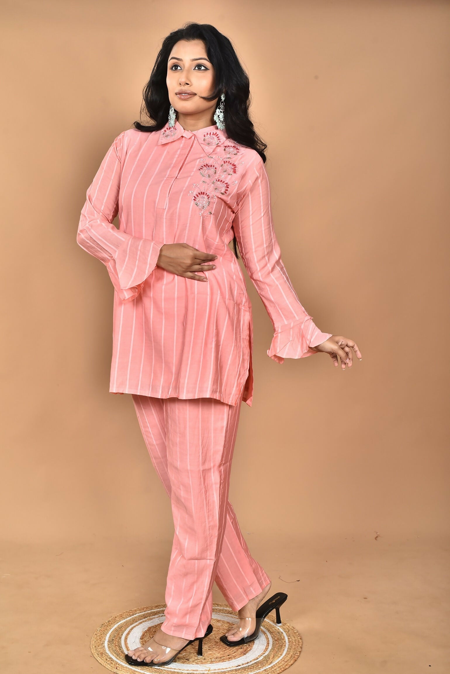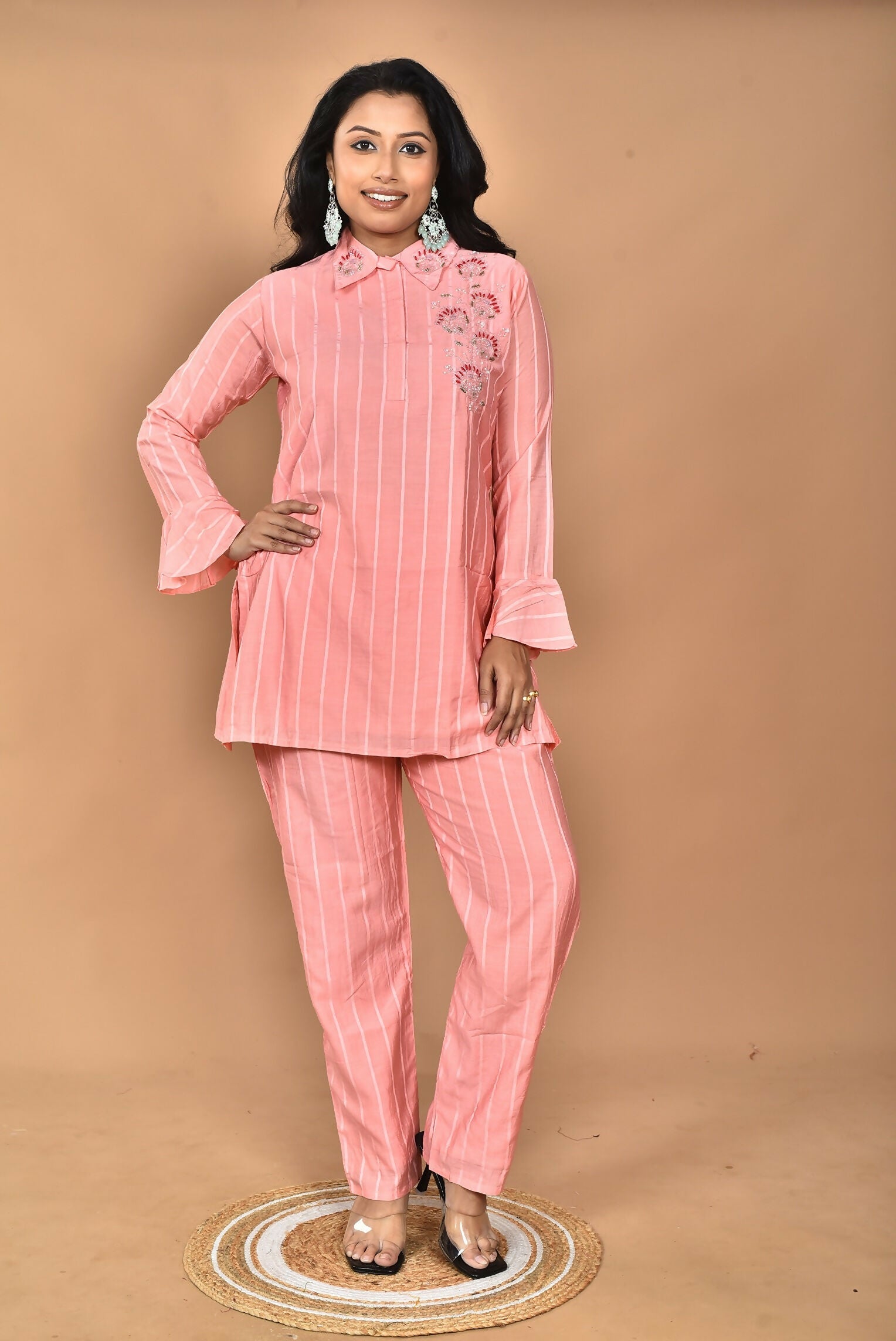 Morchari Women And Hand Embroidery Co-Ords-Peach