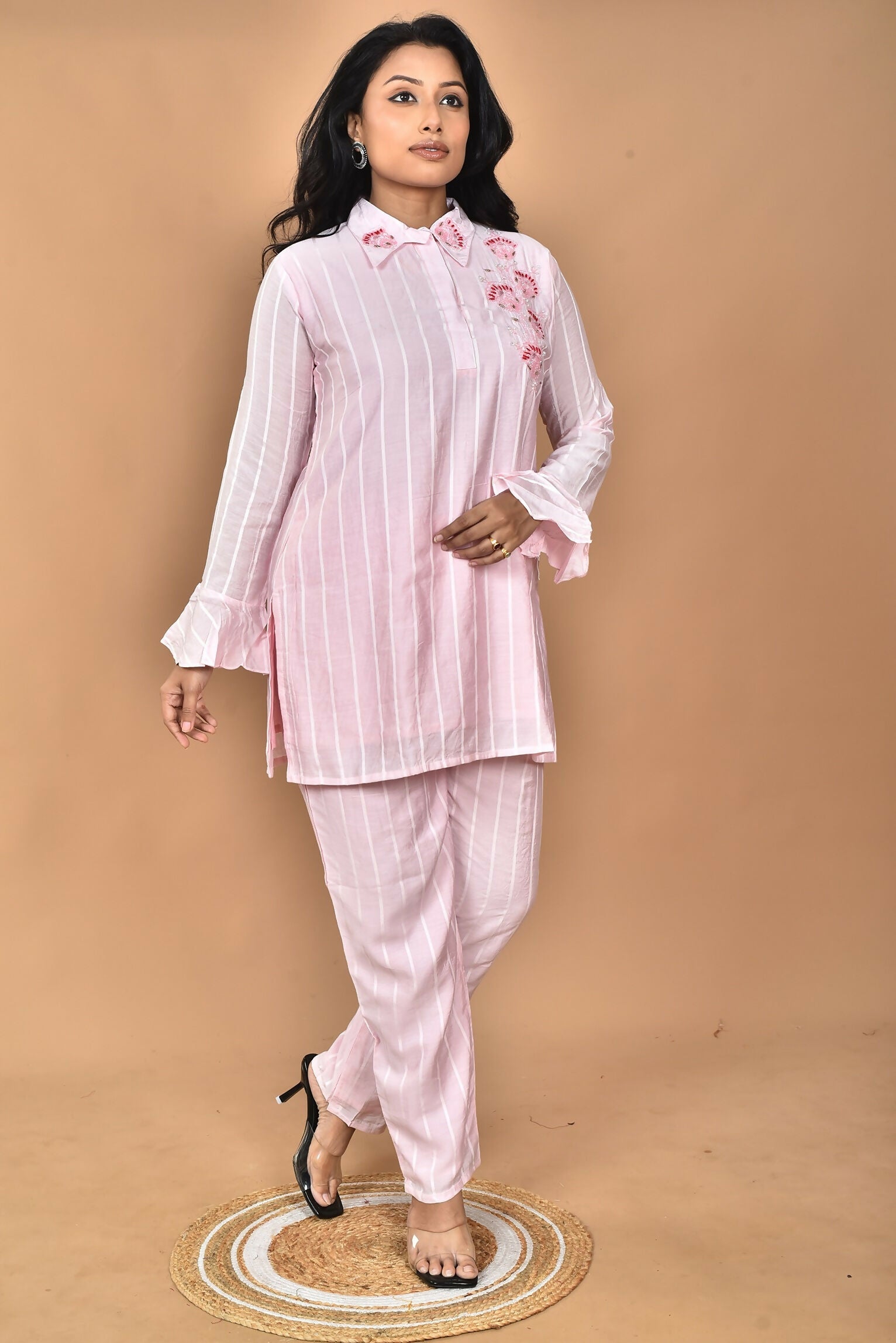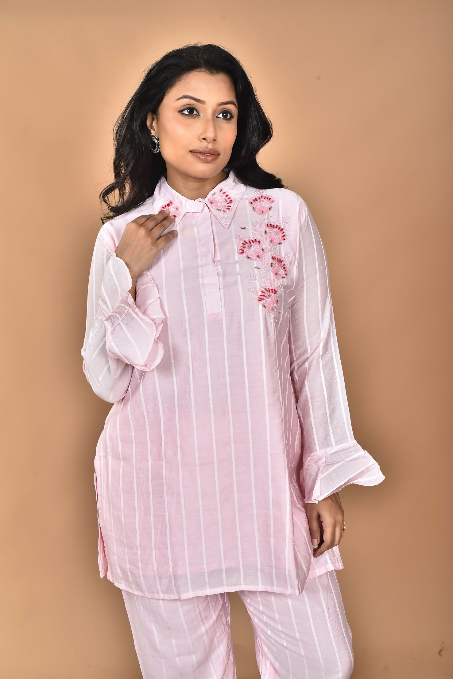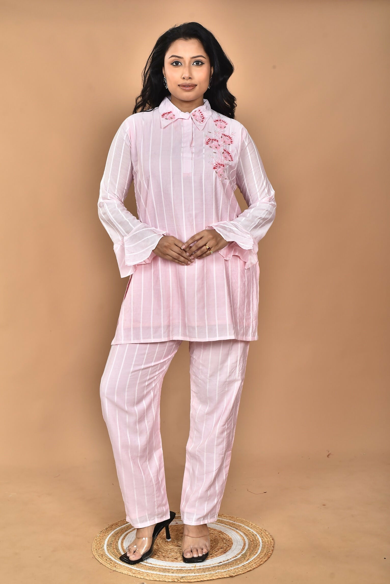 Morchari Women And Hand Embroidery Co-Ords-Pink