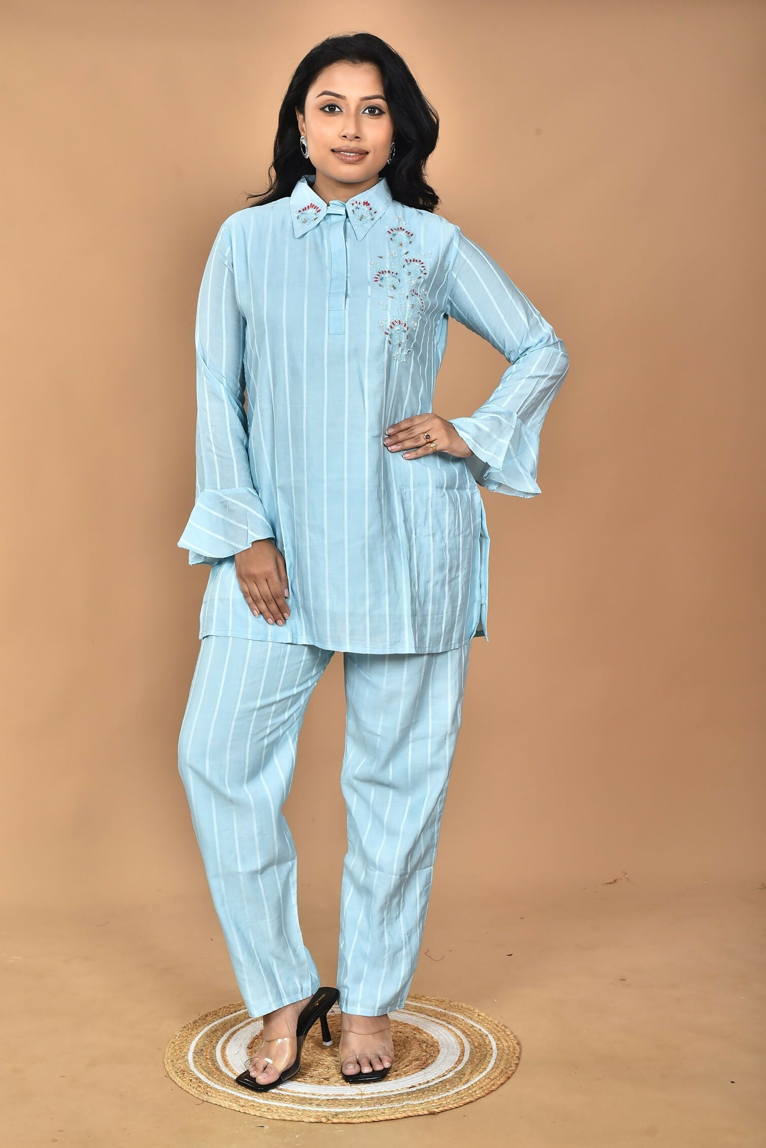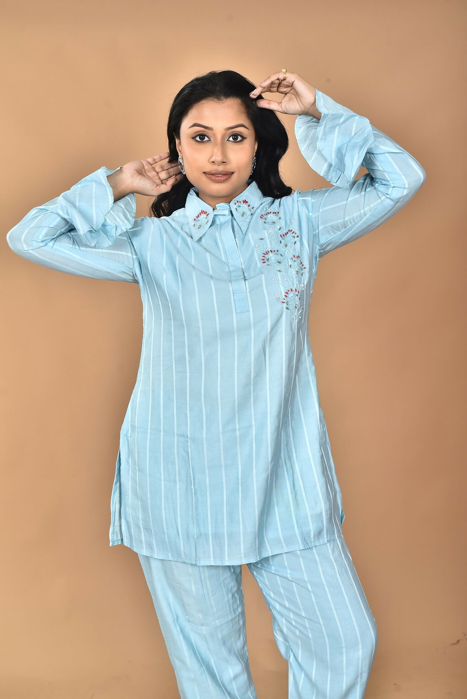 Morchari Women And Hand Embroidery Co-Ords-Sky Blue