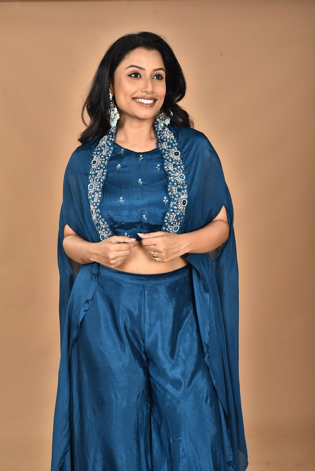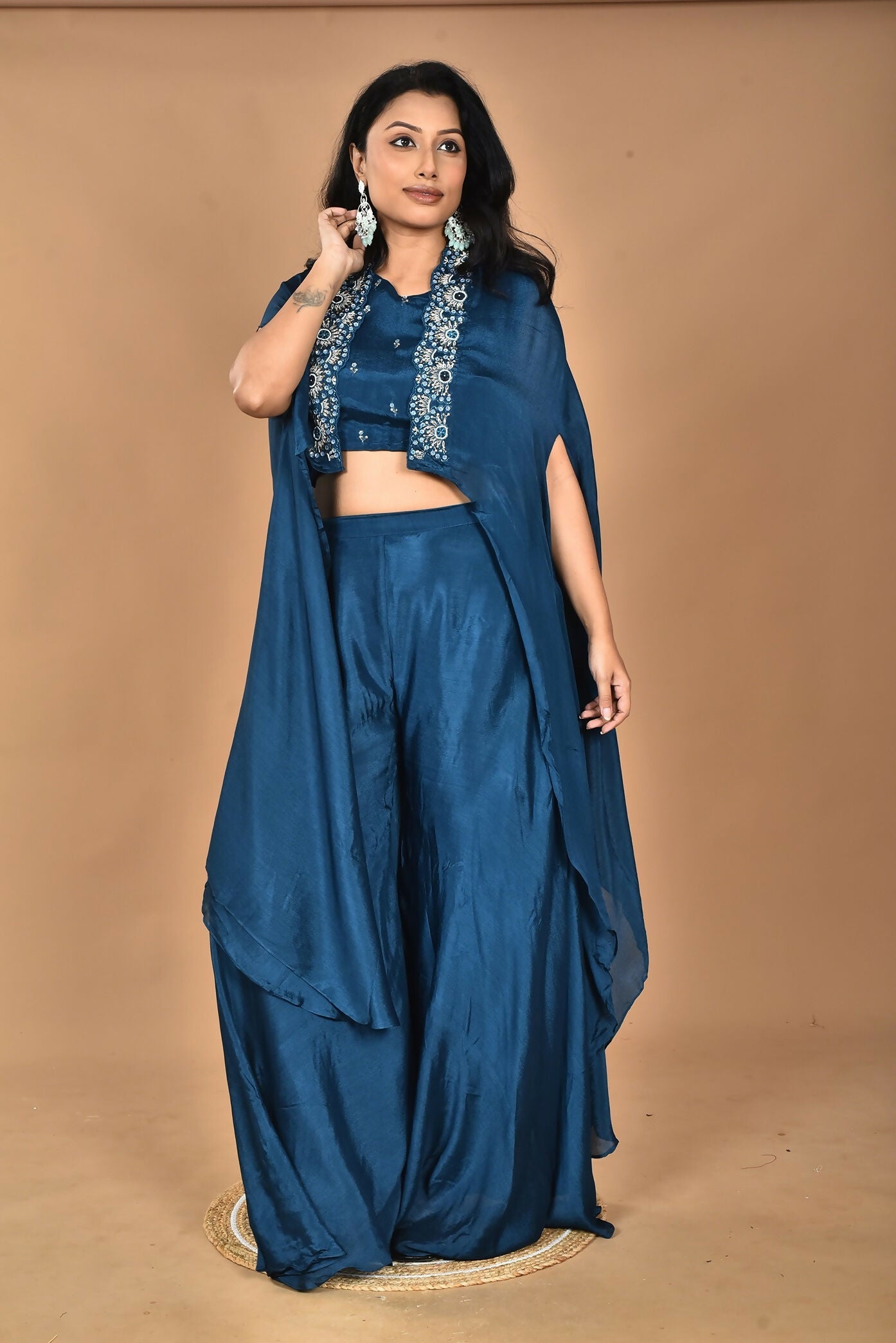 Morchari Women And Hand Embroidery Palazzo Set-Blue